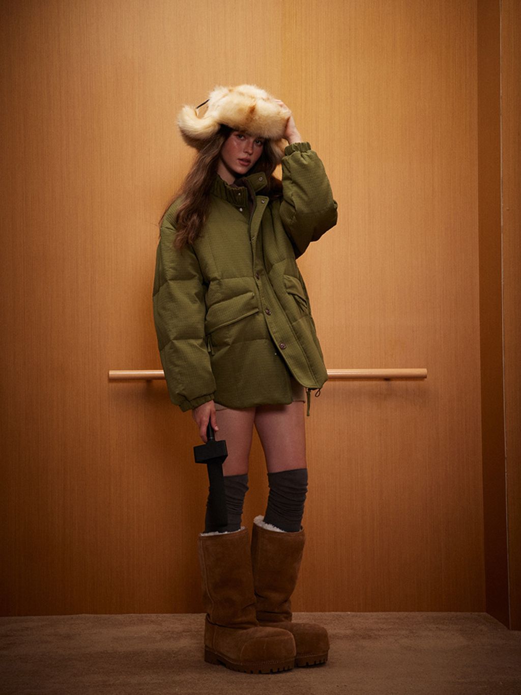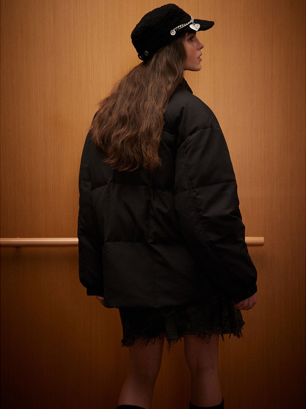 잔잔한 립스탑 텍스처에 브라운 벨벳 배색 카라가 더해져, 90’s 레트로 무드를 한 번에 완성하는 패딩 자켓입니다. 오버사이즈 실루엣과 큼직한 포켓으로 툭 걸치기 좋은 아이템입니다.