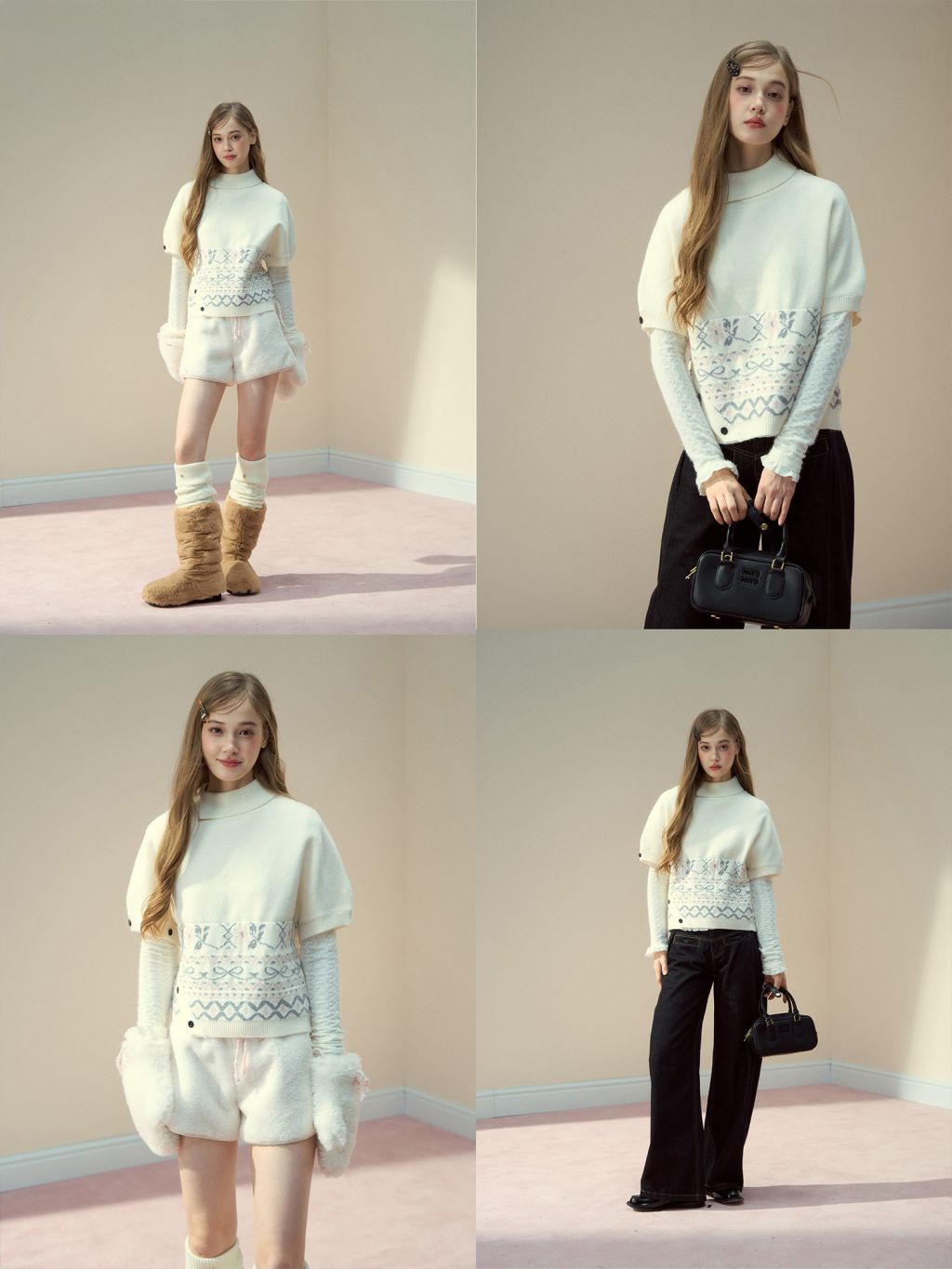 - 하단 페어아일 패턴 밴드로 빈티지 겨울 감성 아웃핏