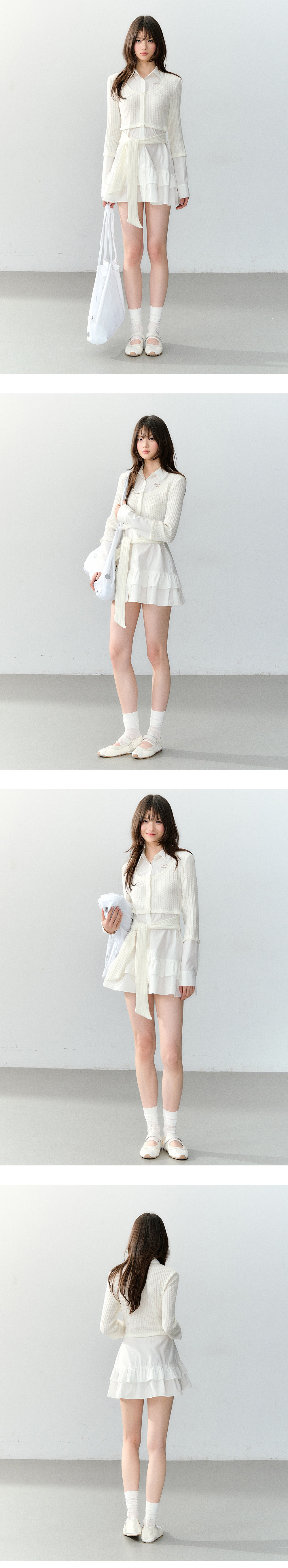 - 셔츠 원단의 티어드 스커트 라인이 경쾌한 실루엣을 만들어 다리가 더 길어 보입니다.