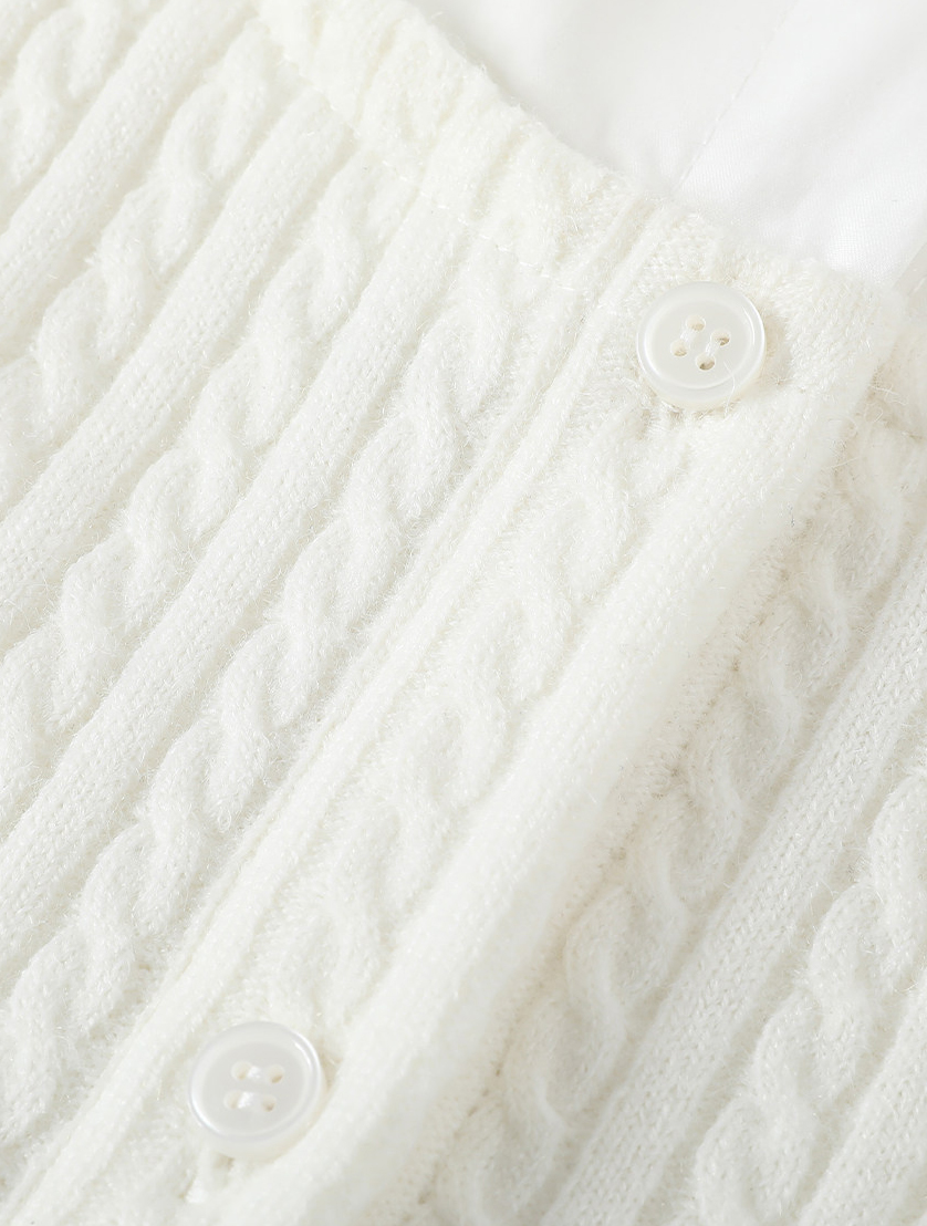- 셔츠 + 케이블 니트 레이어드를 한 번에, 스타일링 고민이 줄어듭니다.