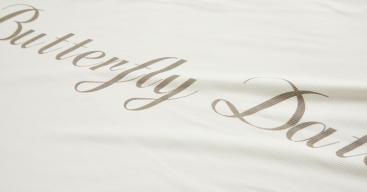 - 프론트에 세로로 배치된 ‘Butterfly Date’ 타이포 포인트