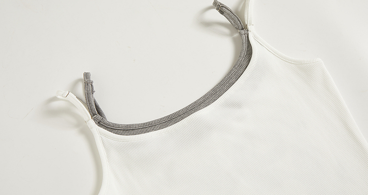 - 배색 라인으로 마무리된 스퀘어 넥 디테일
