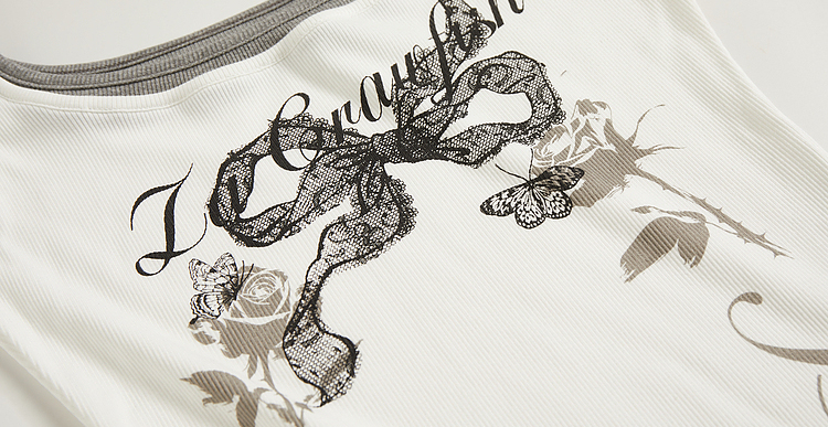 - 바스트 위 리본 그래픽 & 나비 일러스트 프린트