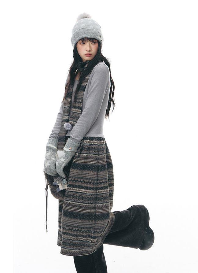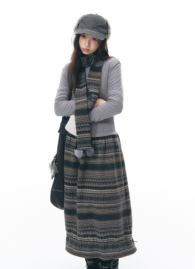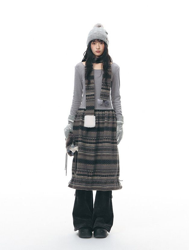 Ethnic Fair Knit Dress Set (Dress & Scarf : Sold Separately)