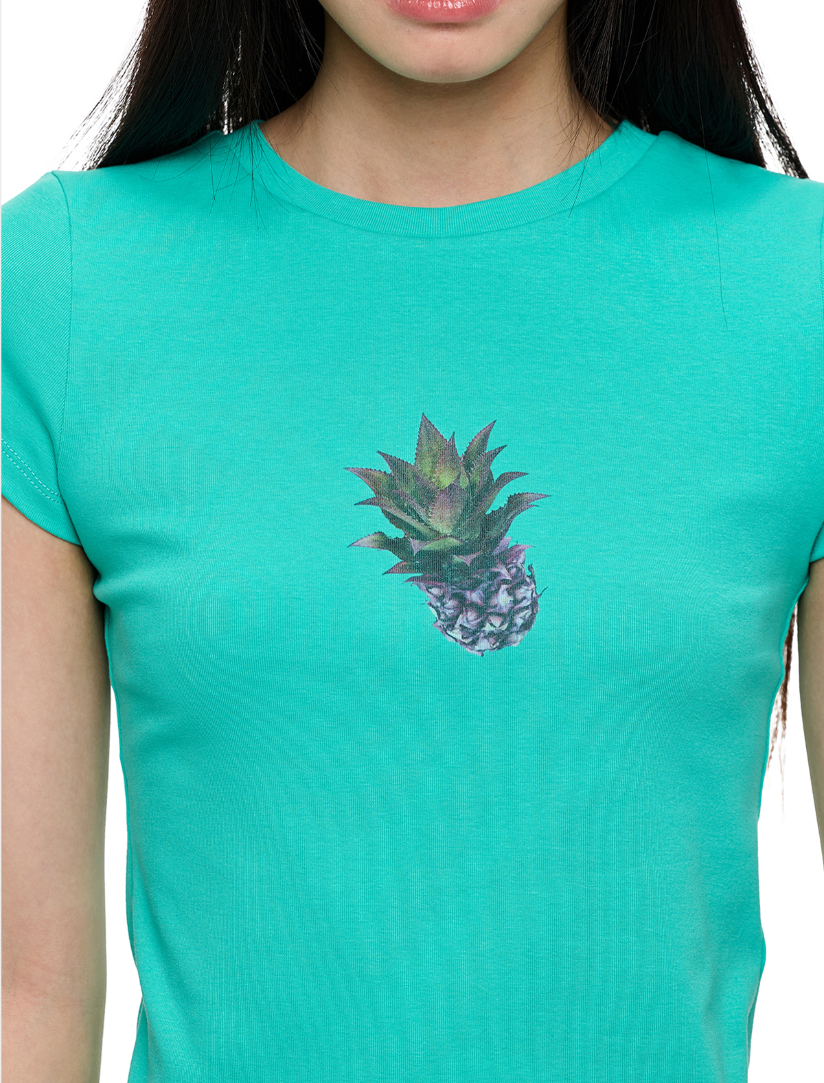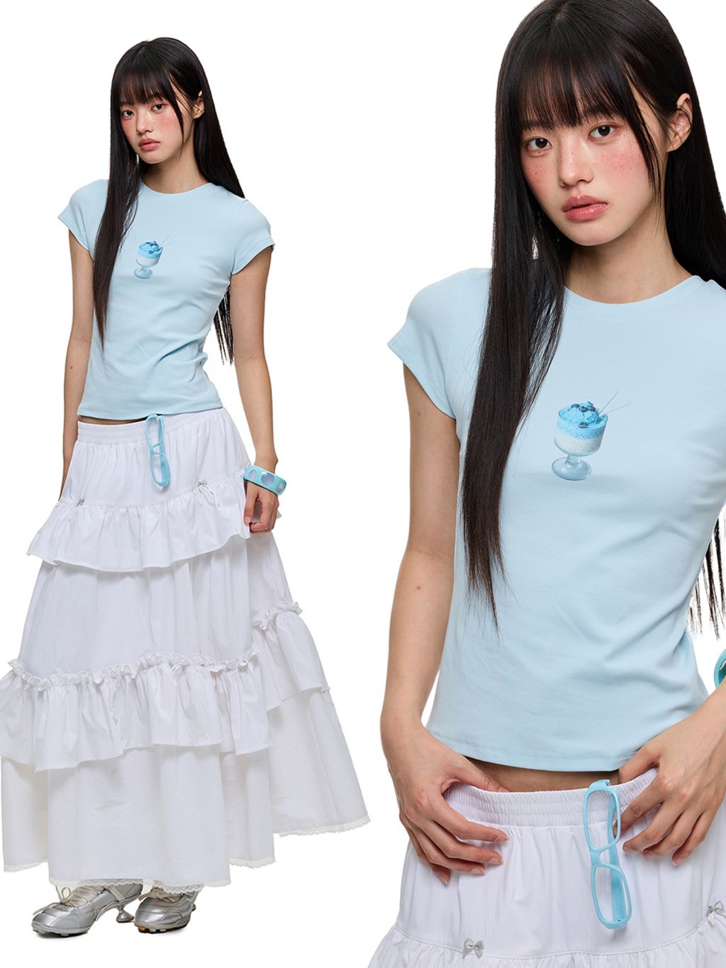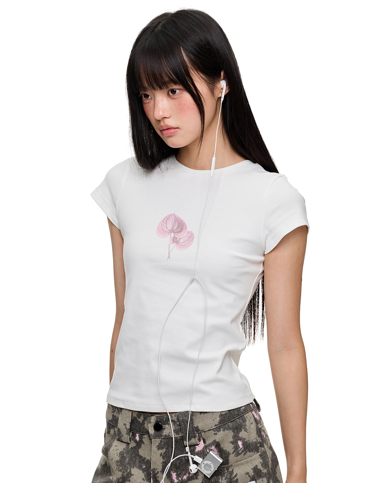 상큼한 프린팅과 컬러감이 돋보이는 여름 시즌 베이비핏 티셔츠로 쫀쫀한 코튼 원단과 슬림한 핏을 연출하며 아이스크림, 꽃, 과일 등 다섯 가지 키치한 프린트로 여름 무드를 가득 담았습니다.