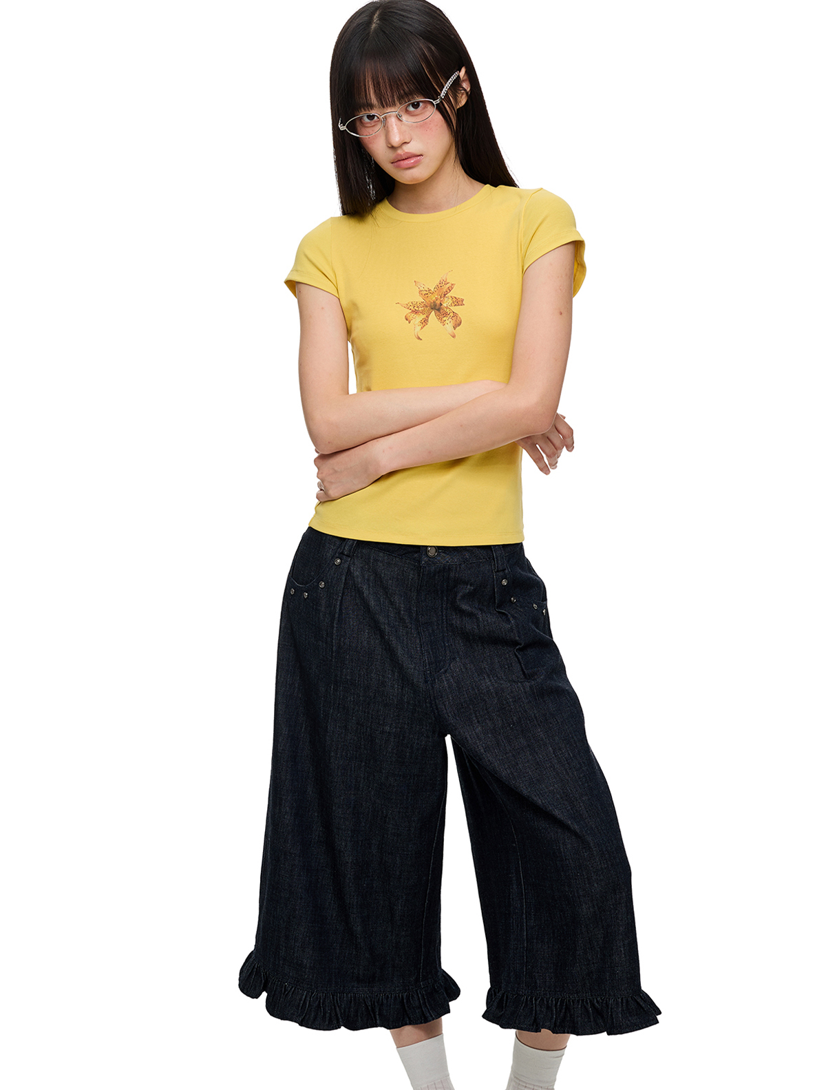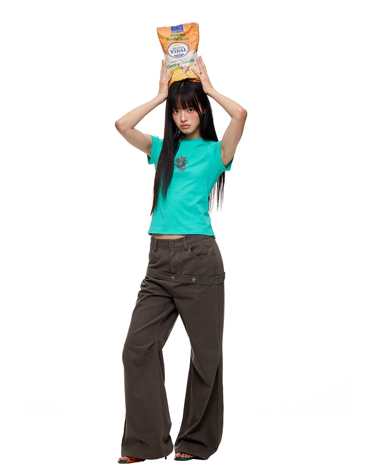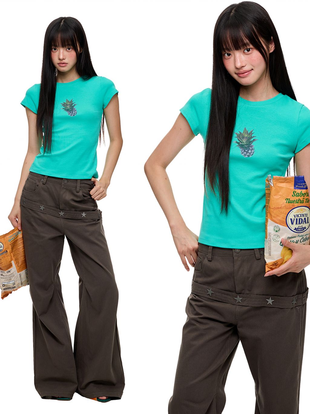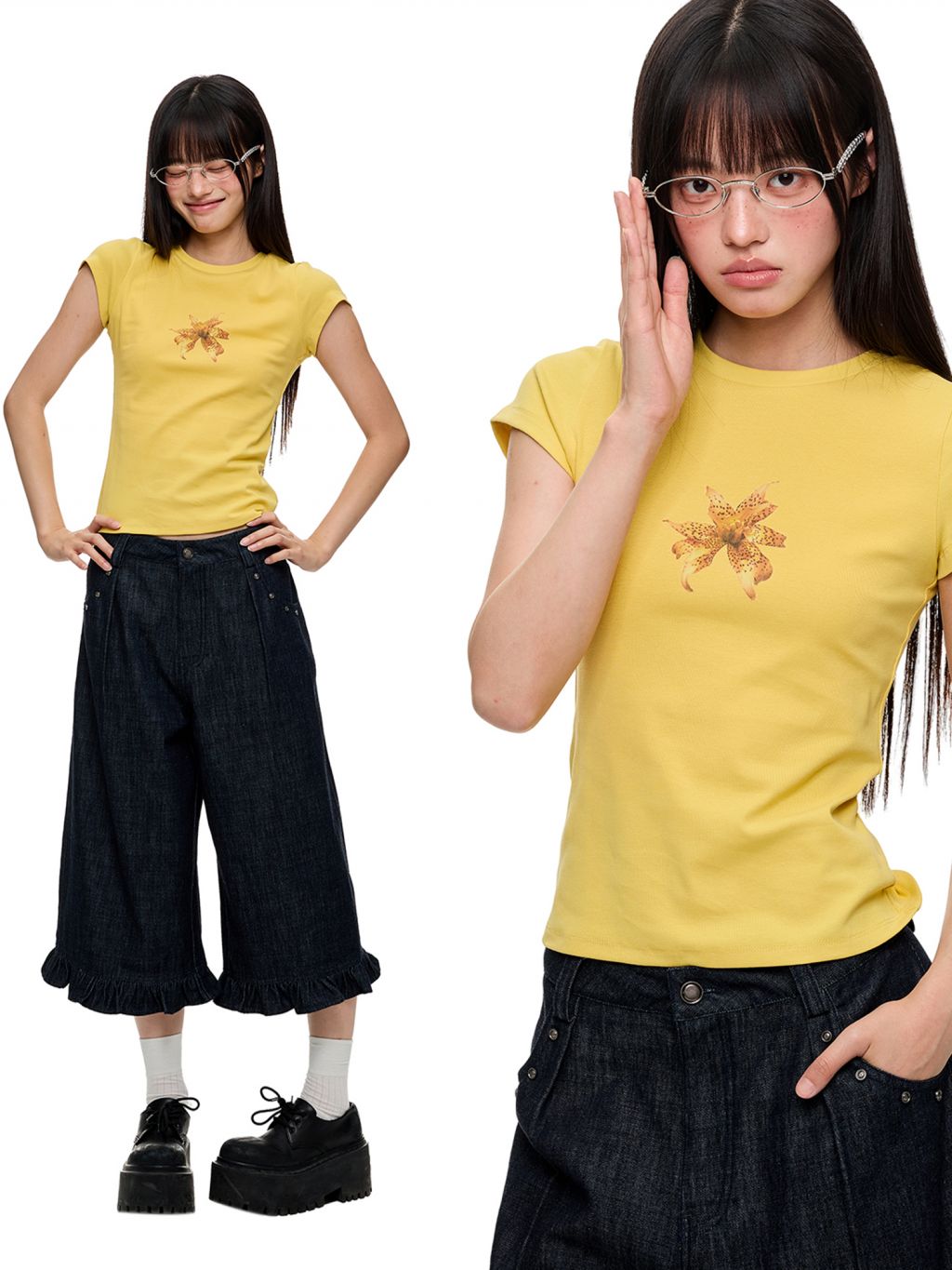 상큼한 프린팅과 컬러감이 돋보이는 여름 시즌 베이비핏 티셔츠로 쫀쫀한 코튼 원단과 슬림한 핏을 연출하며 아이스크림, 꽃, 과일 등 다섯 가지 키치한 프린트로 여름 무드를 가득 담았습니다.