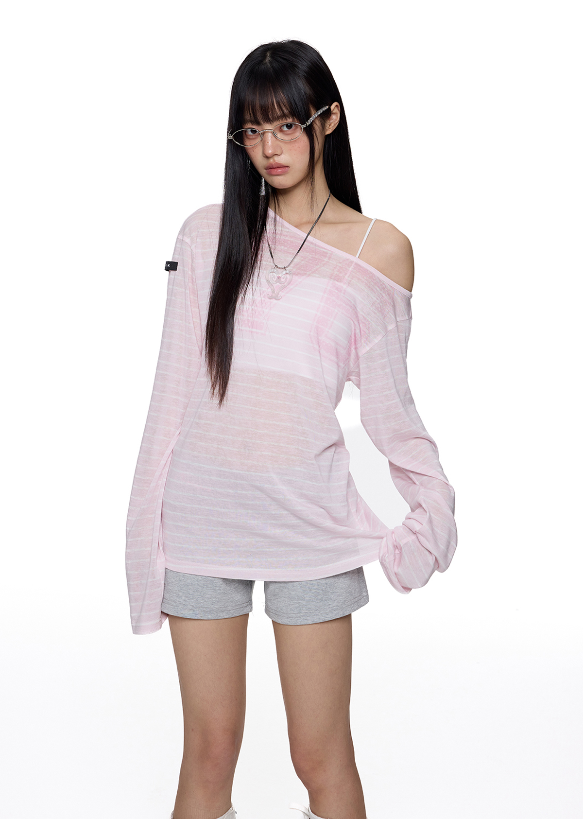 Sheer Stripe One-Shoulder Tee