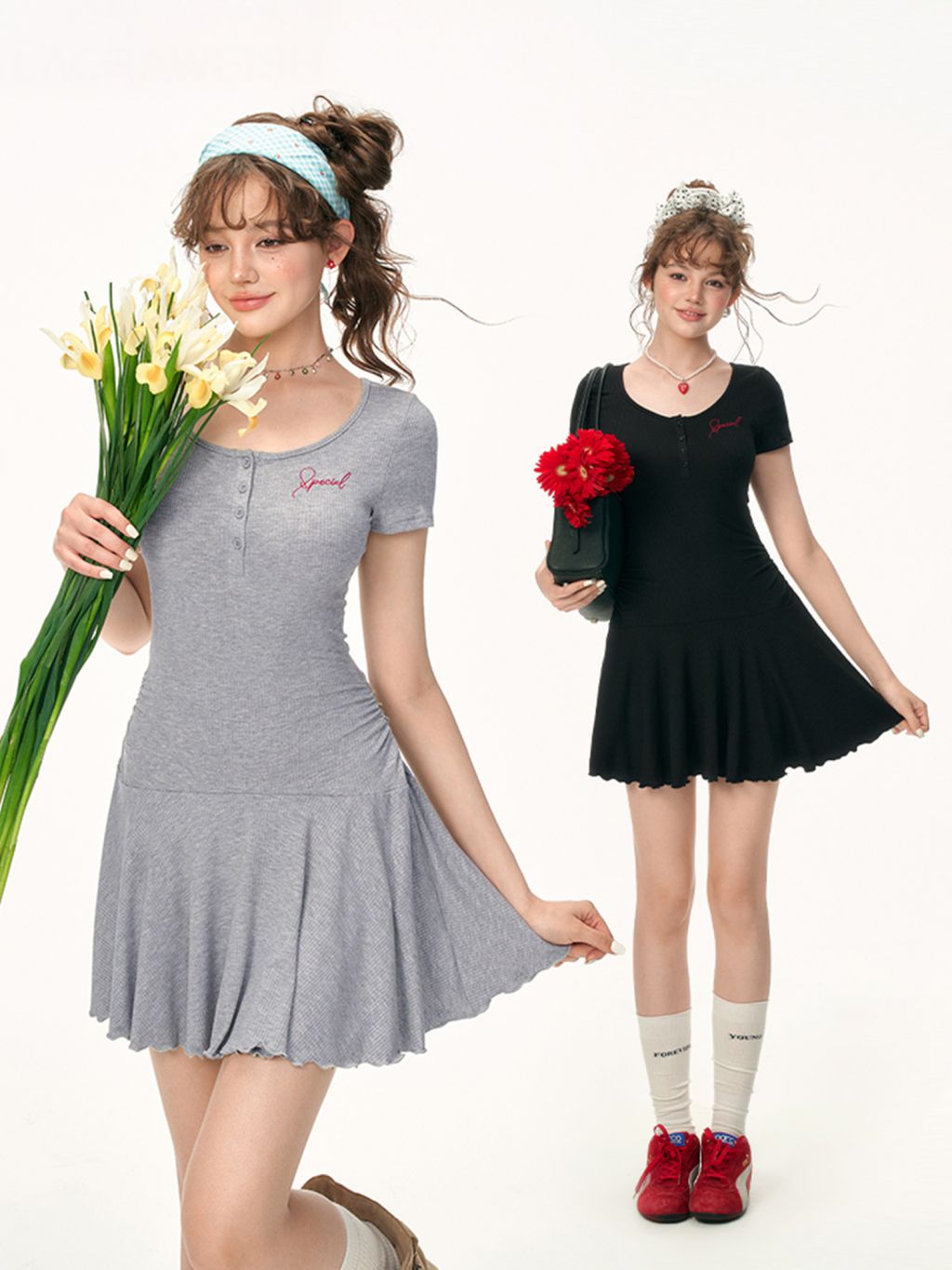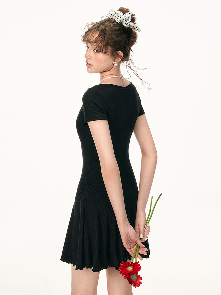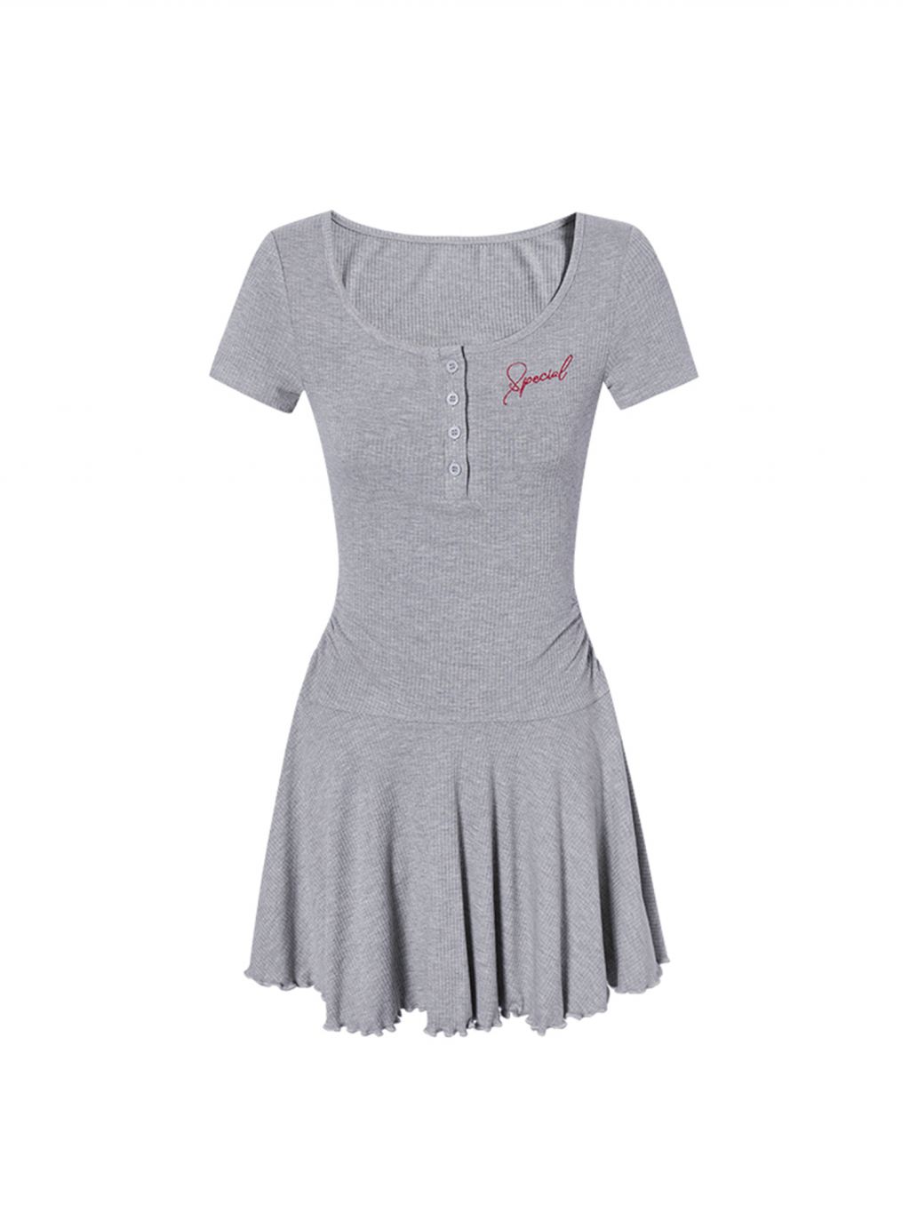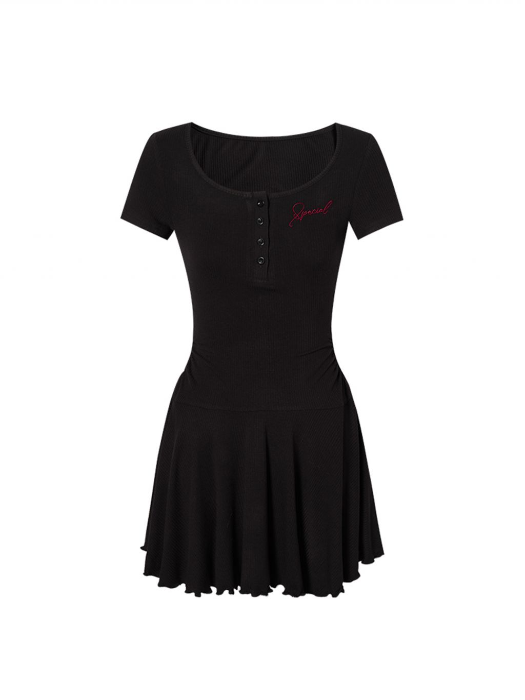 허리 셔링과 플레어 스커트로 자연스럽게 라인을 강조하며 ‘special’ 자수 포인트로 귀여운 감성을 더한 사랑스러운 곡선 실루엣과 달콤한 무드를 담은 리브 원피스입니다.