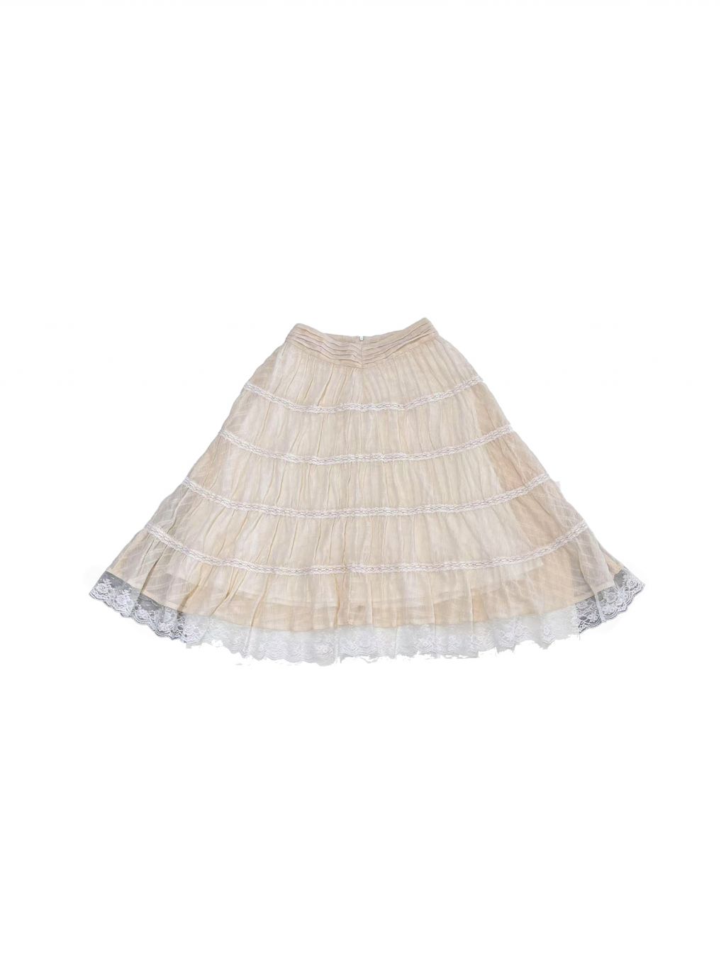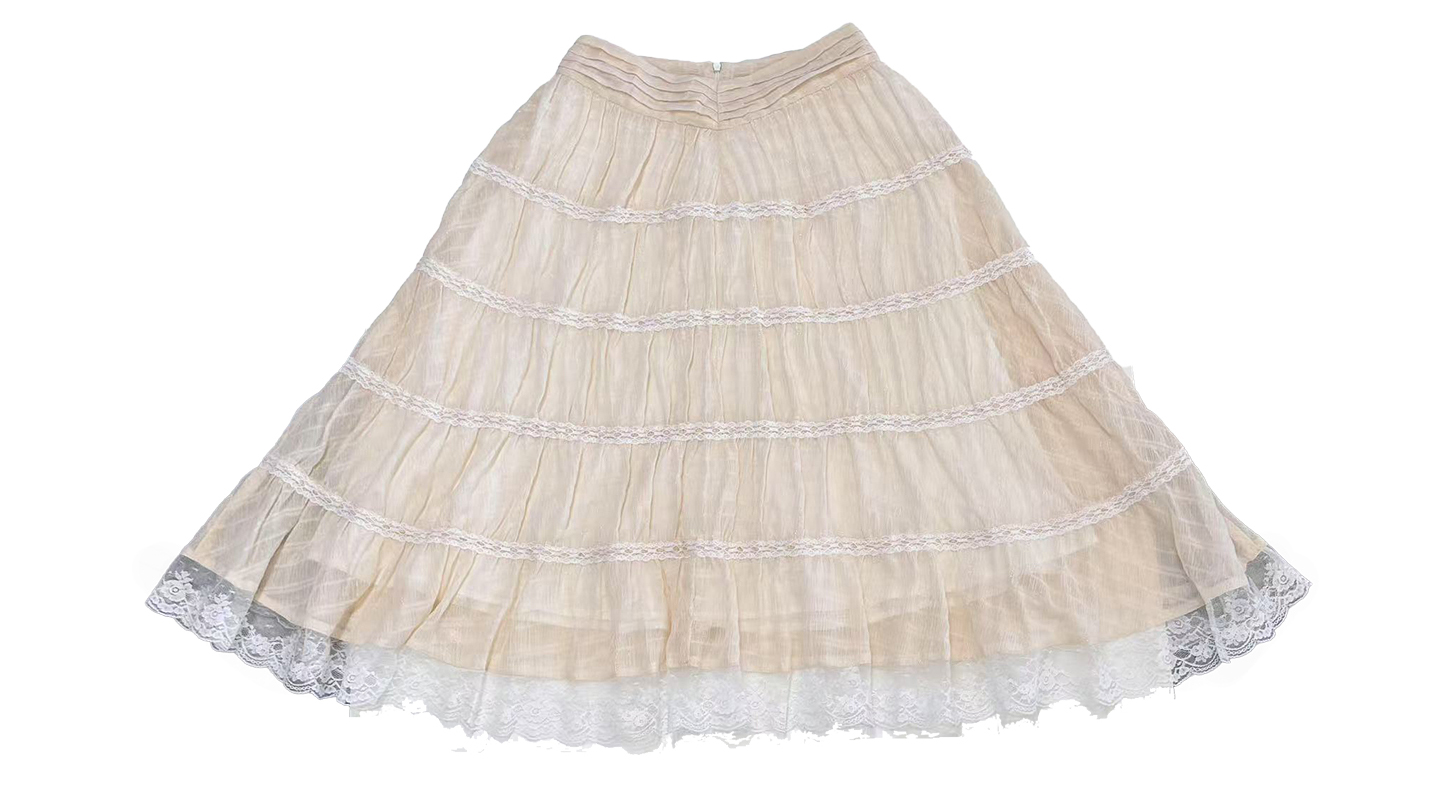 - 스커트 전체를 감싸는 수평 레이스 트리밍 포인트