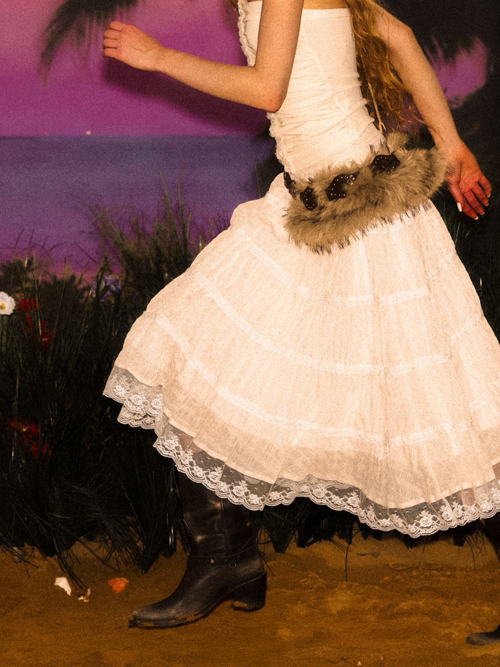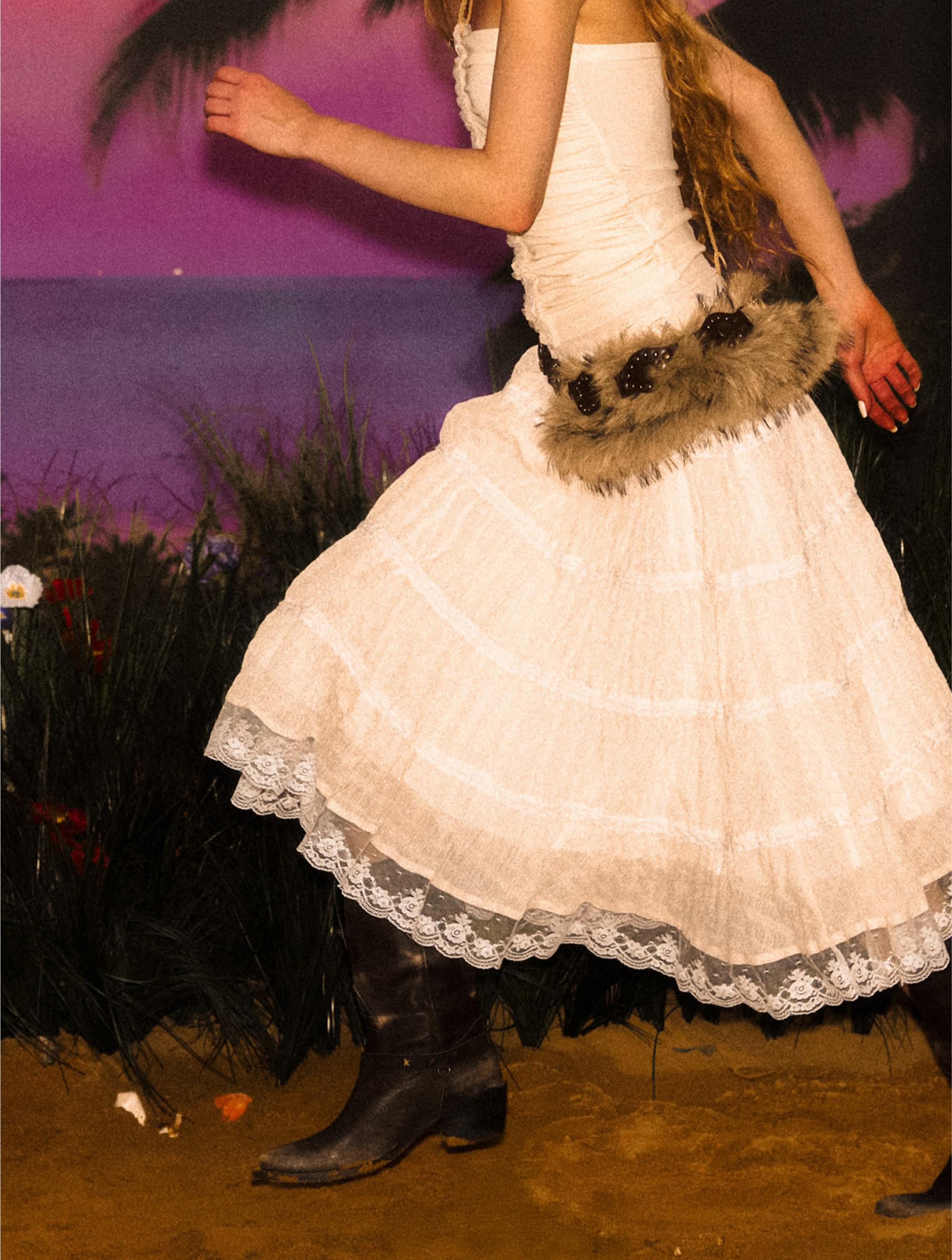 - 밑단에 들어간 레이스 장식으로 마무리된 로맨틱한 디테일