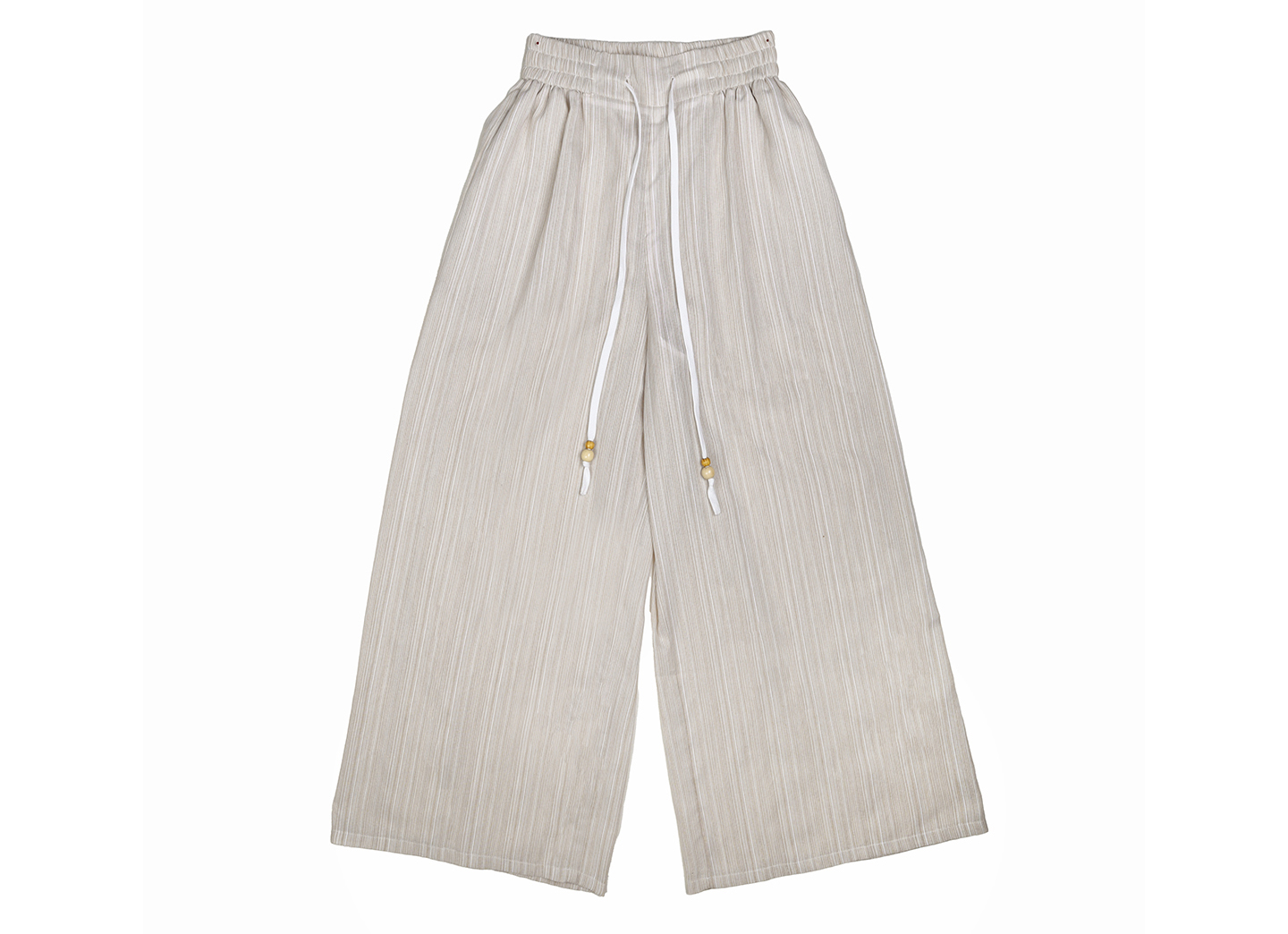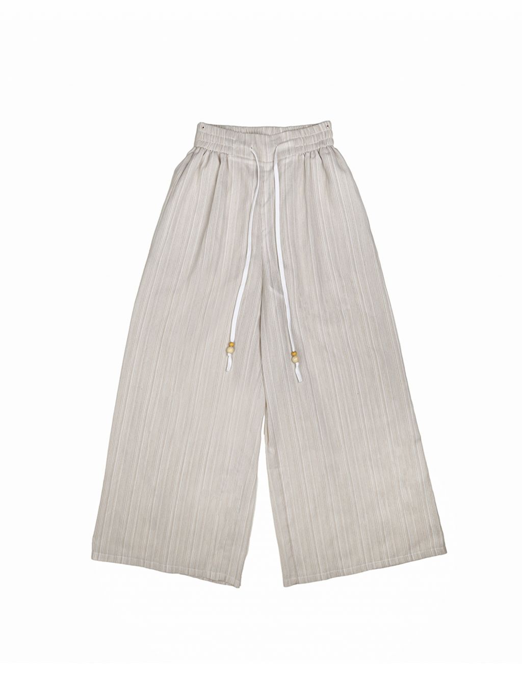 바닷바람처럼 시원하게, 여유로운 무드의 와이드 팬츠로 허리 스트링에 달린 우드 비즈 포인트로 내추럴한 감성을 더한 비치웨어부터 일상까지 폭넓게 활용할 수 있는 여름 데일리 팬츠입니다.