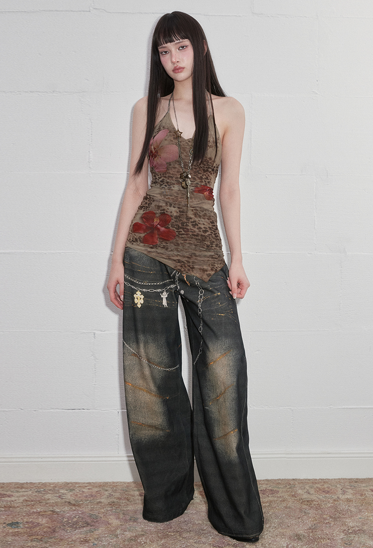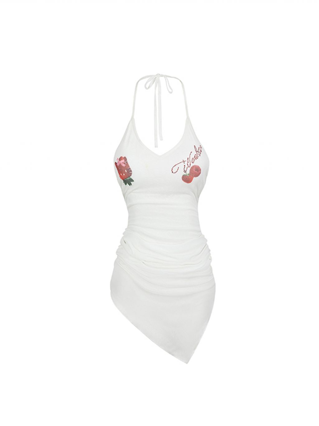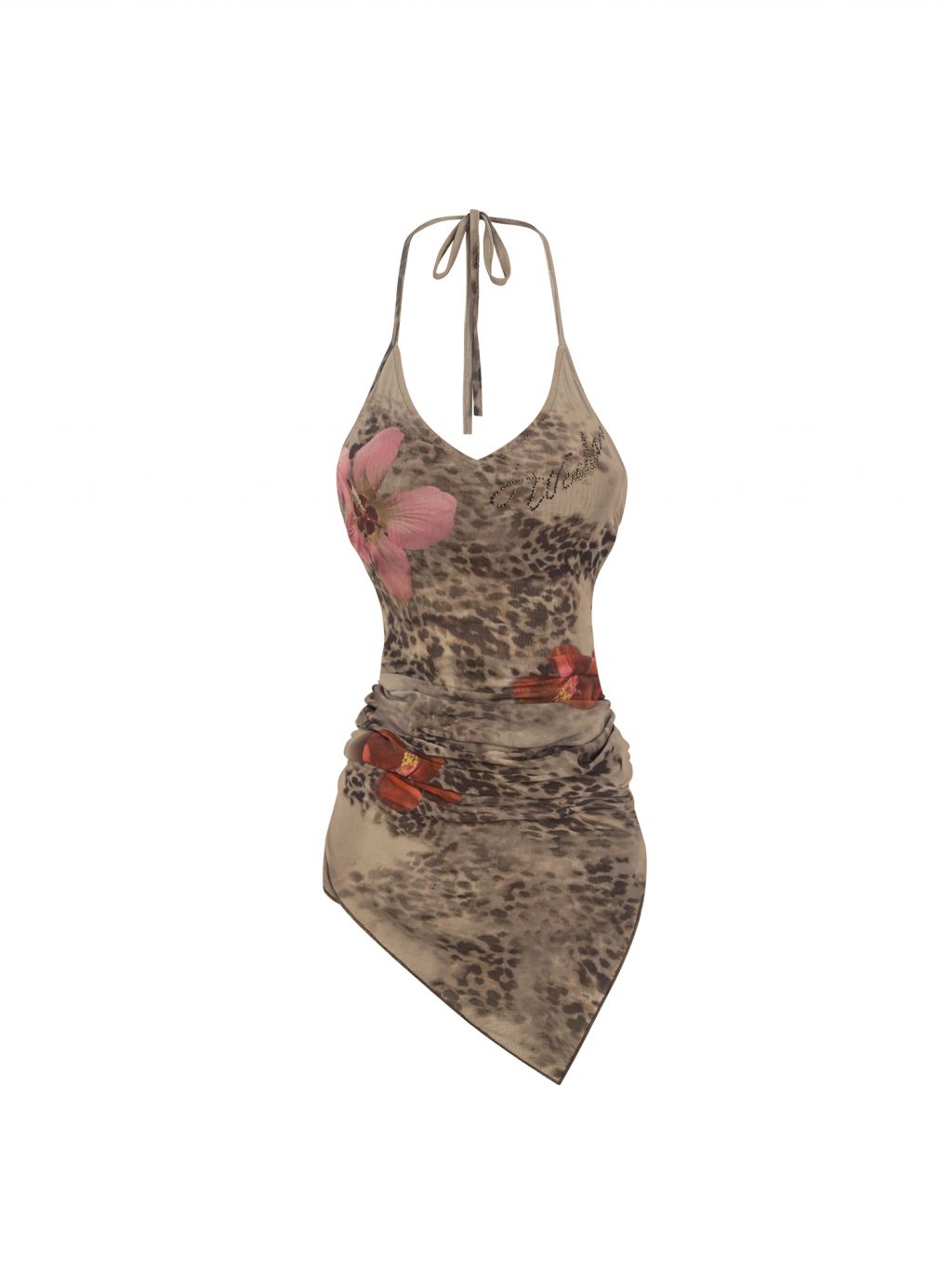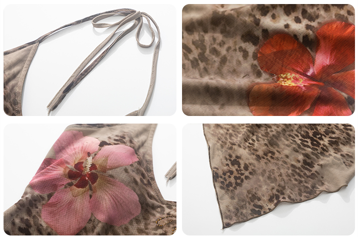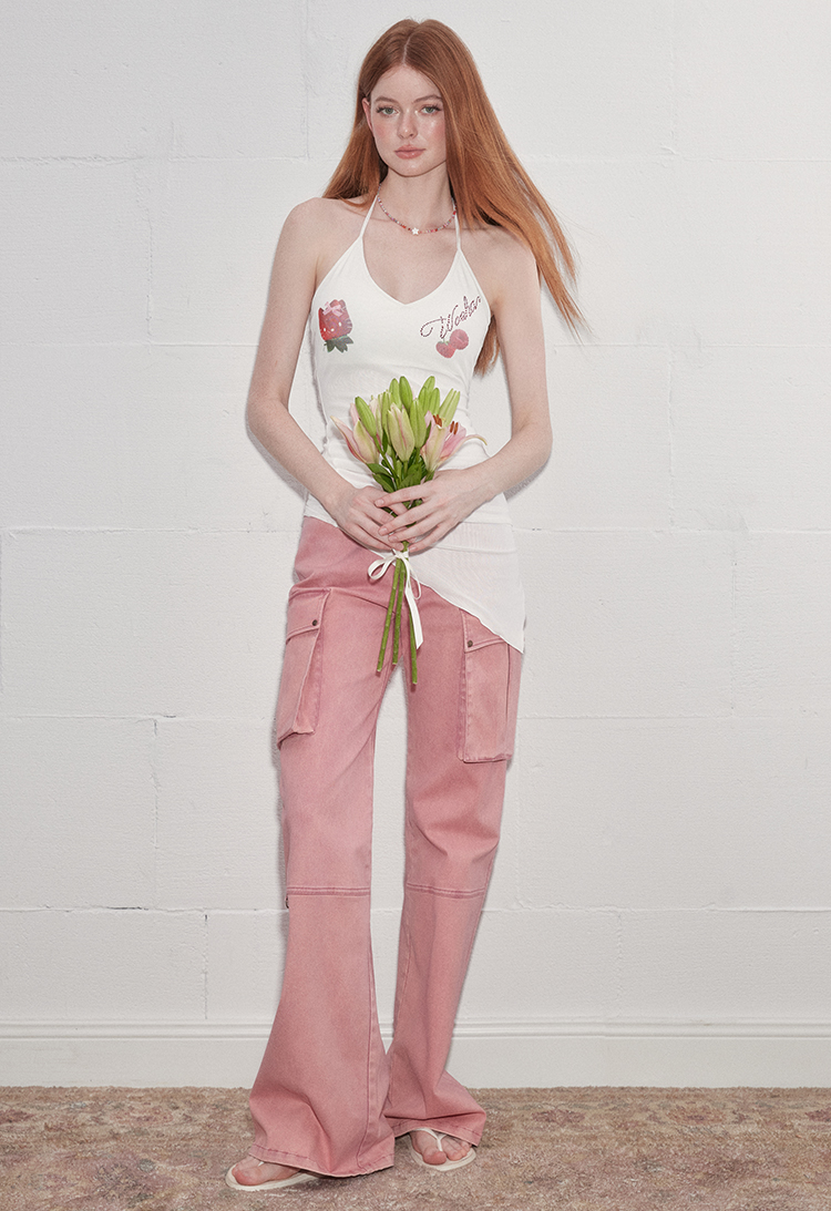 감각적인 그래픽과 입체적인 셔링 디테일로 시선을 사로잡는 홀터 탑으로 비대칭 헴라인이 스타일리시한 무드를 더하고 얇은 스트랩으로 여리한 실루엣을 연출해줍니다.