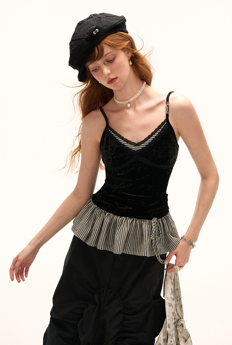 Velvet Peplum Strappy Top