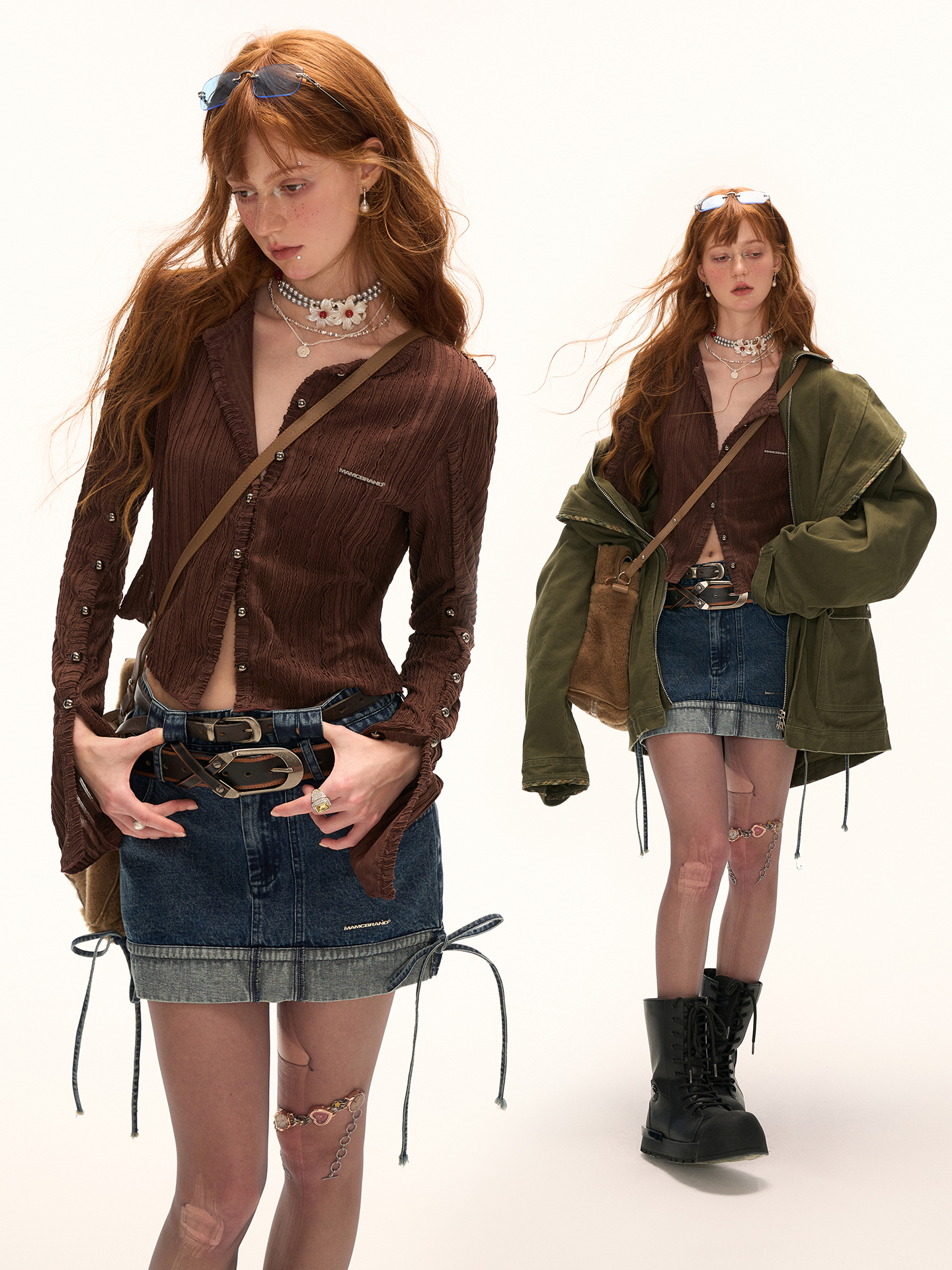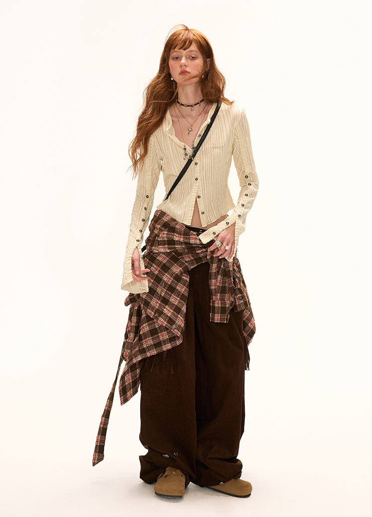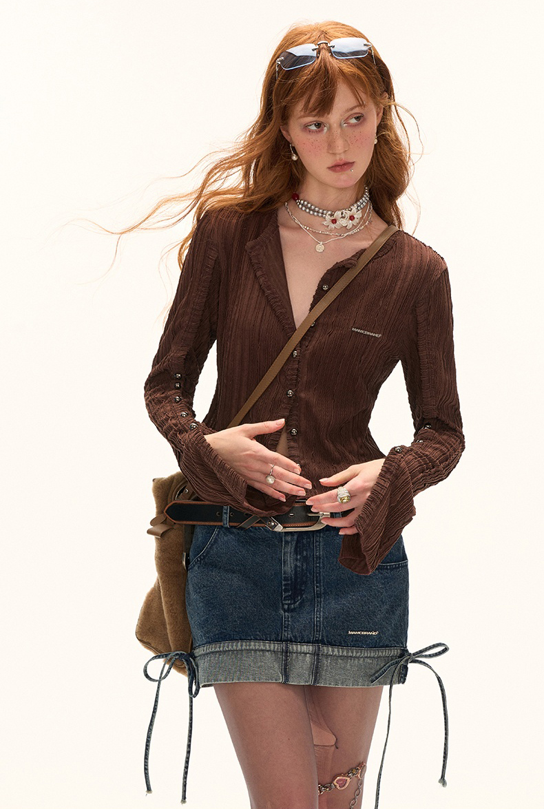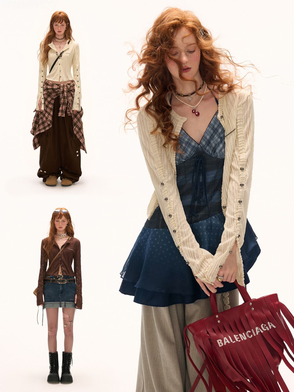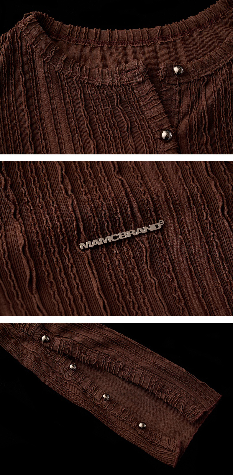 잔잔한 스트라이프 패턴과 셔링 텍스처가 돋보이는 버튼 가디건으로 소매와 프론트 전면에 이어진 버튼 디테일로 다양한 스타일링 연출이 가능하며 크롭 기장과 슬림한 실루엣으로 단독 또는 레이어드 착용 시 세련된 무드를 완성합니다.