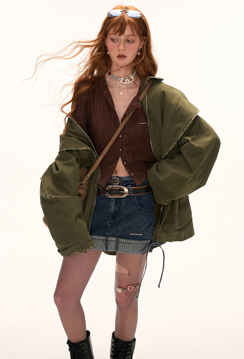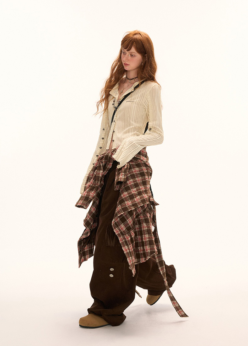- 스트라이프 패턴과 셔링 텍스처 원단 사용