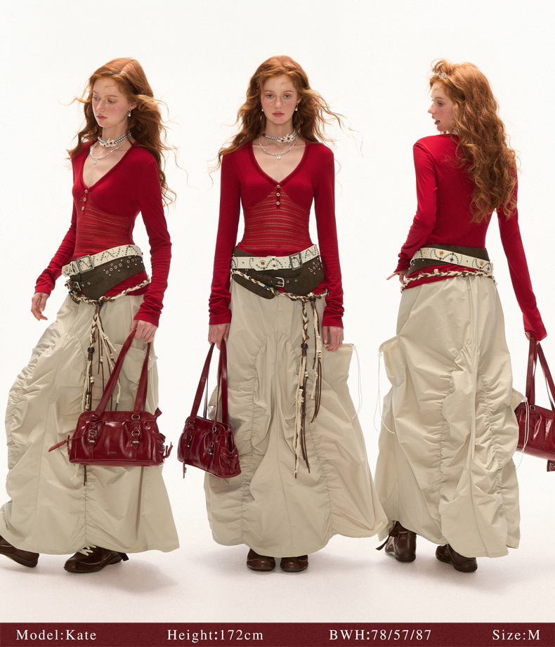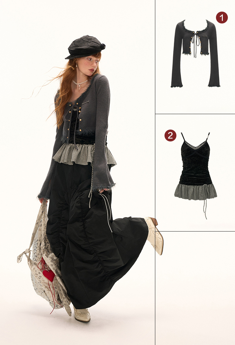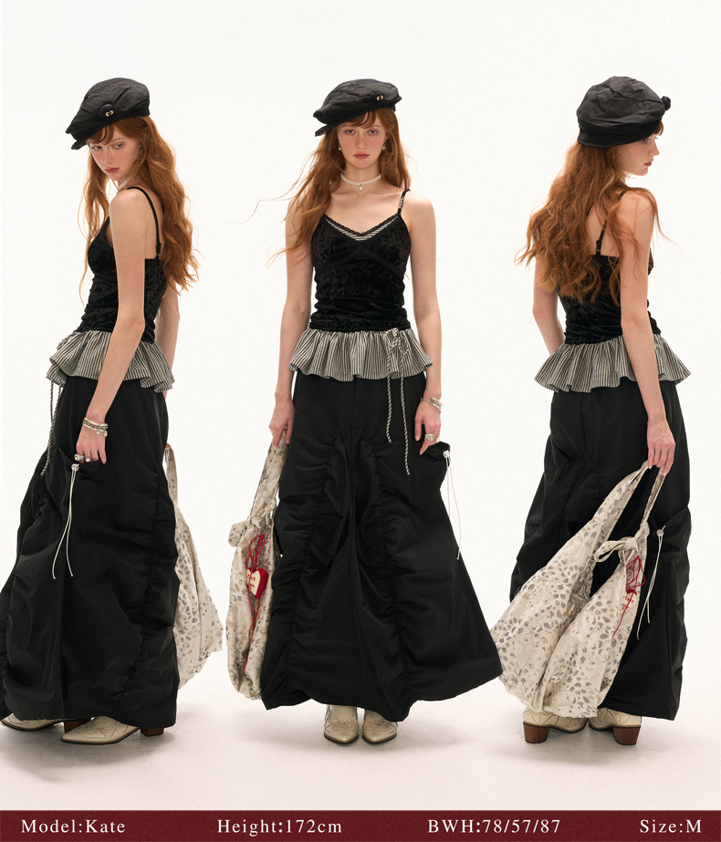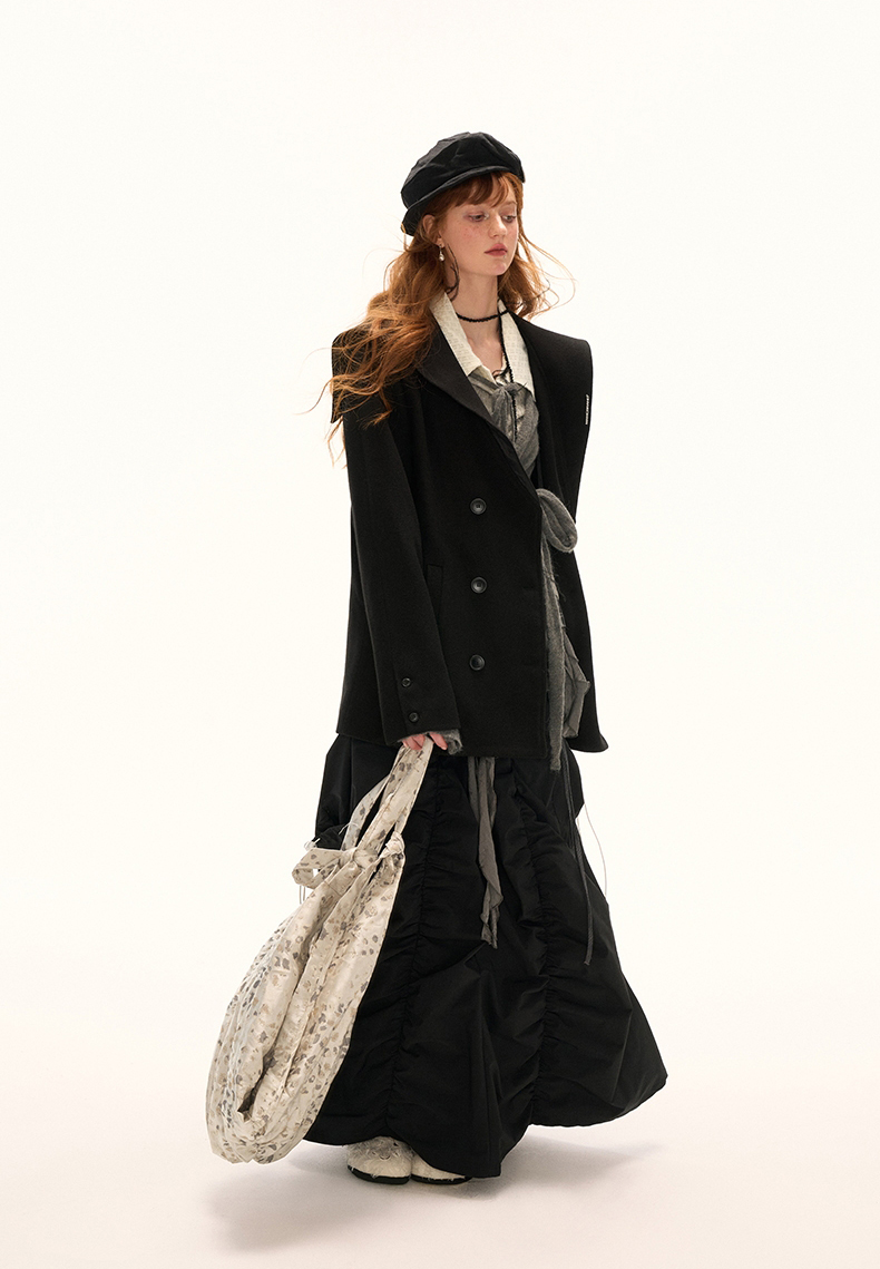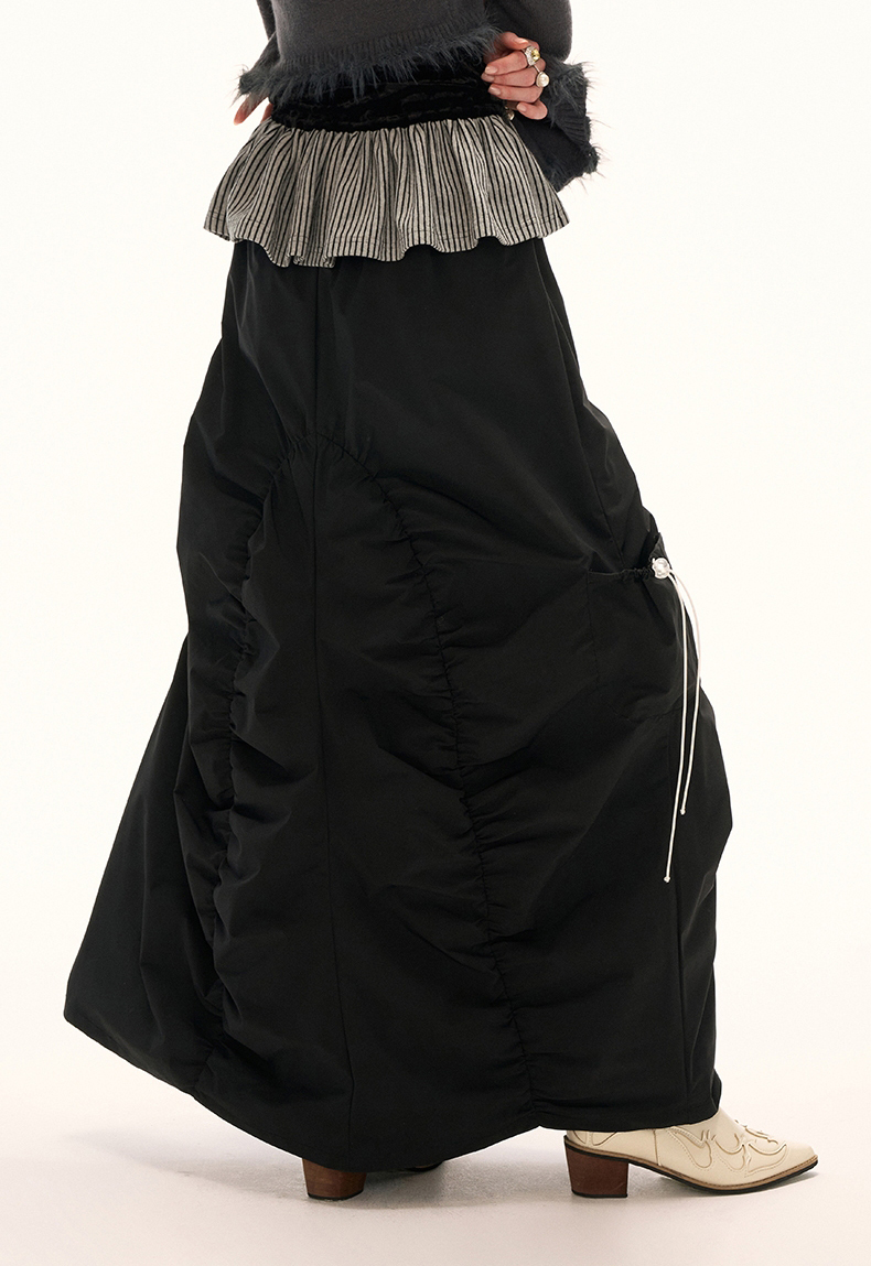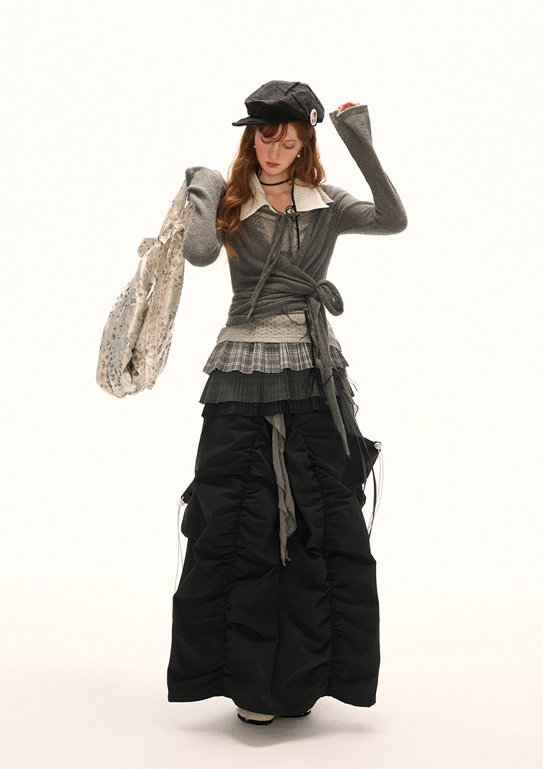 입체적인 셔링 디테일과 카고 포켓이 어우러져 유니크한 무드를 완성하며 드로스트링으로 실루엣 변형이 가능해 스타일에 따라 다양한 분위기를 연출할 수 있습니다.