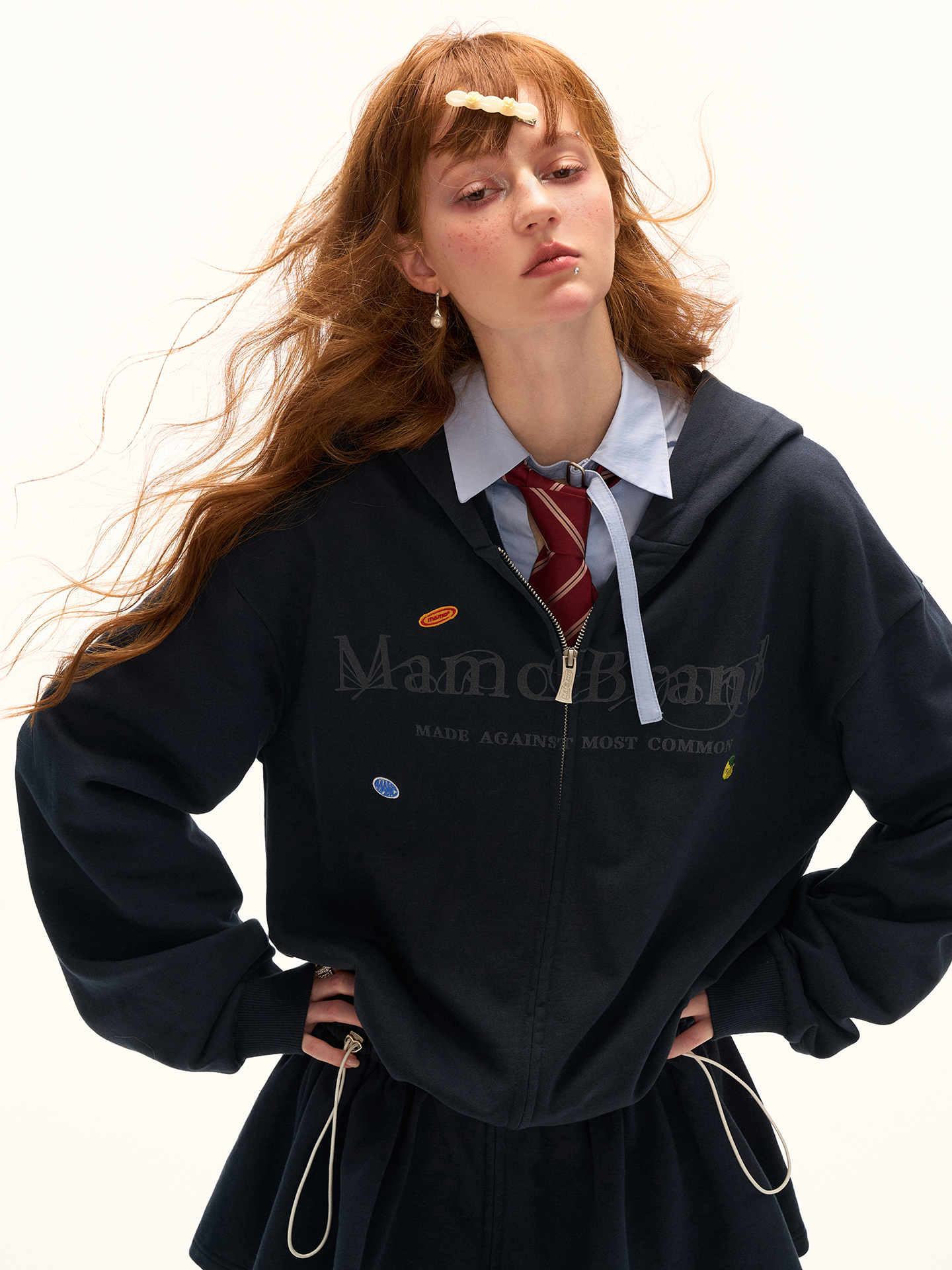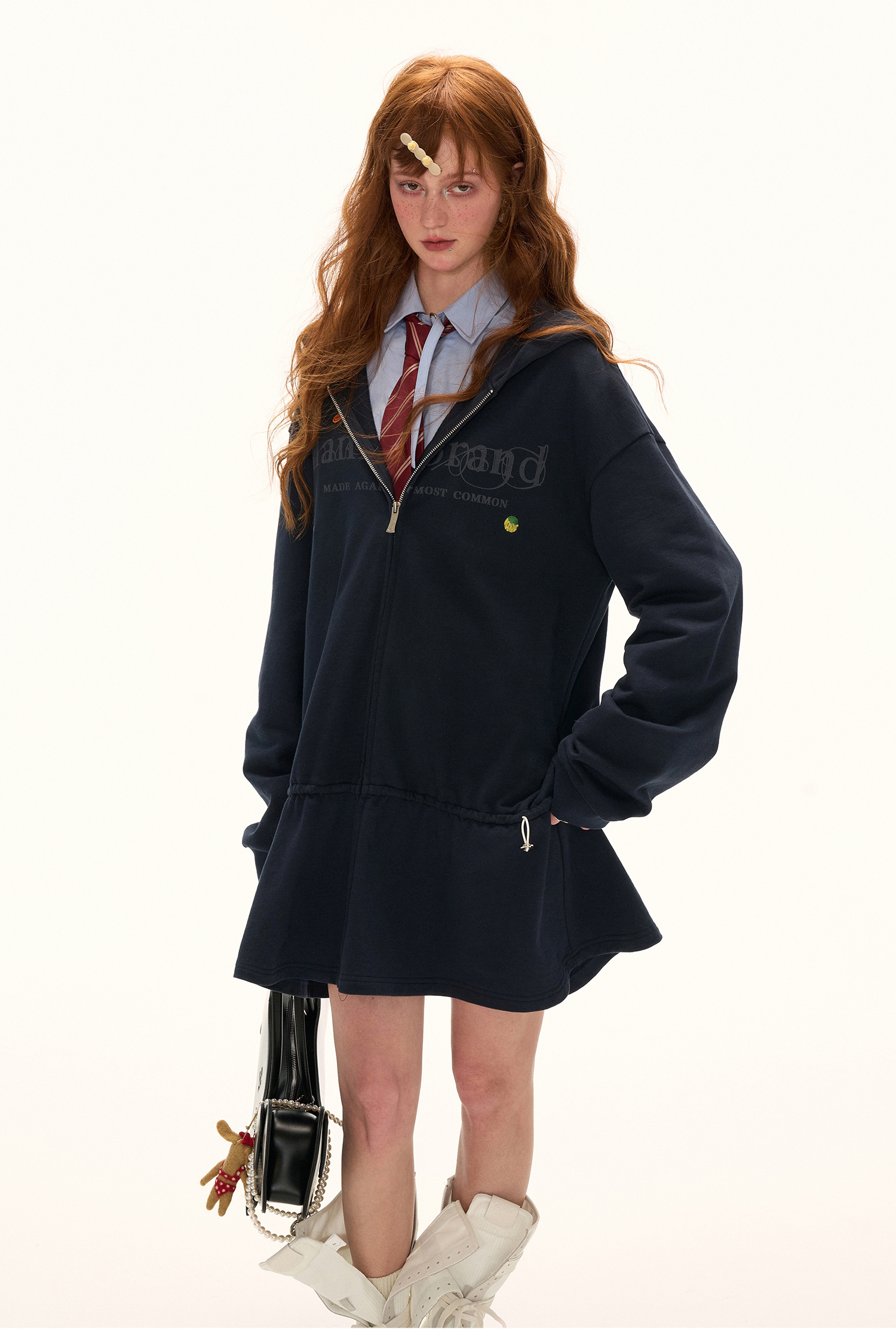 편안한 후드 집업과 발랄한 드레스 실루엣을 결합한 디자인으로 허리 스트링 디테일은 자유롭게 핏을 조절할 수 있으며, 워싱 처리된 원단이 빈티지한 감각을 더해 데일리룩부터 개성 있는 스타일링까지 폭넓게 활용 가능합니다.