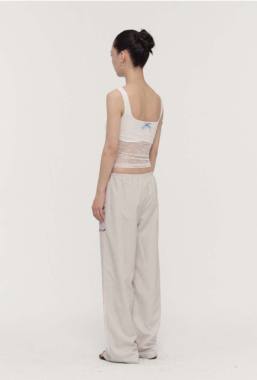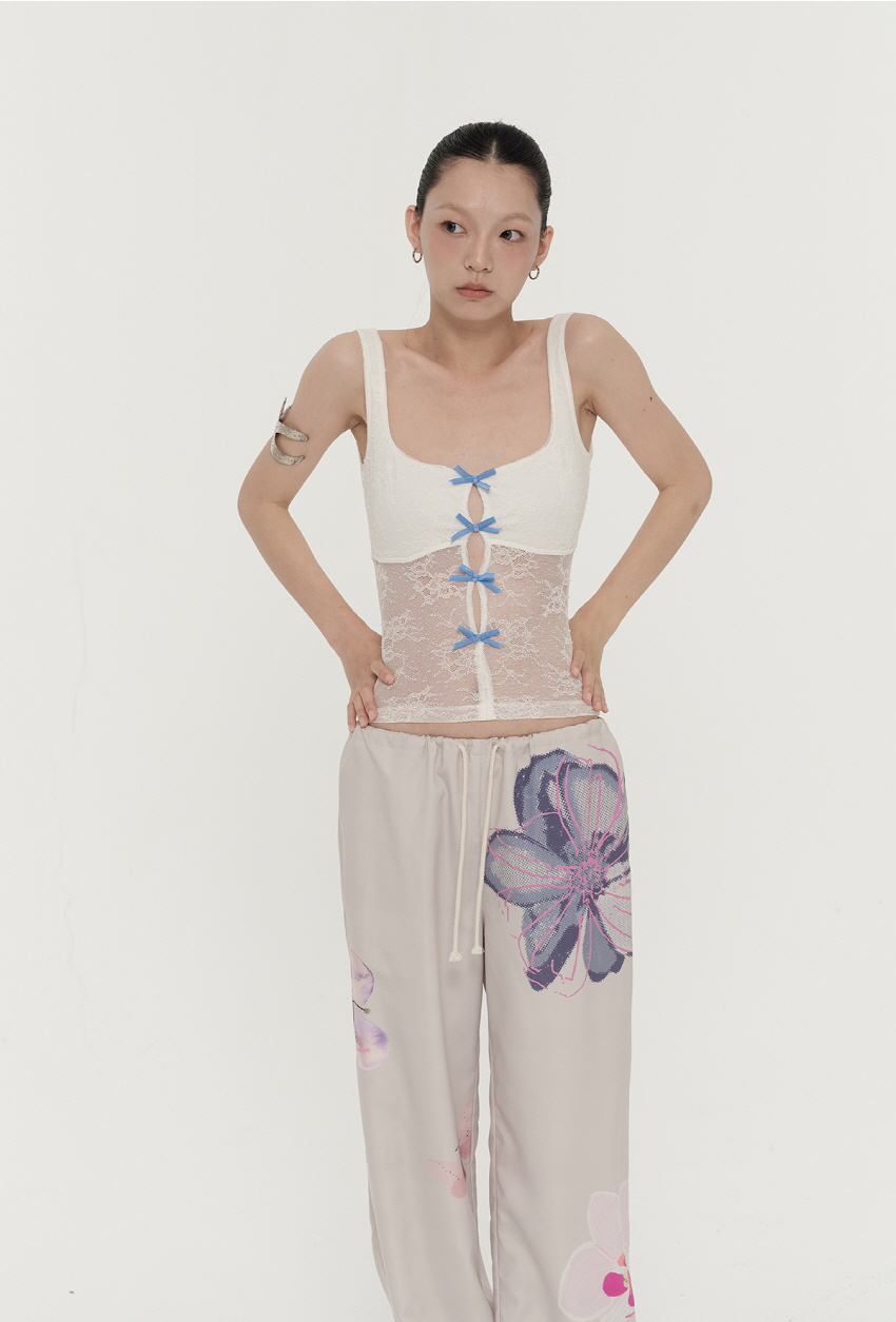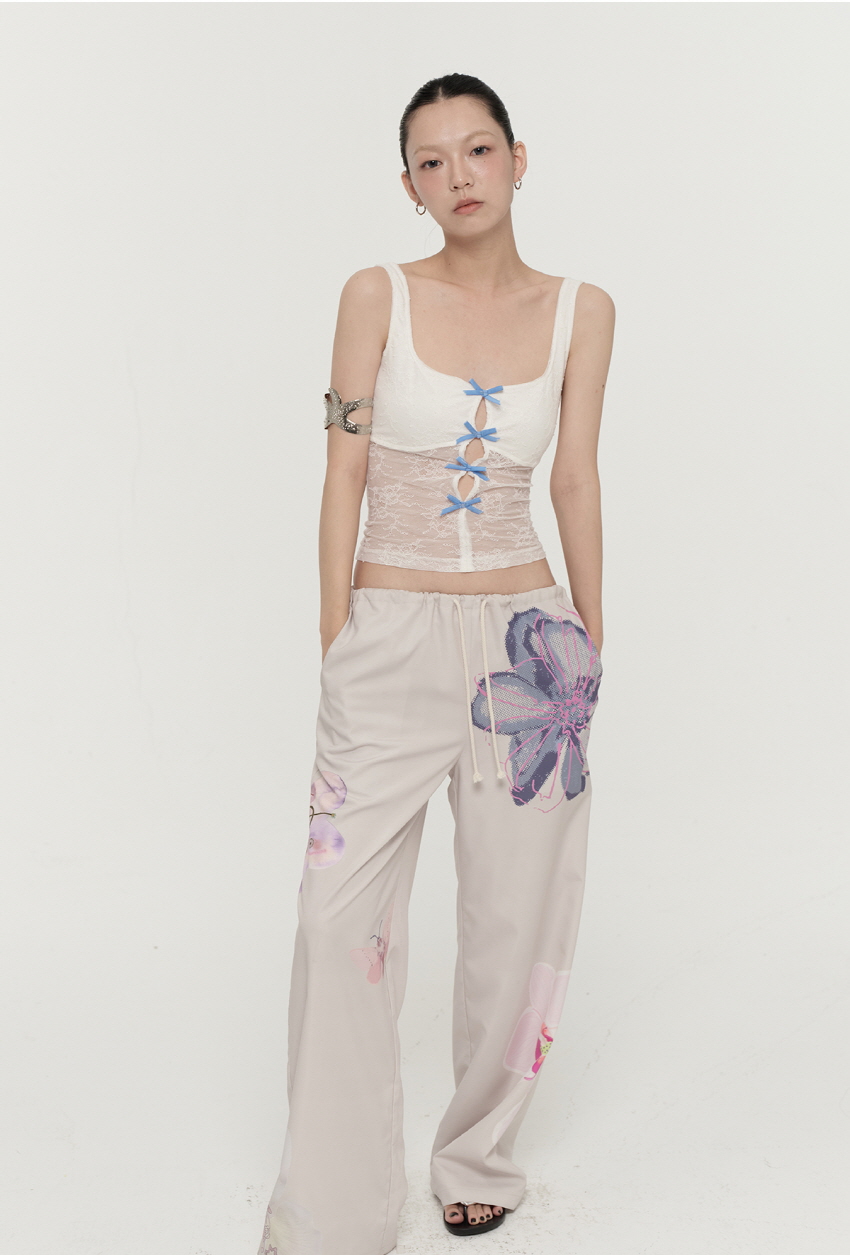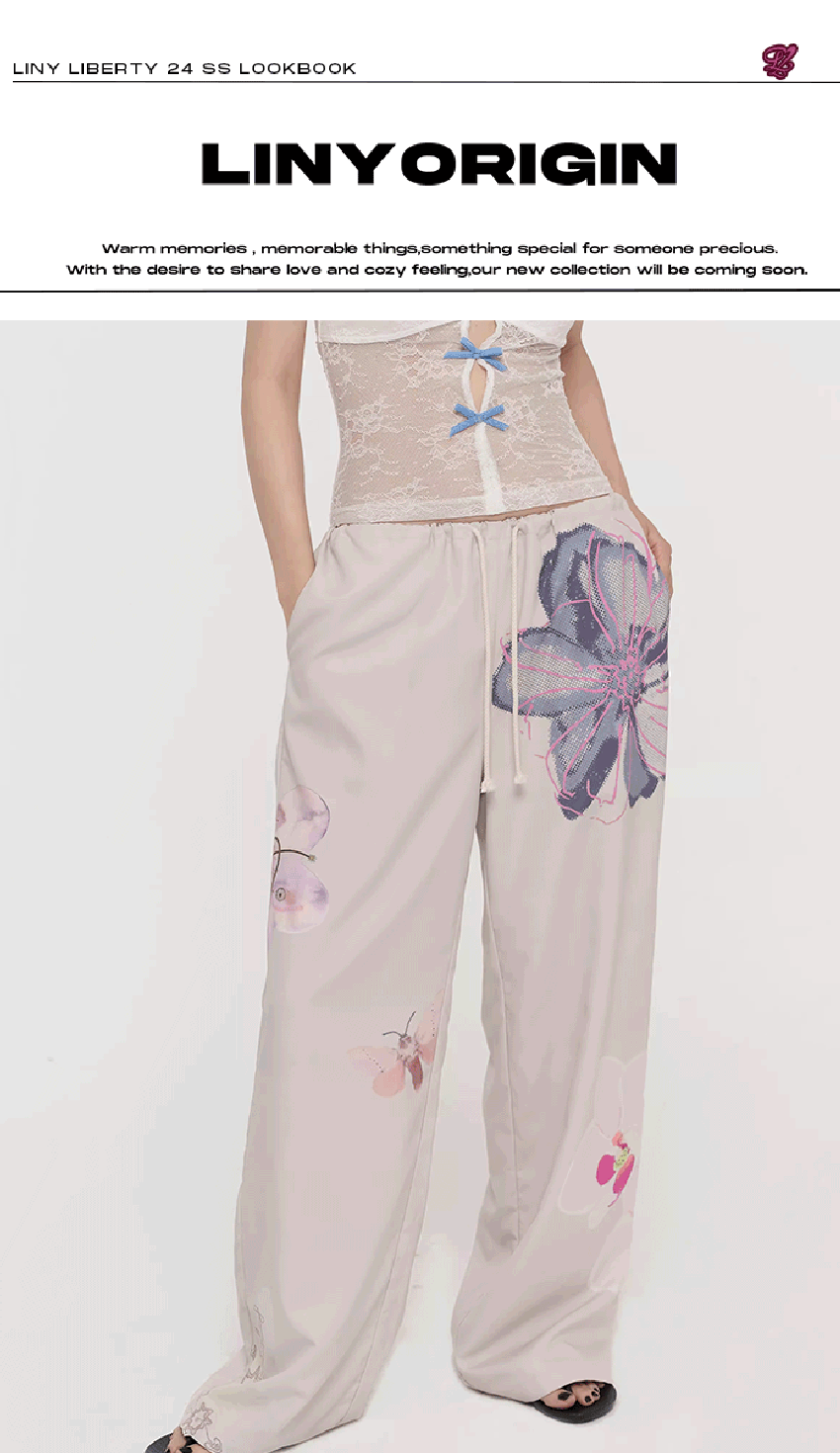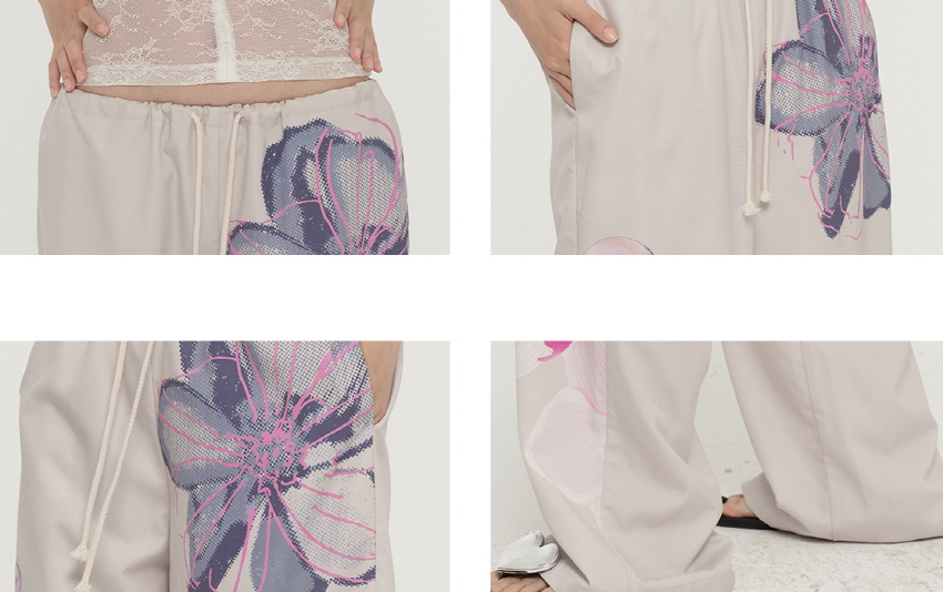 컬러감 있는 플라워 프린팅을 넣어 제작한 루즈핏 캐주얼 팬츠입니다.