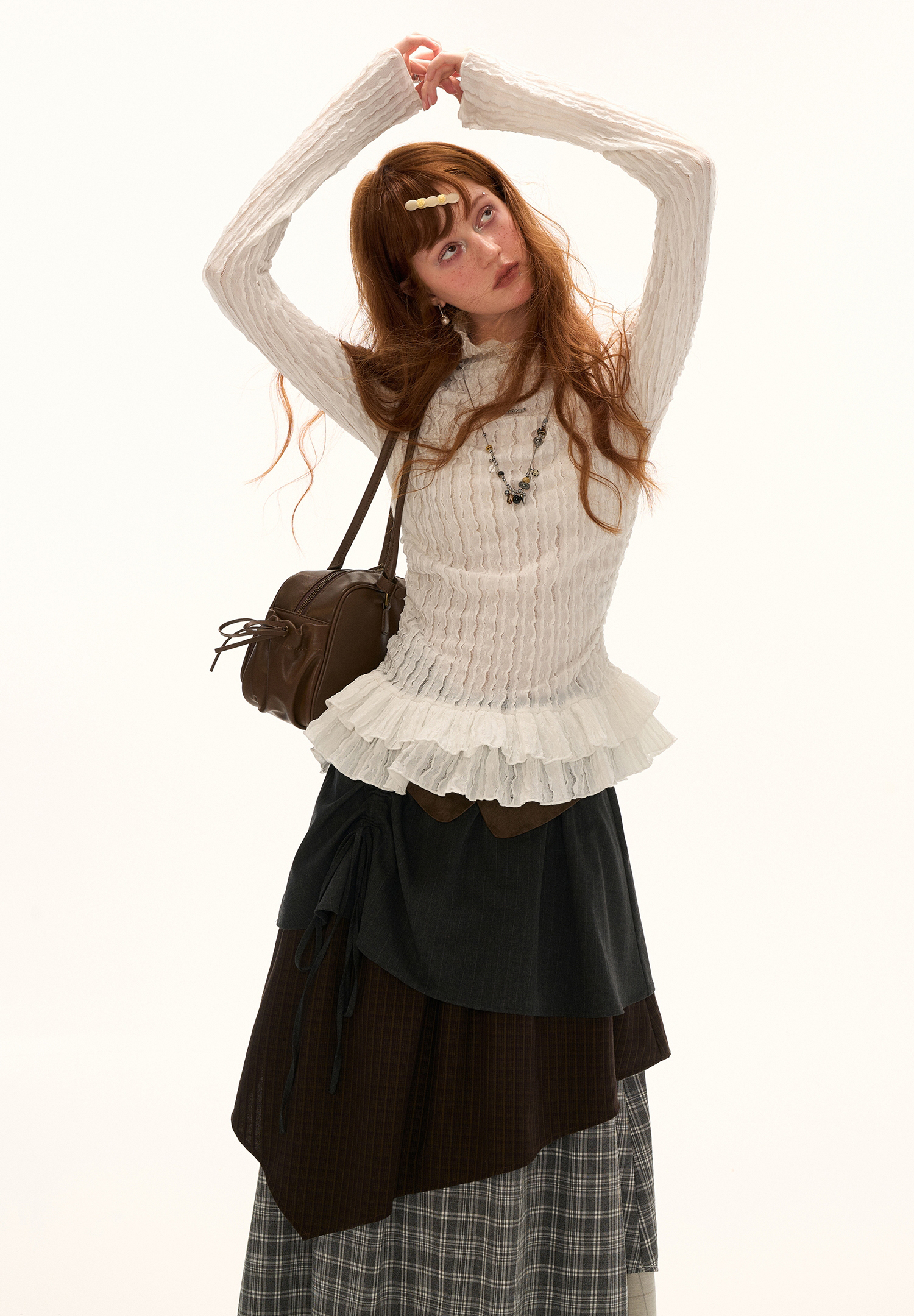 - 레이스 소재 특유의 시스루 감각으로 가볍고 여성스러운 분위기 연출