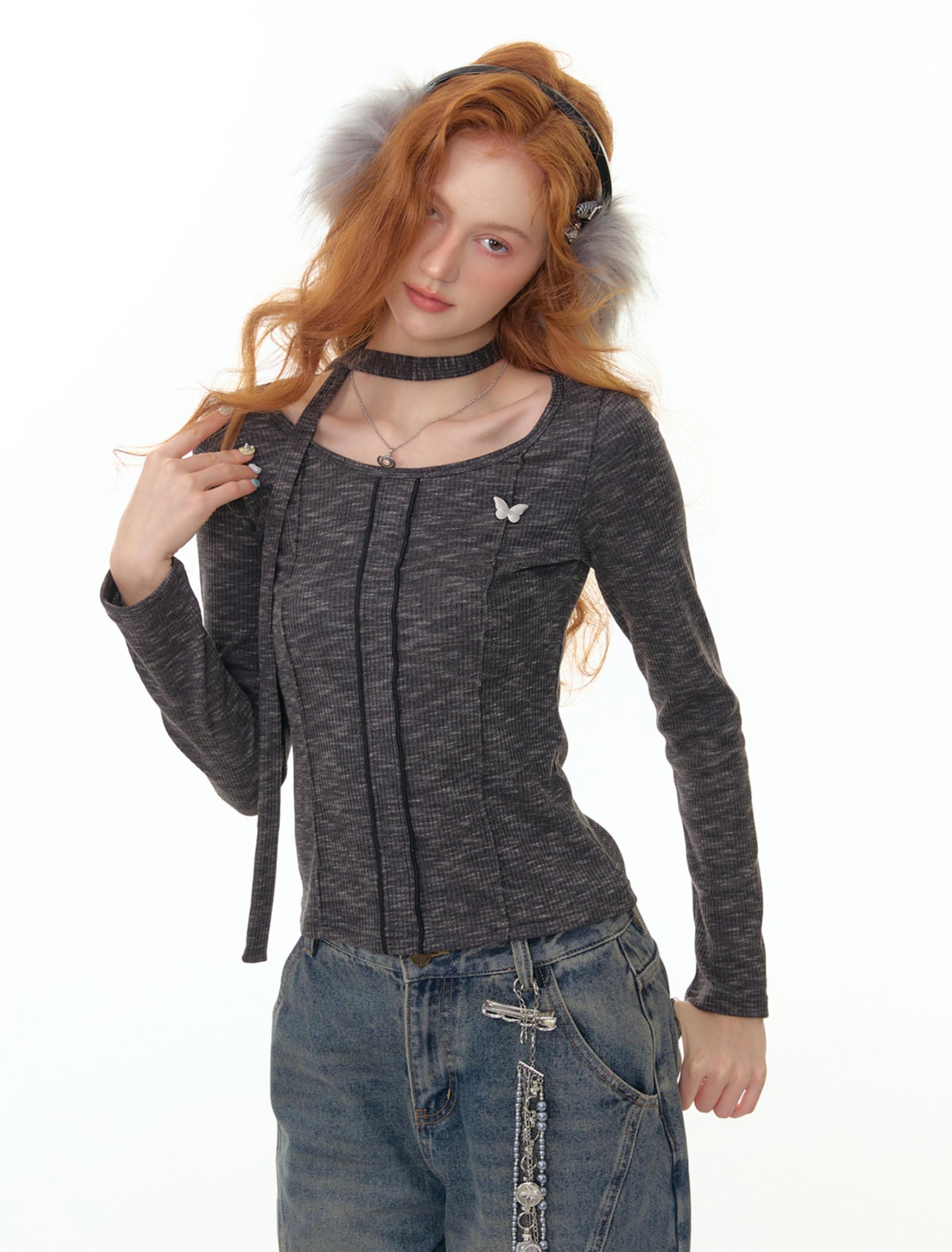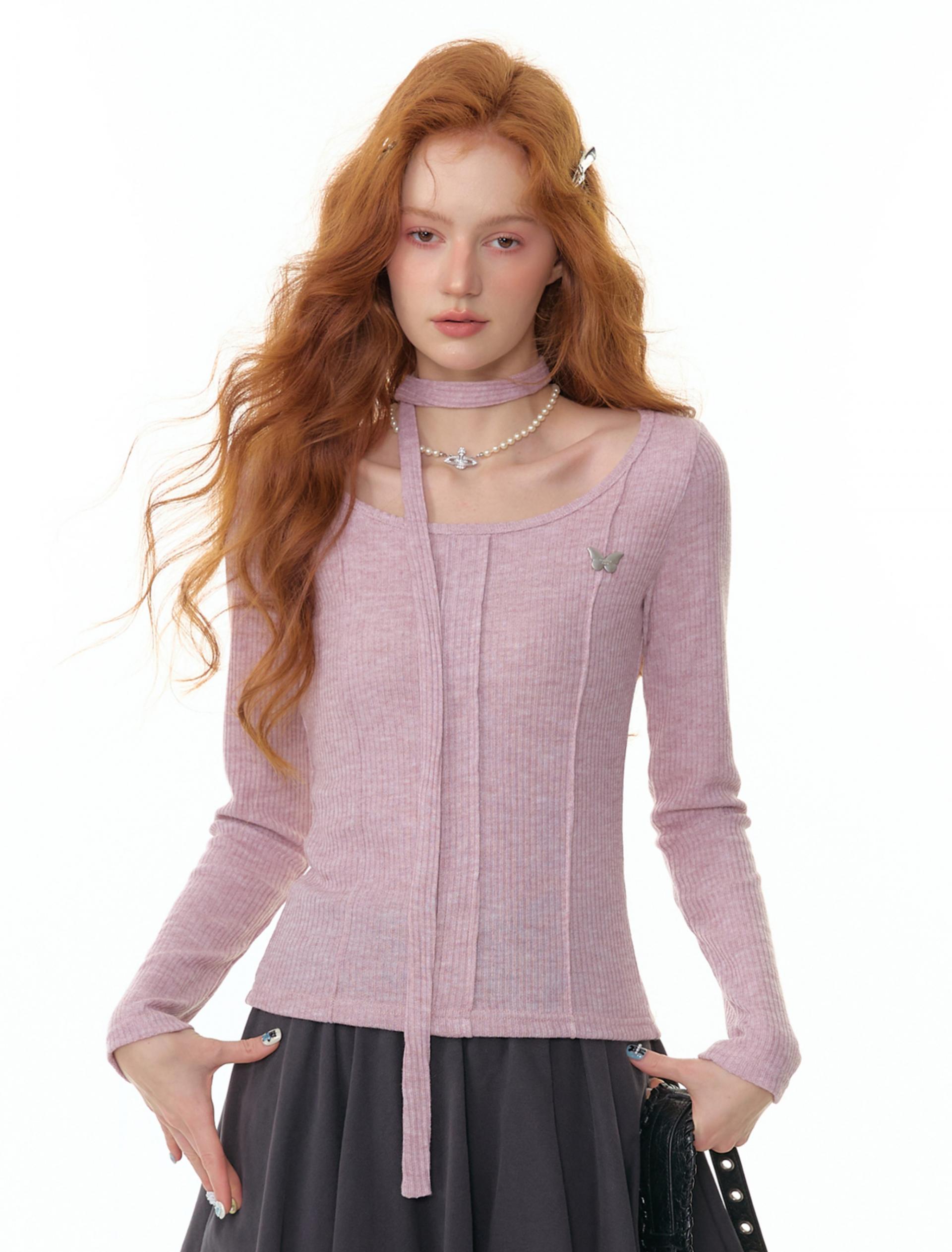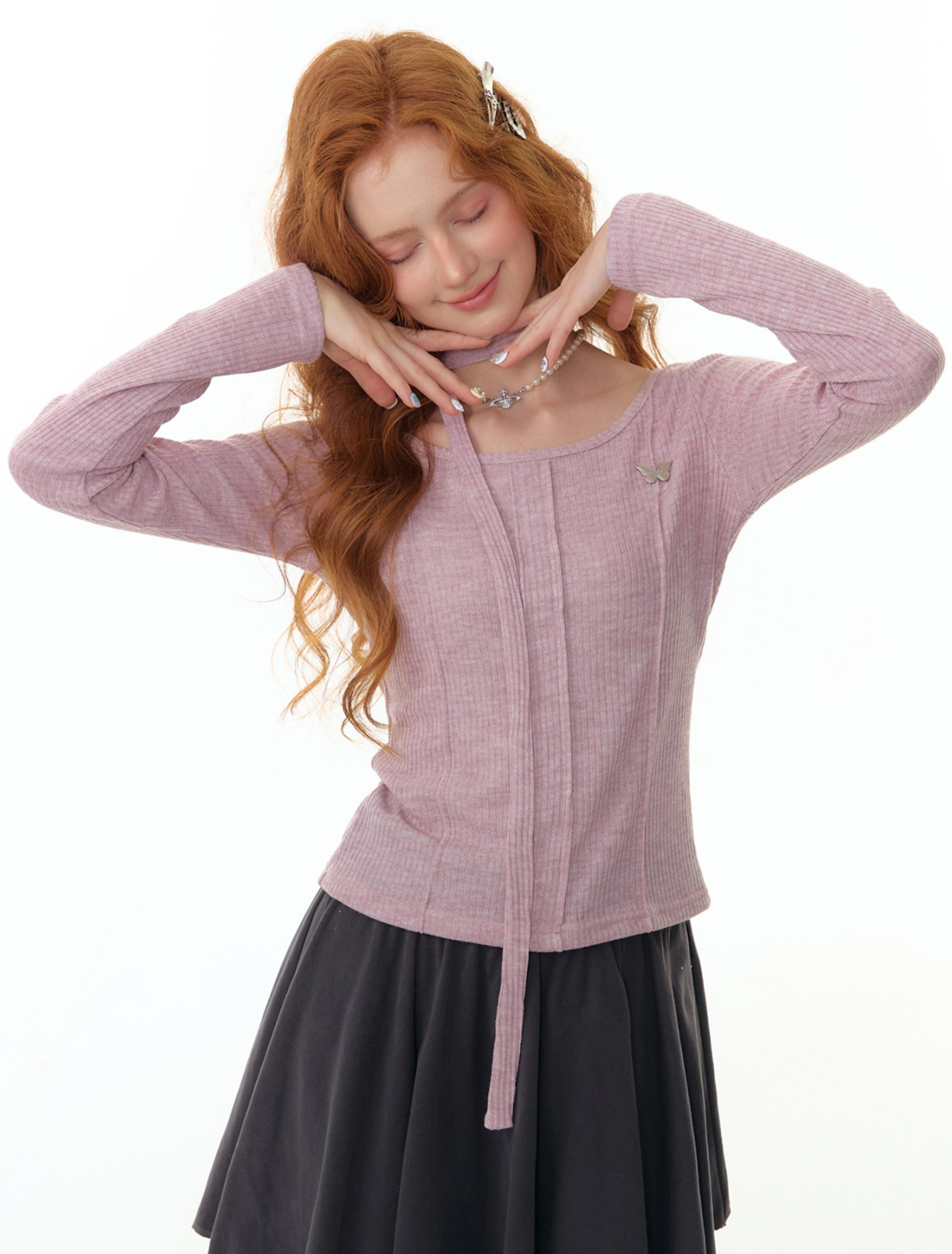 Butterfly Choker Knit Top