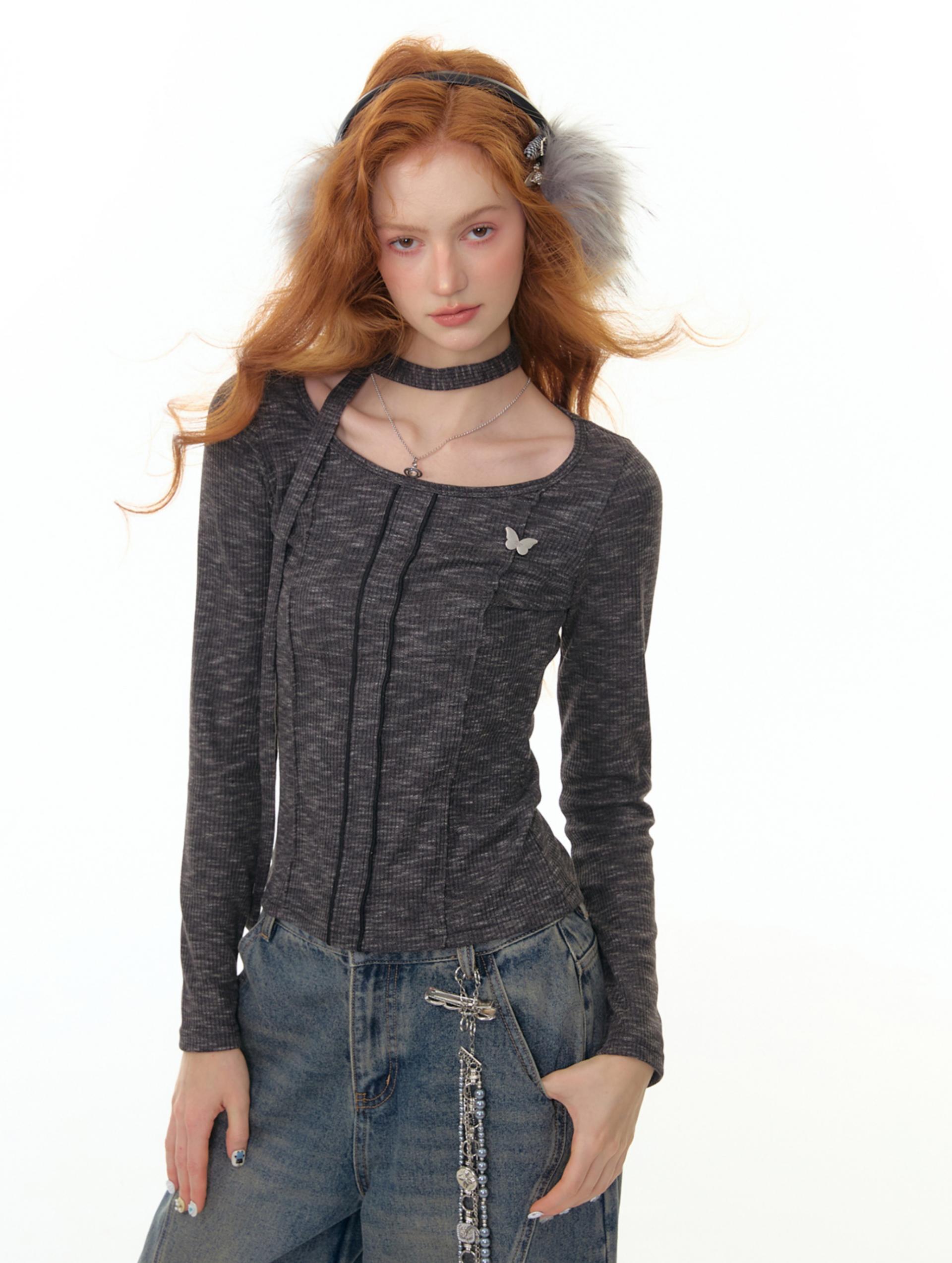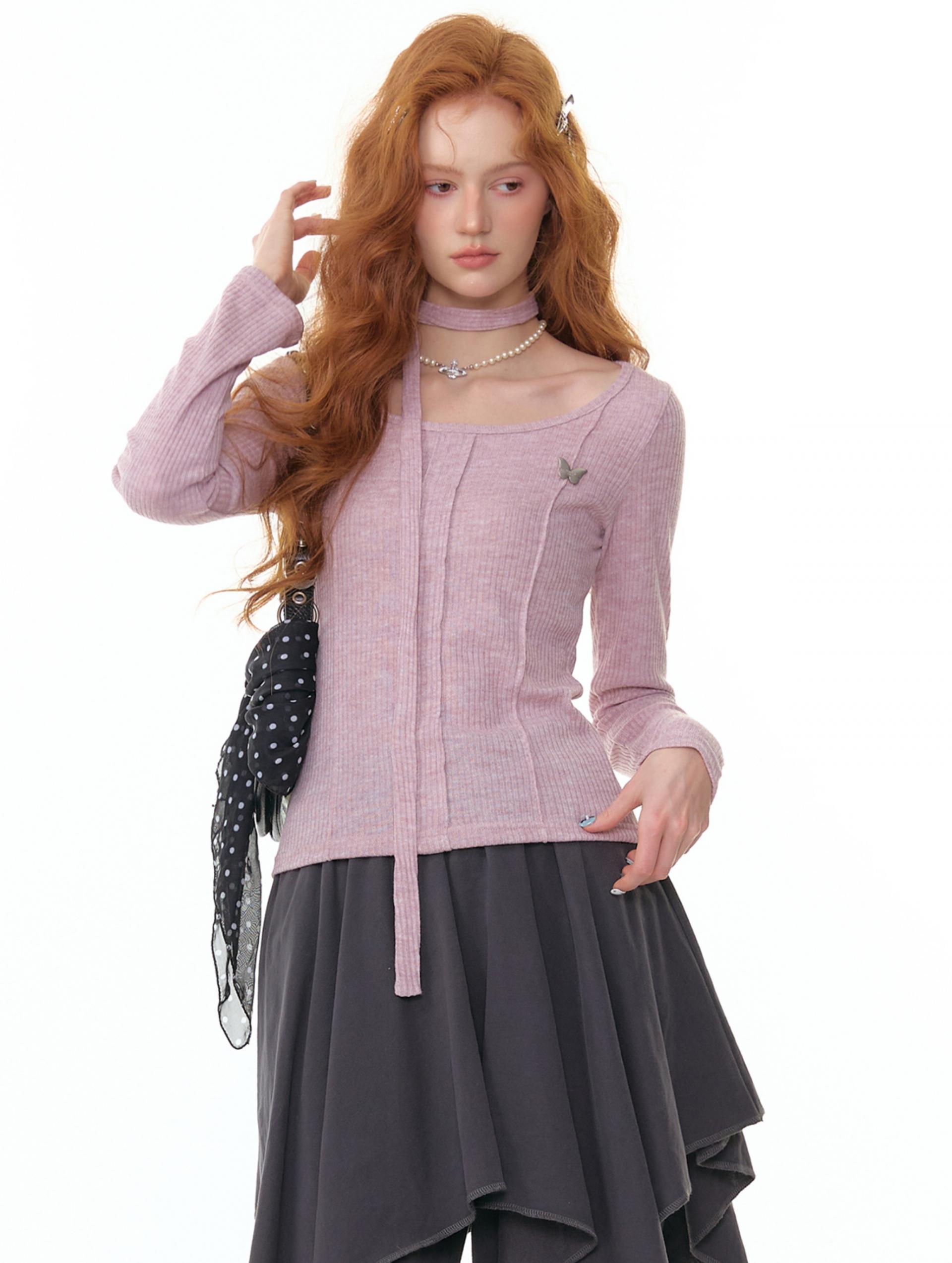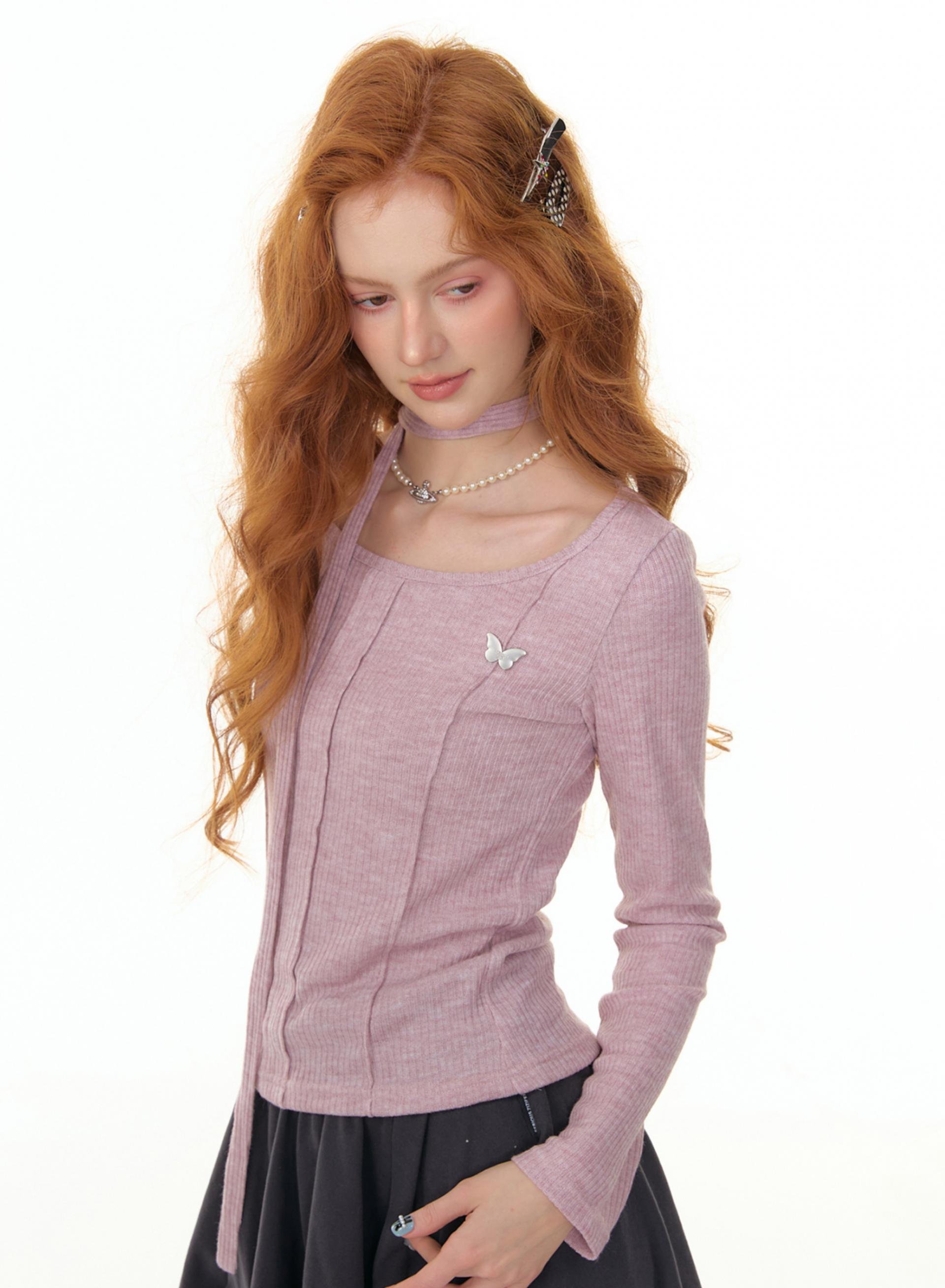 Butterfly Choker Knit Top