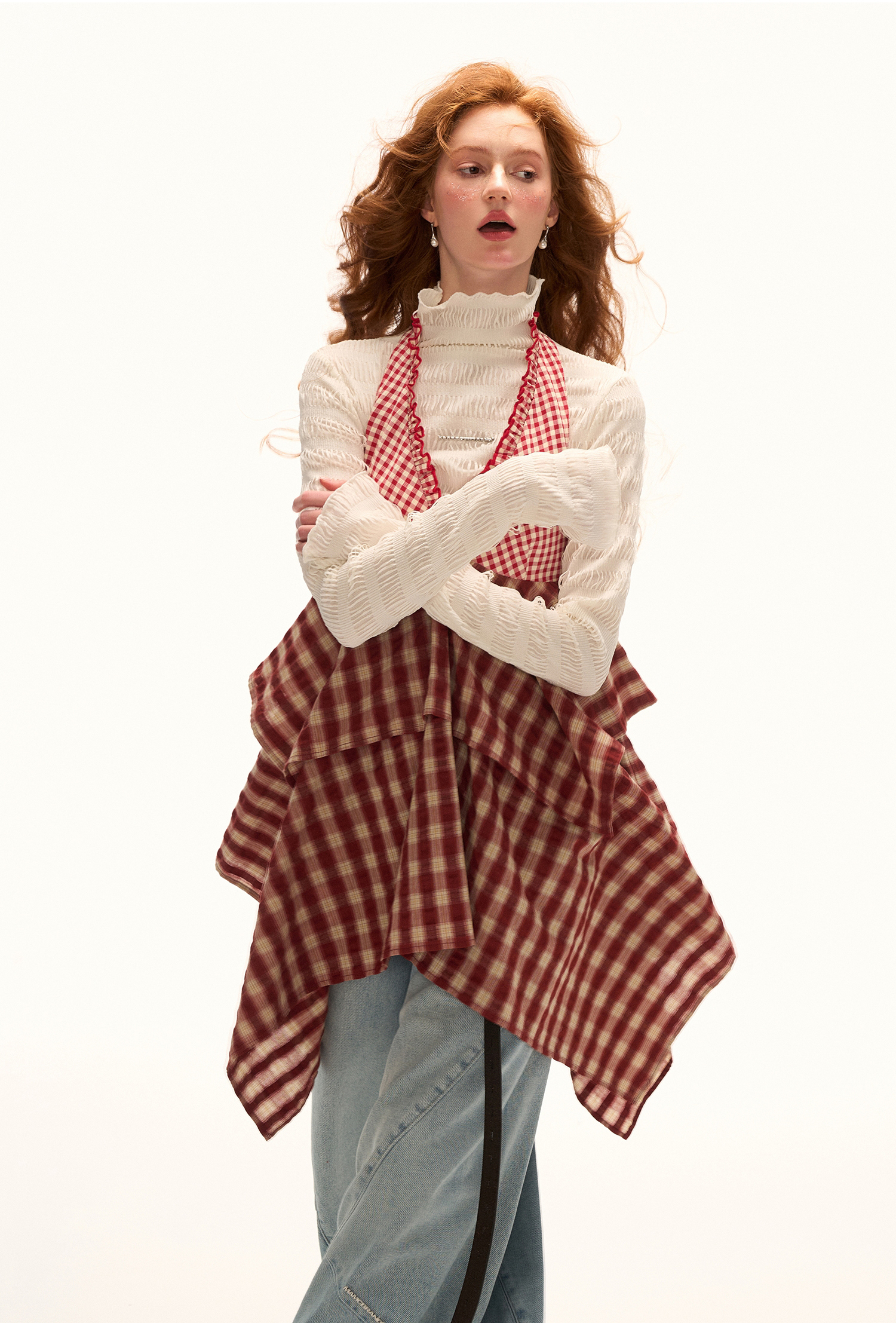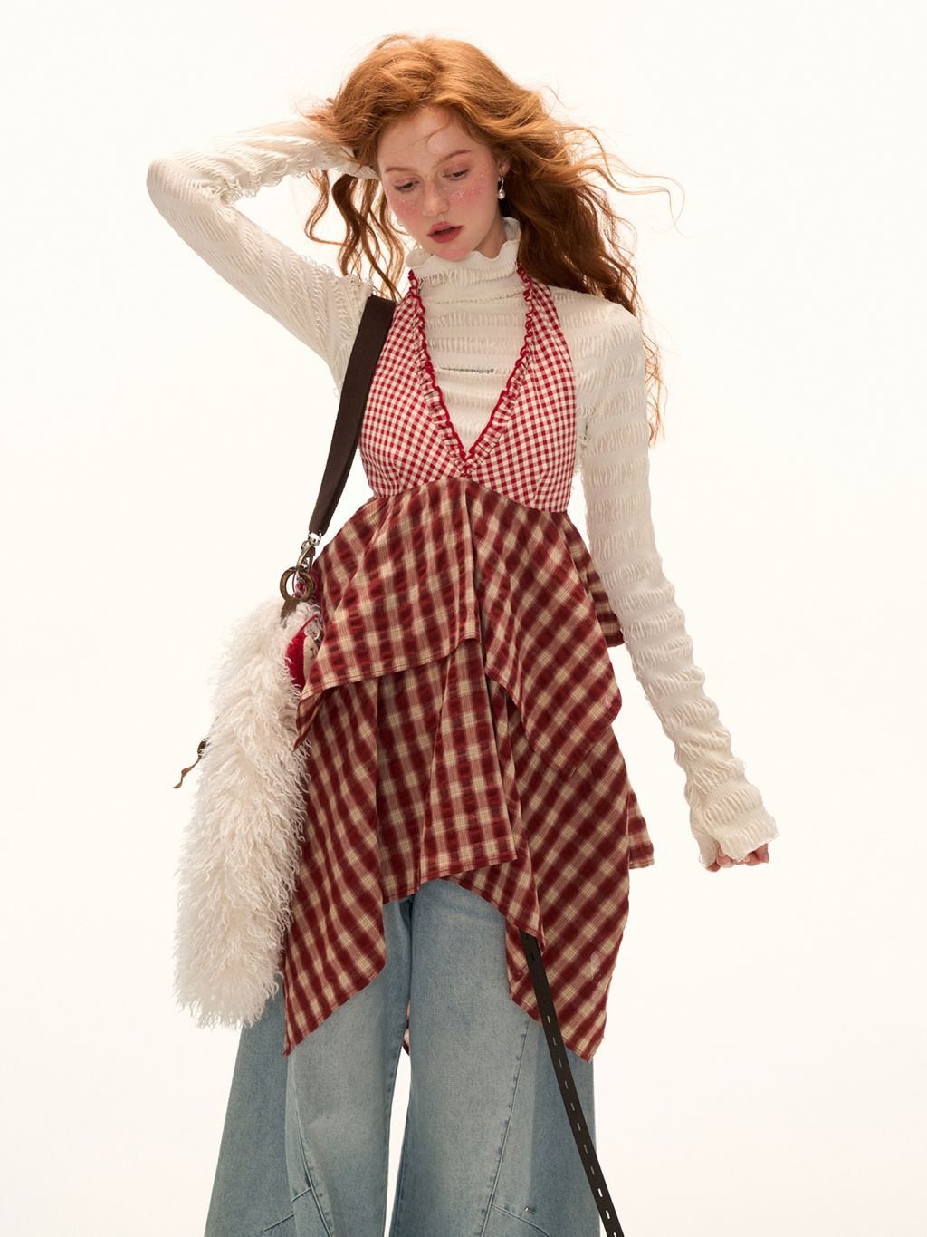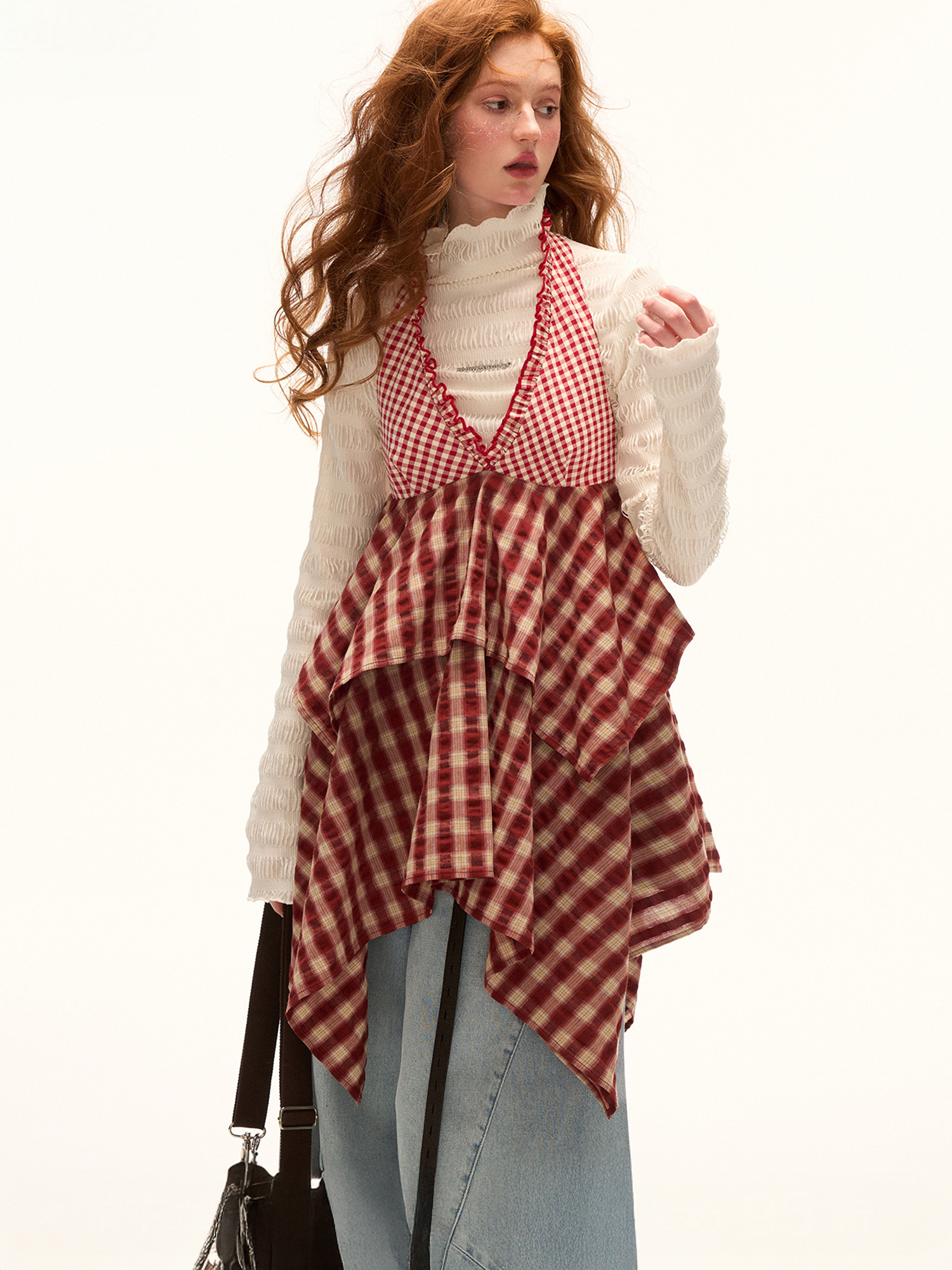 빈티지한 체크 패턴과 핸커치프 헴 디테일이 어우러진 톱으로 레이어드 스타일링에 최적화된 아이템입니다