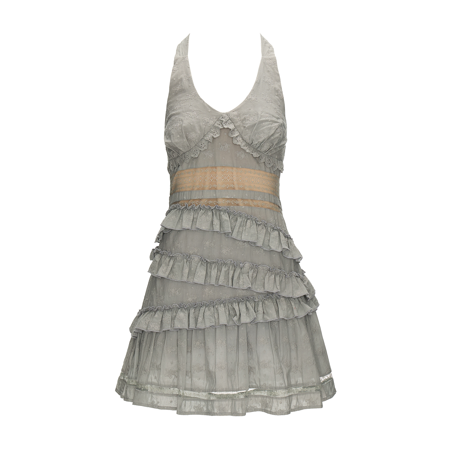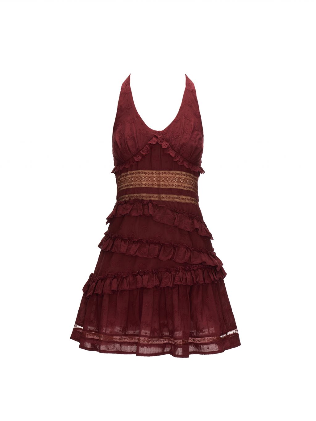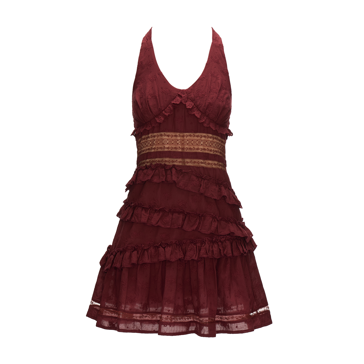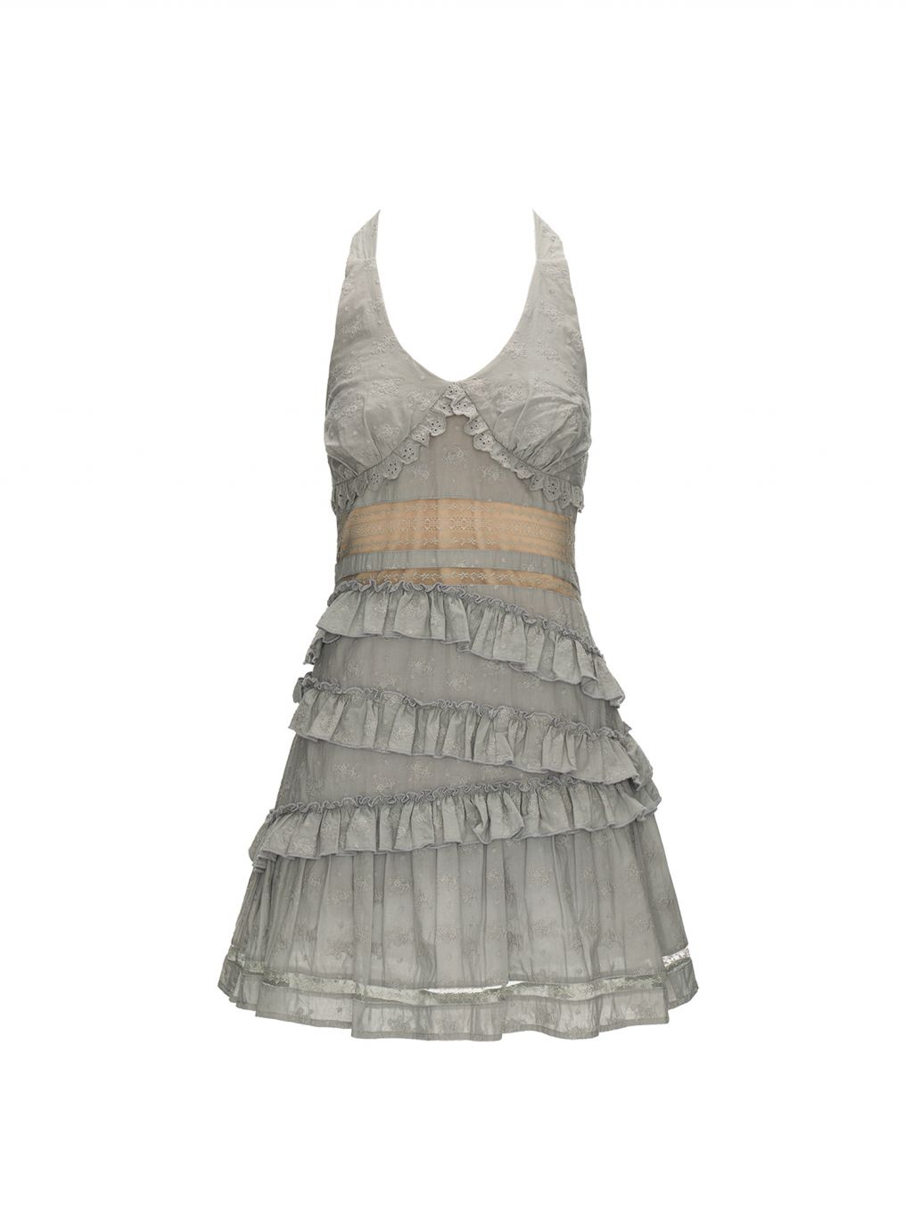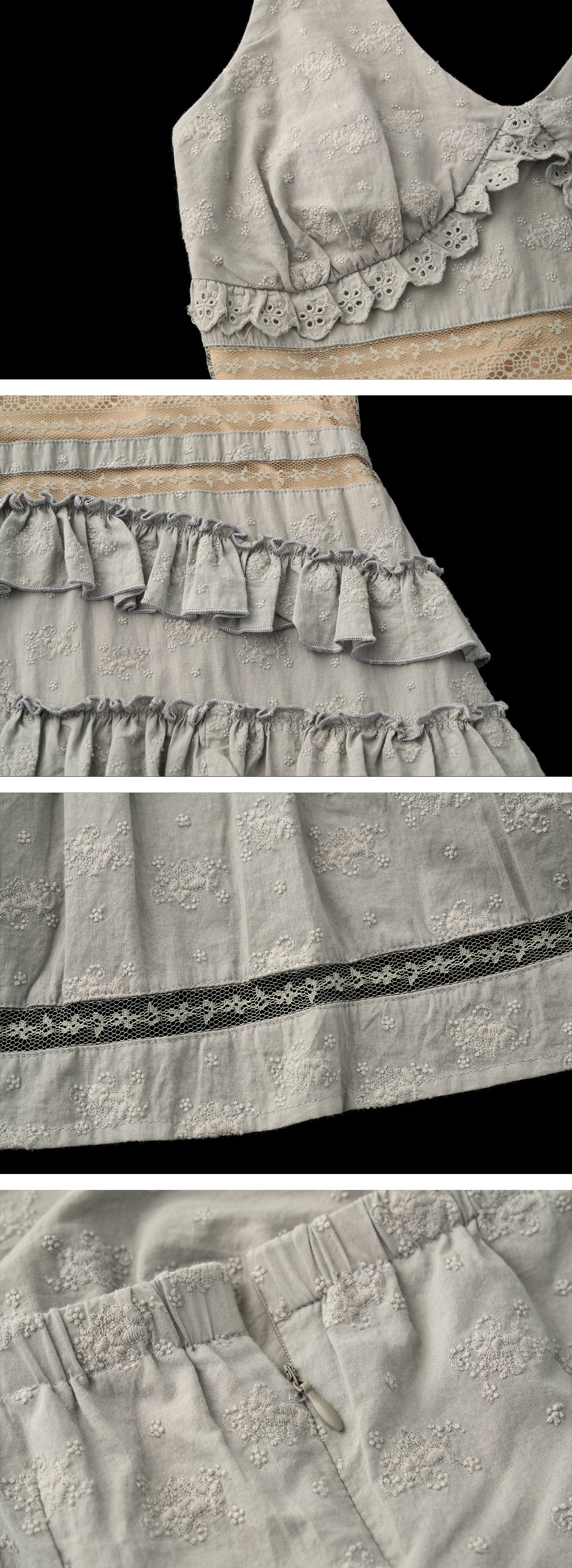 레이스와 프릴이 겹겹이 더해진 티어드 디자인의 미니 드레스로, 로맨틱하면서도 빈티지한 무드를 연출해주는 아이템입니다.