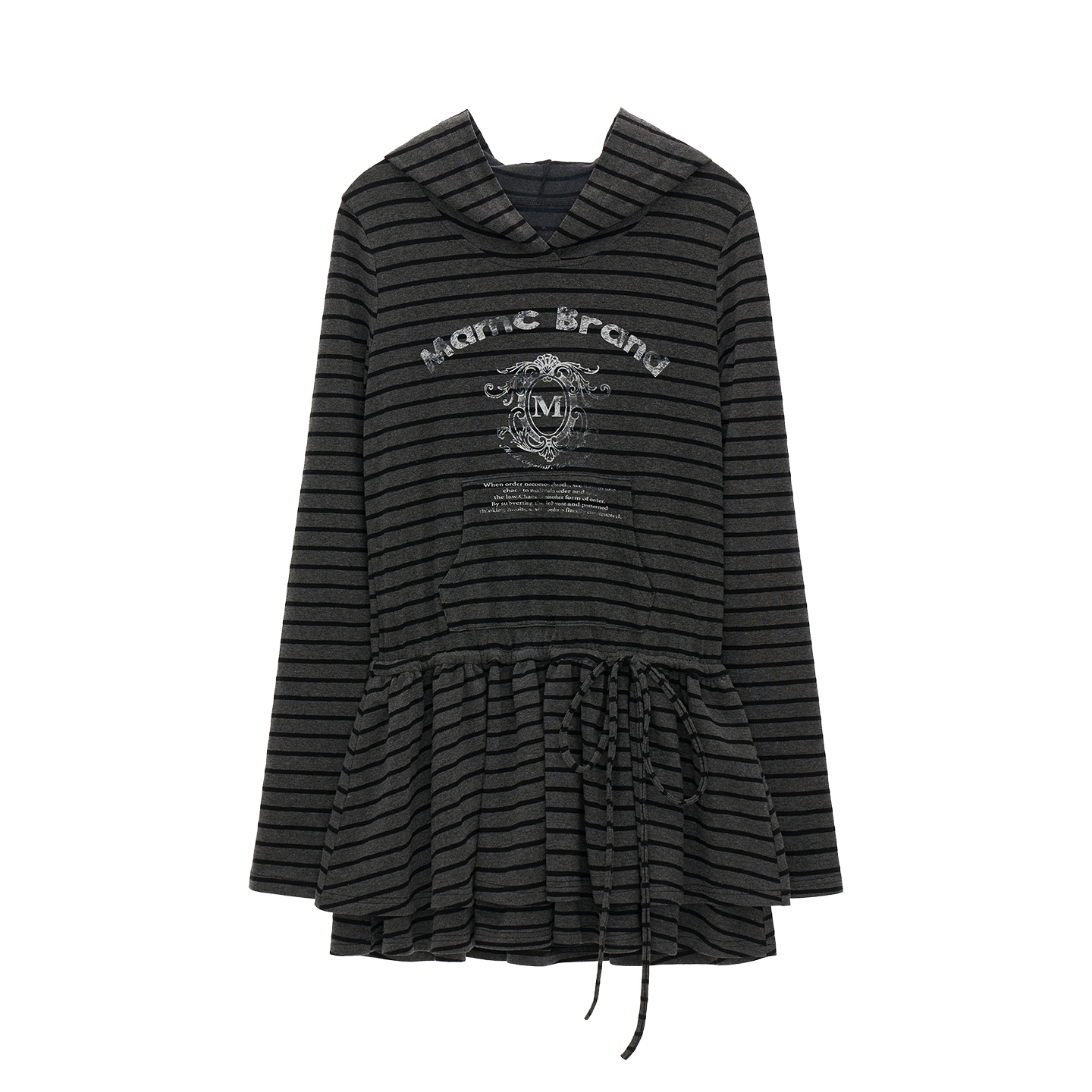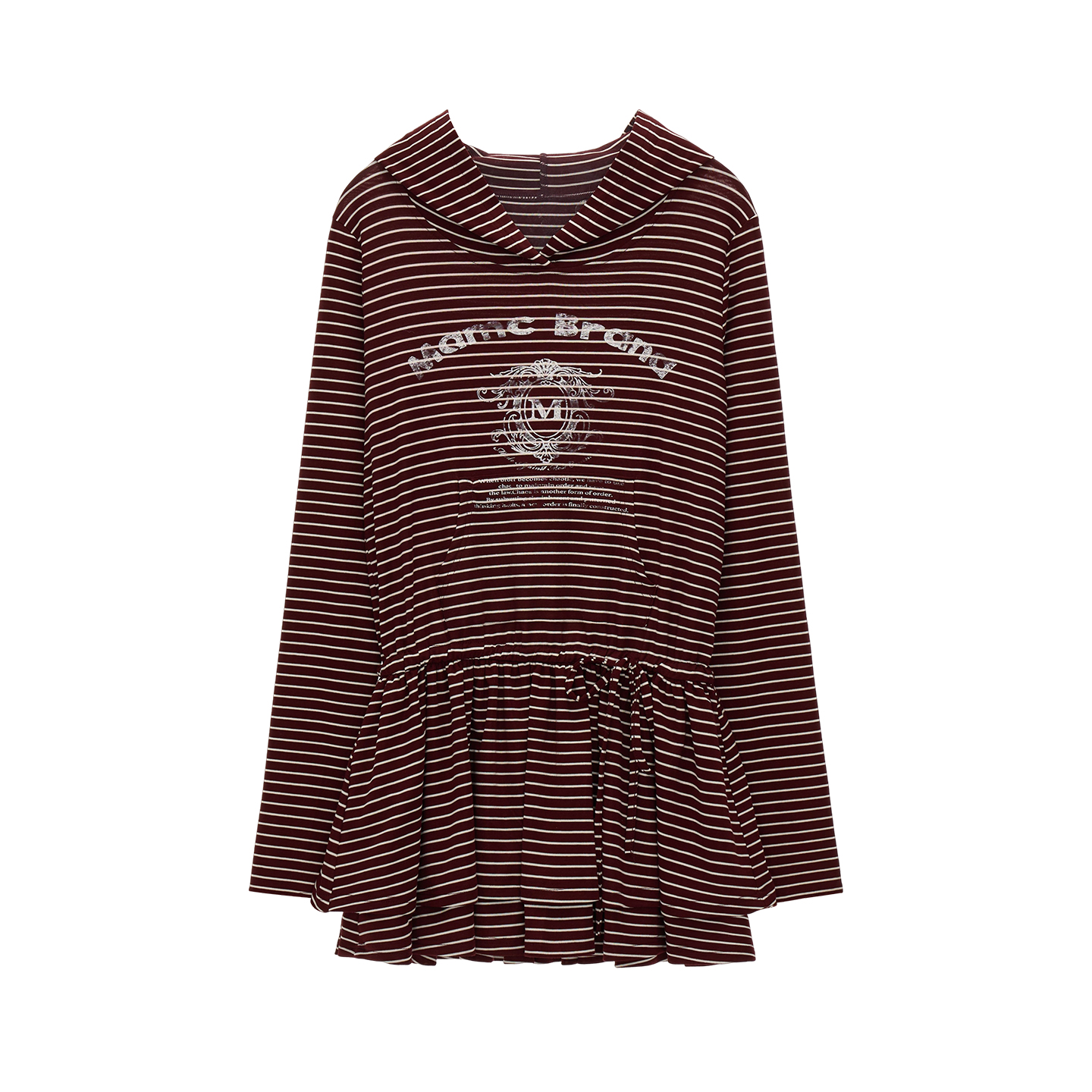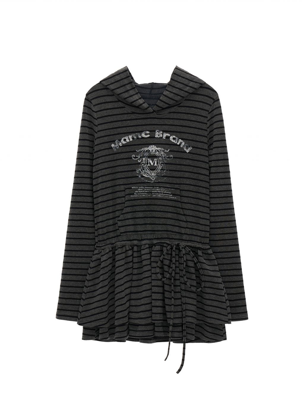 스트라이프 패턴과 후드 디자인이 어우러진 튜닉 톱으로, 캐주얼하면서도 러블리한 무드를 동시에 연출해주는 아이템입니다.