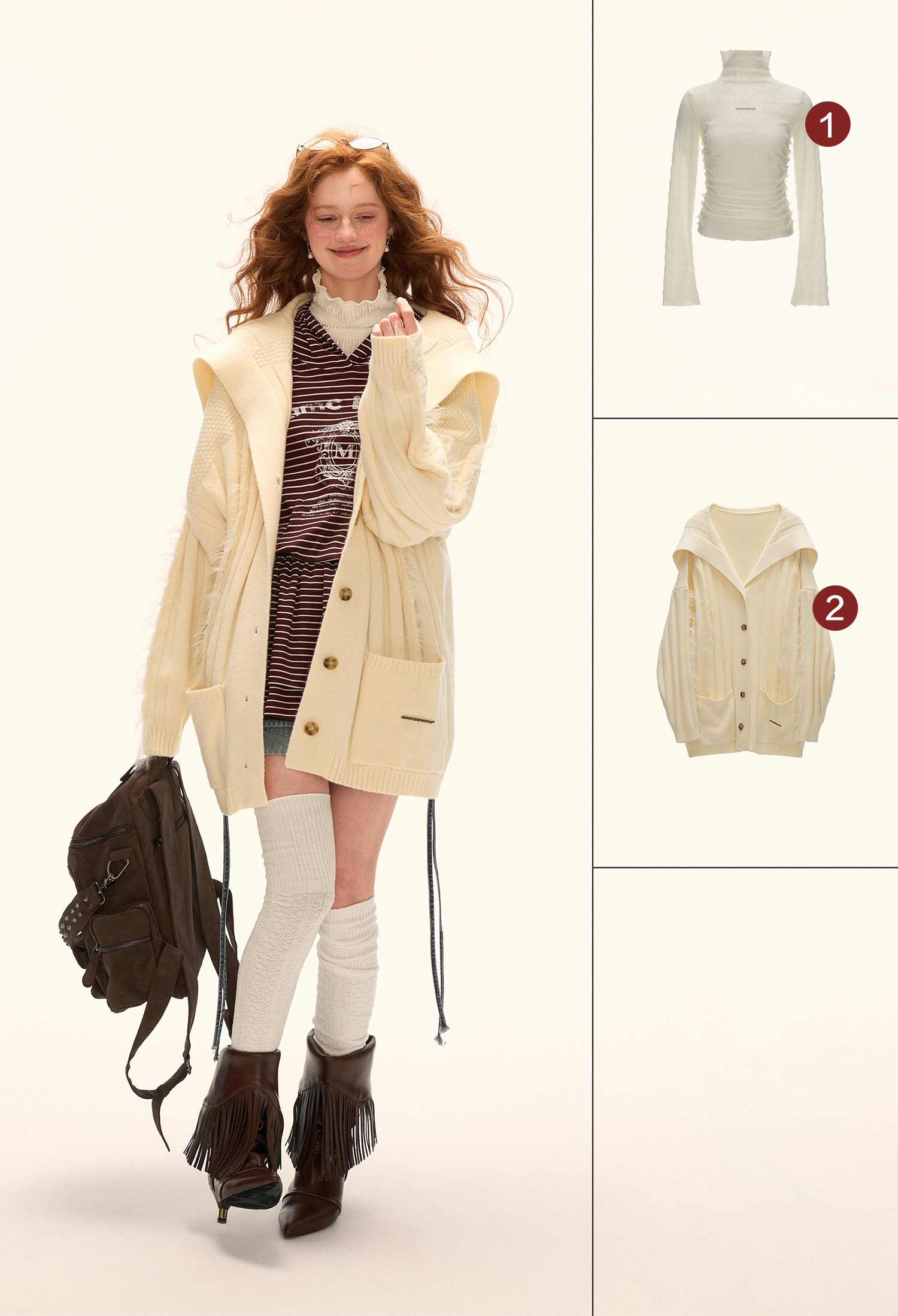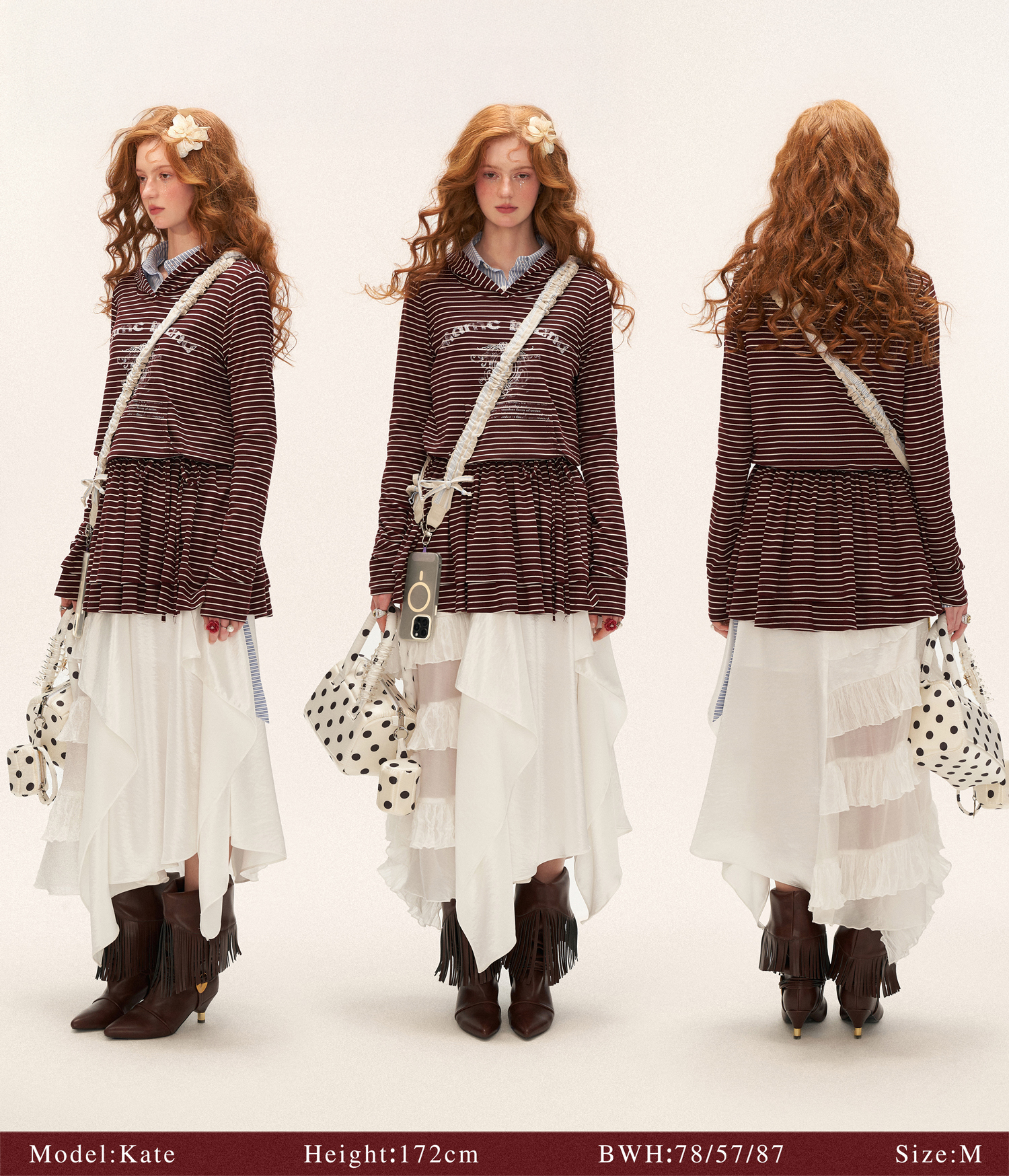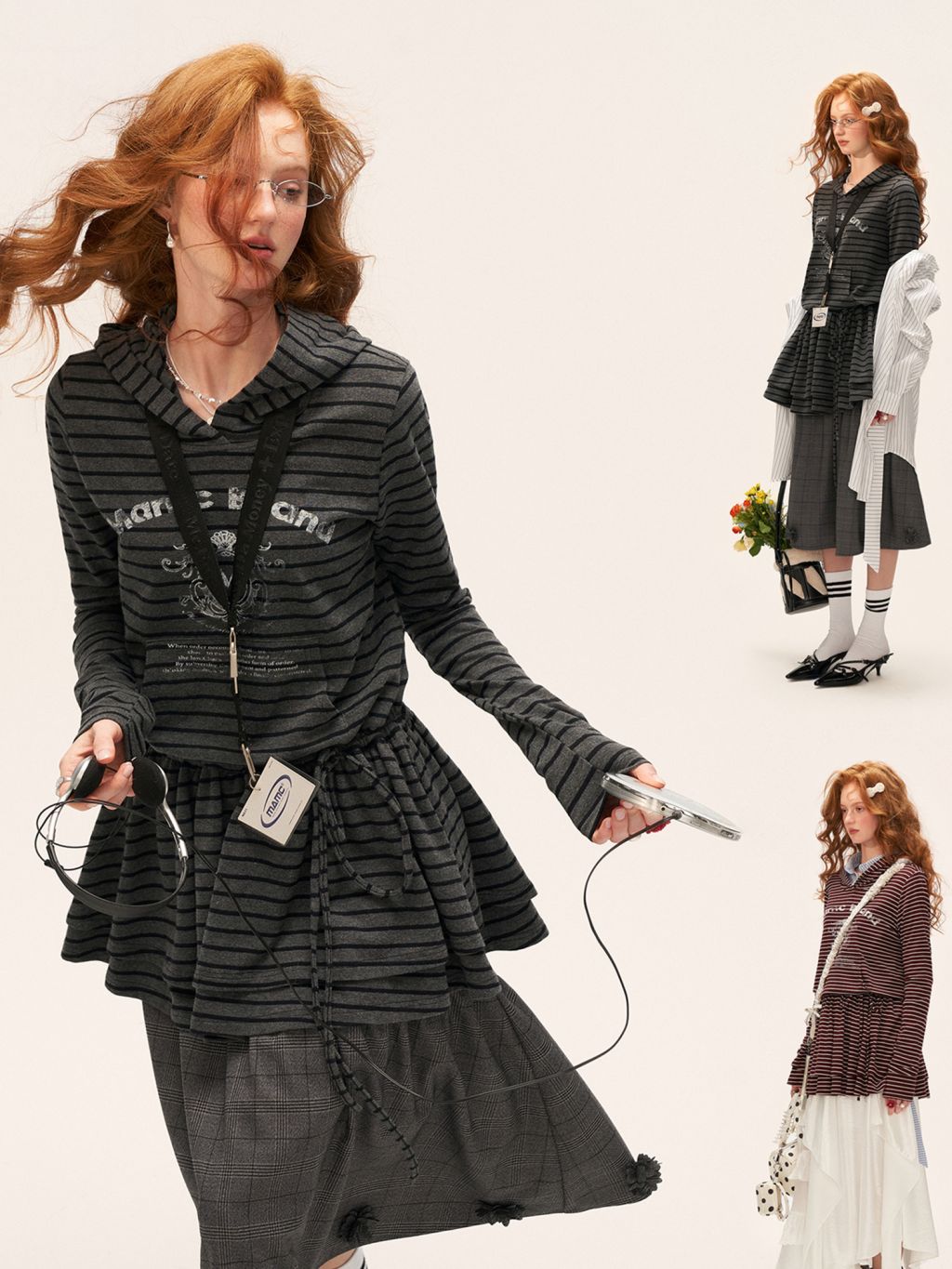 스트라이프 패턴과 후드 디자인이 어우러진 튜닉 톱으로, 캐주얼하면서도 러블리한 무드를 동시에 연출해주는 아이템입니다.
