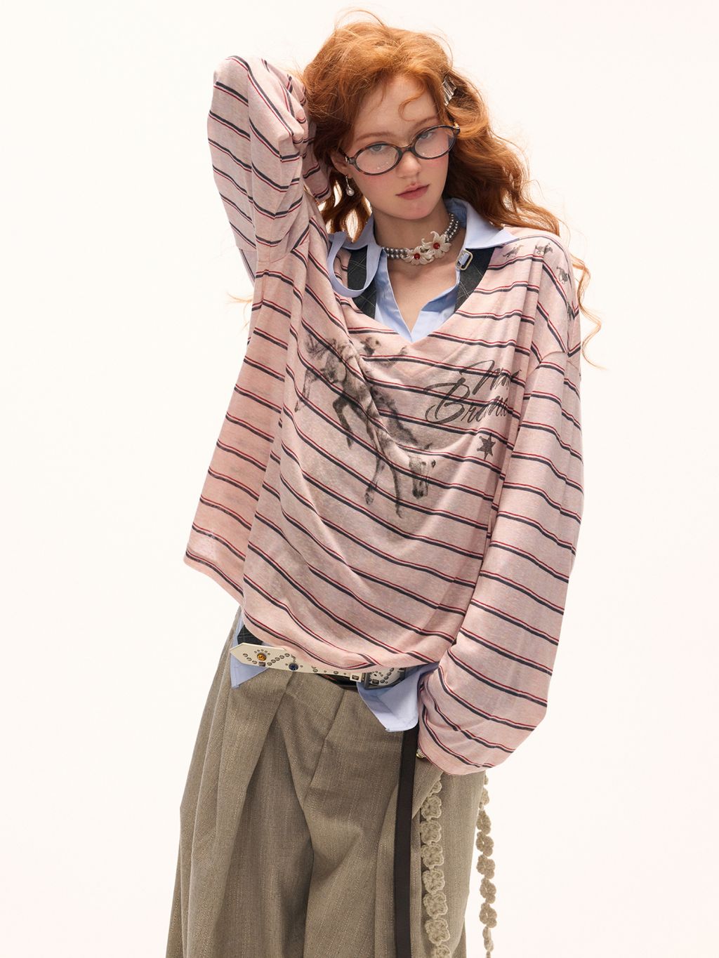 스트라이프 패턴 위에 드로잉 스타일의 말 프린트를 더해 자유로운 무드를 담았으며 루즈한 실루엣으로 편안하면서도 감각적인 스타일을 연출할 수 있습니다.