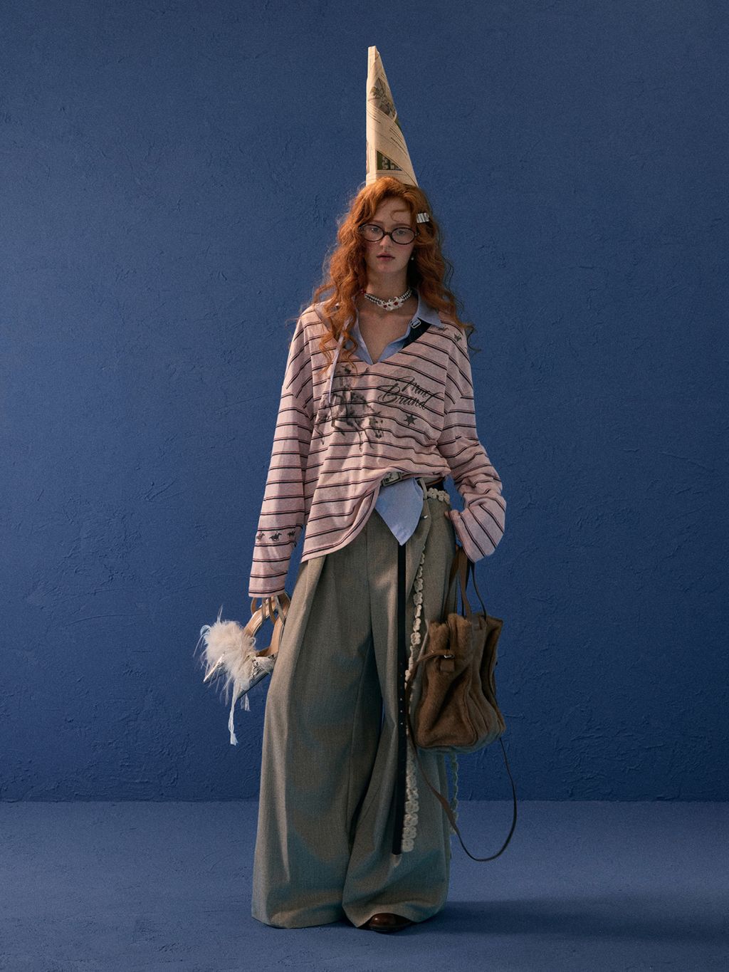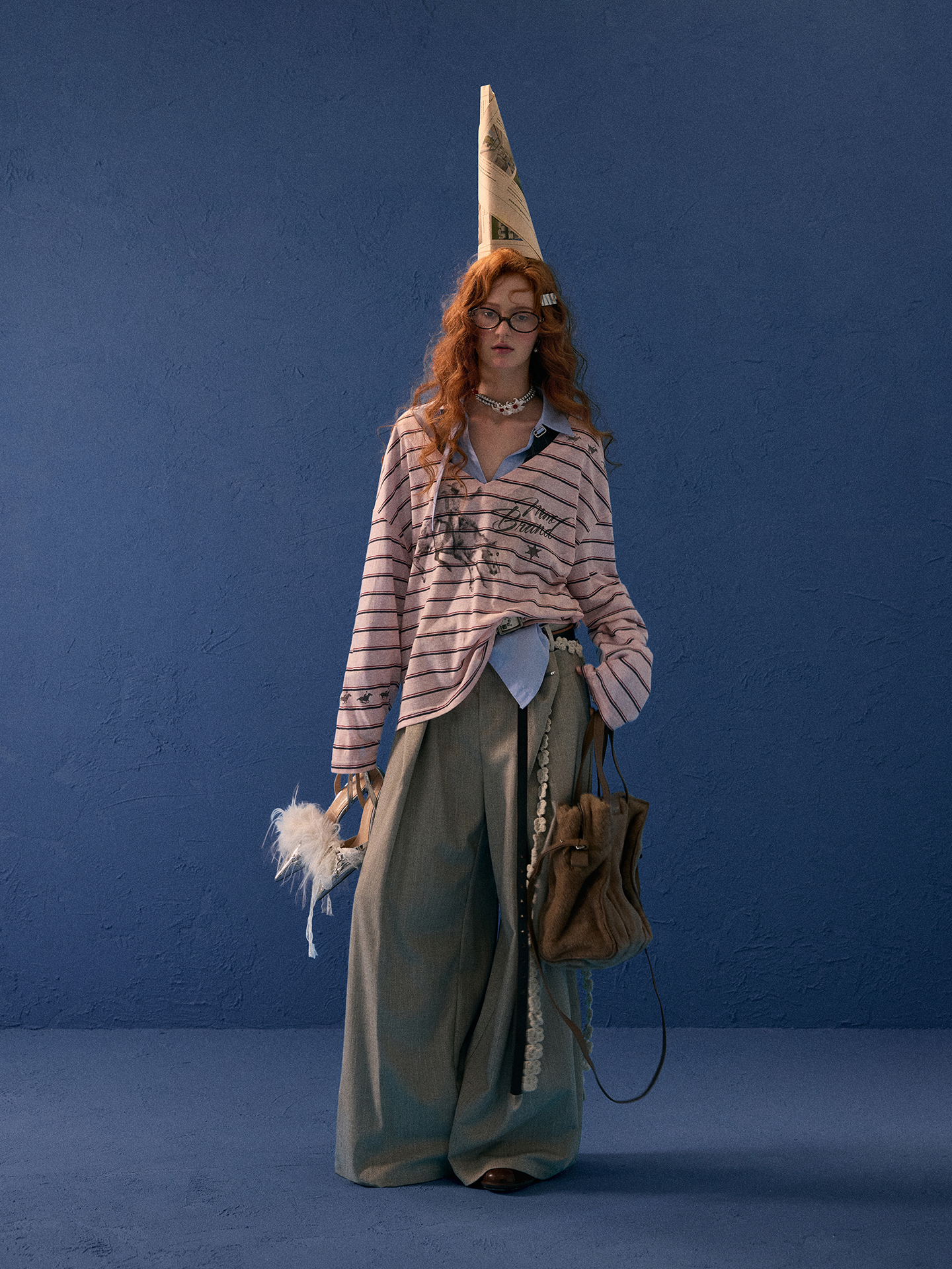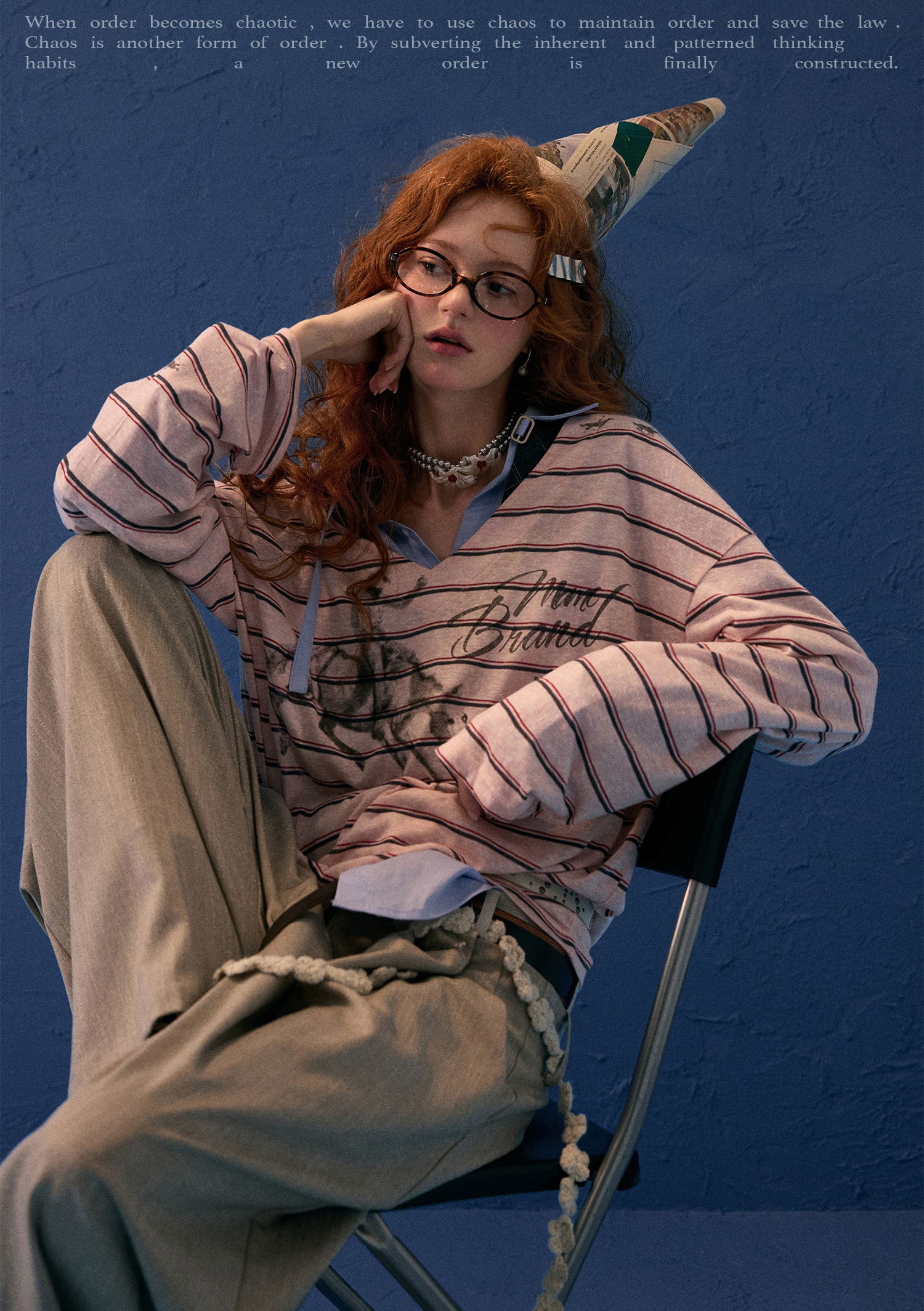 - 스트라이프 패턴과 드로잉 프린트가 조화를 이룬 디자인