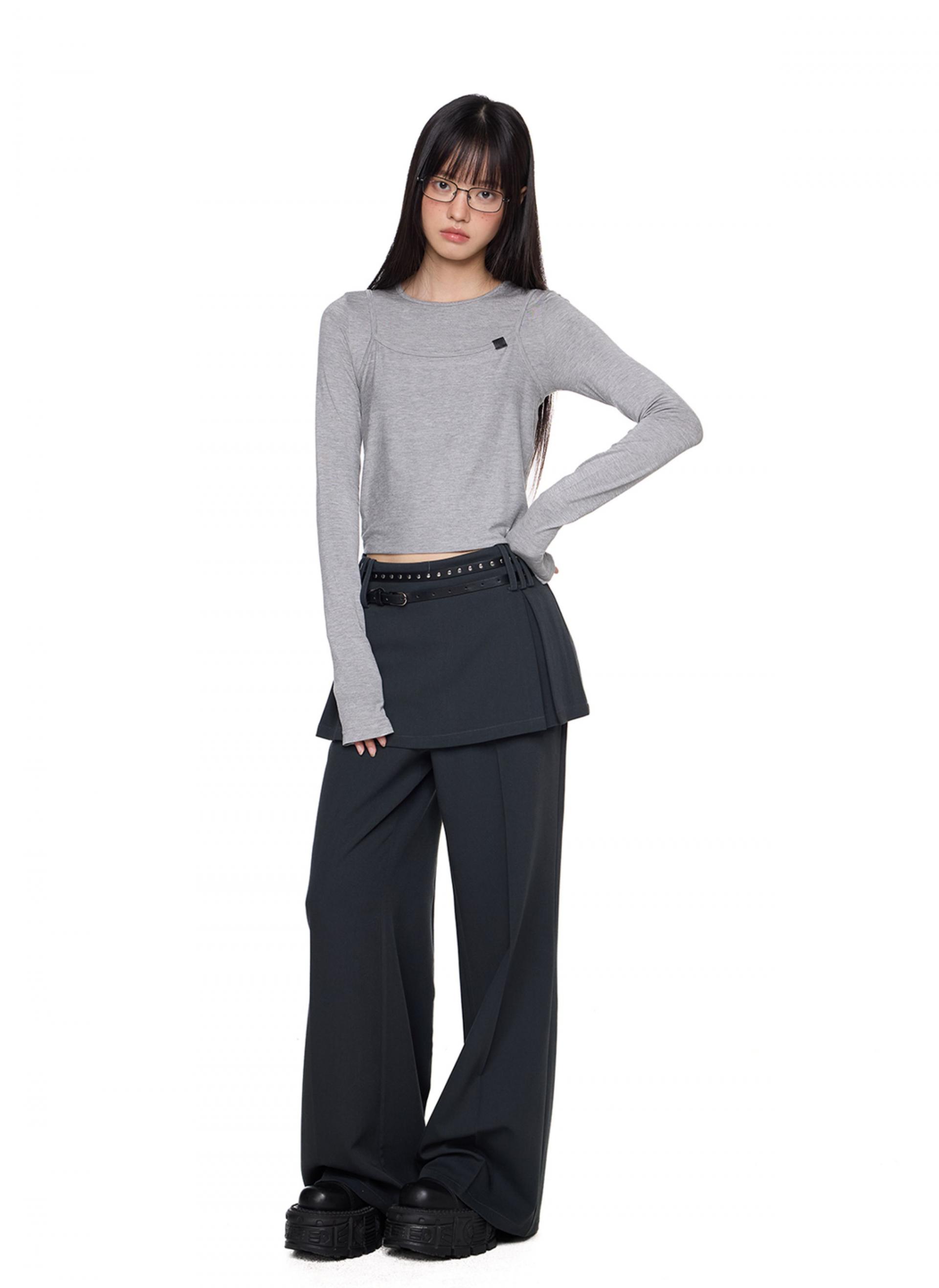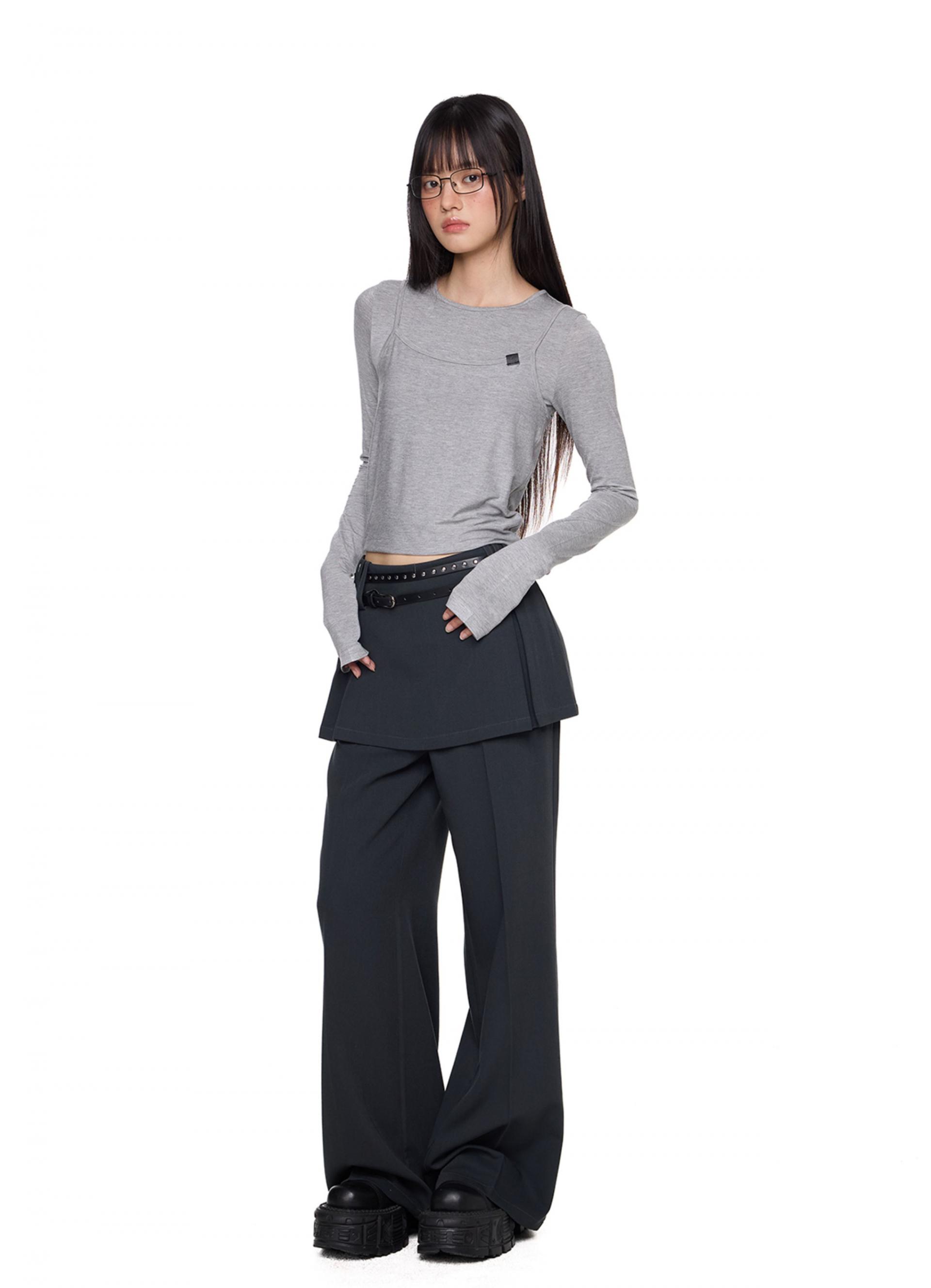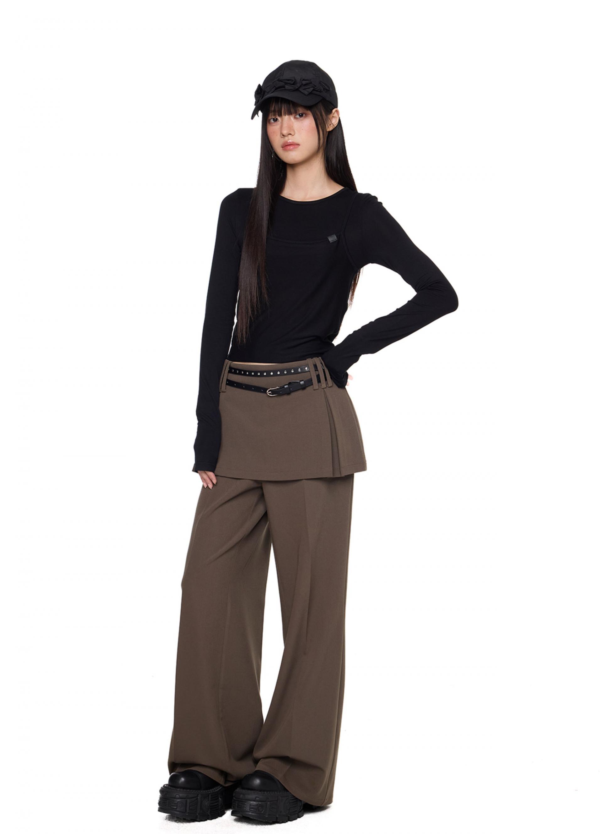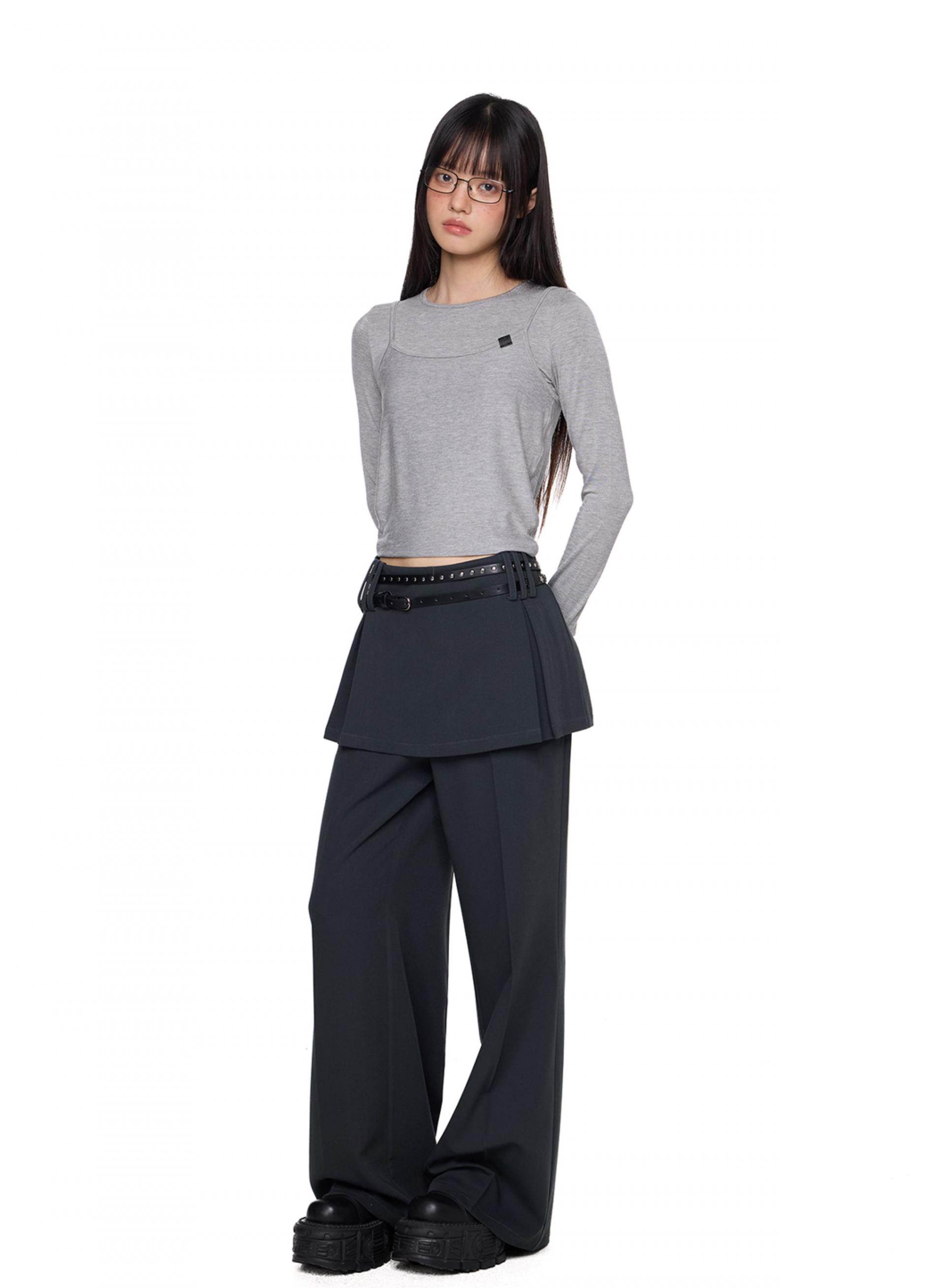Fake Layered Skirt Pants