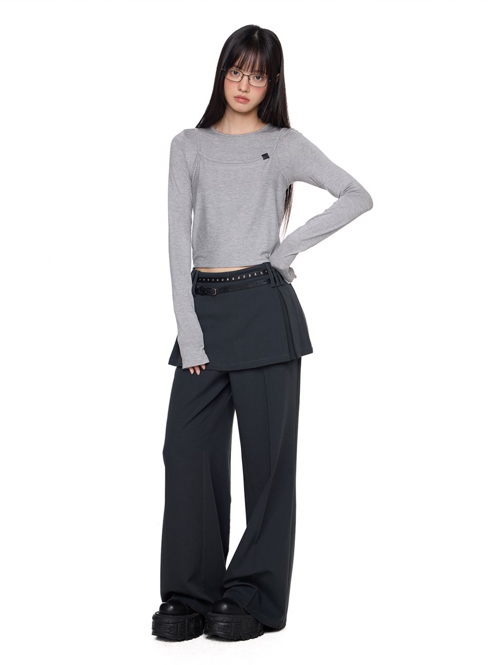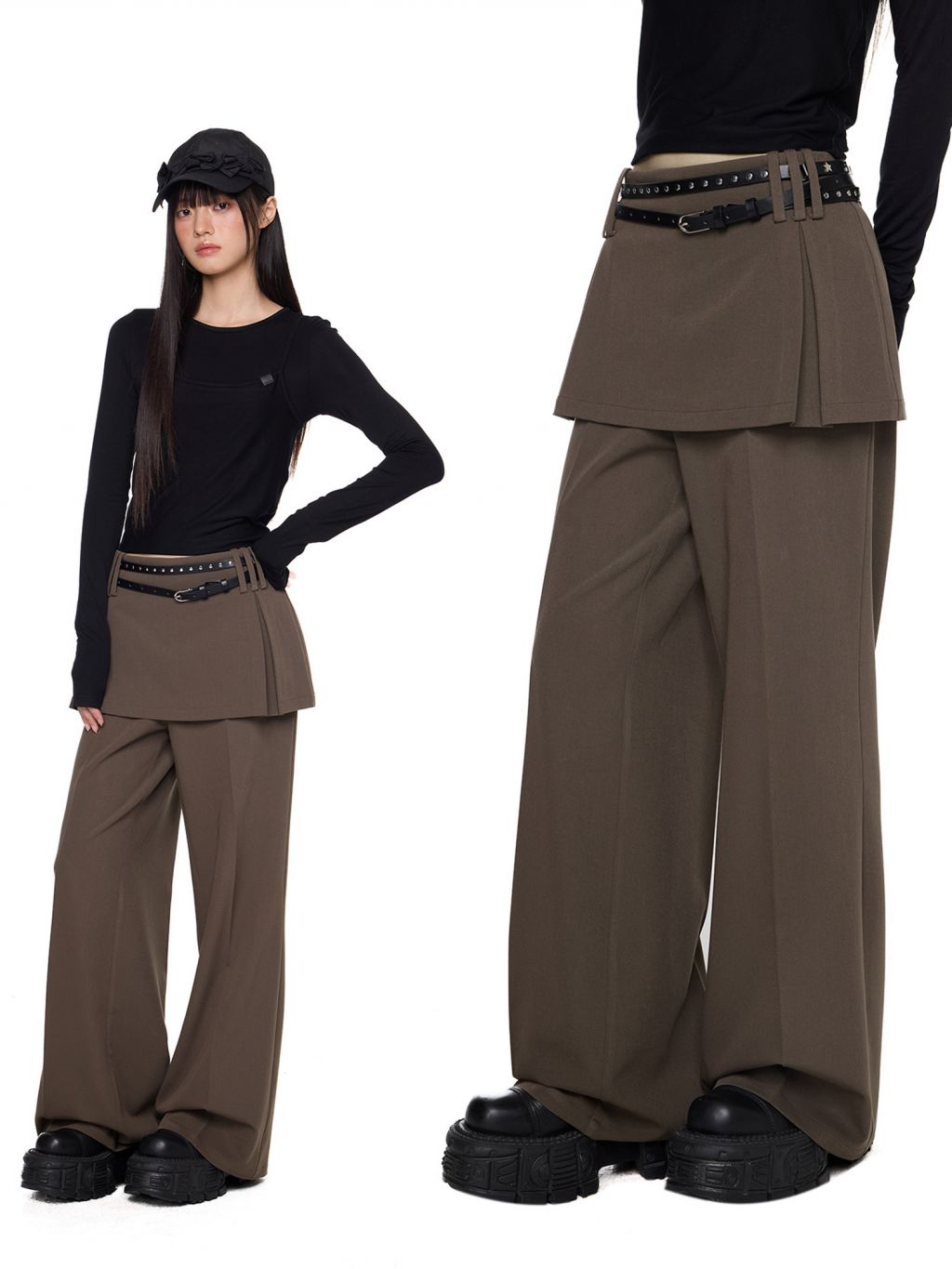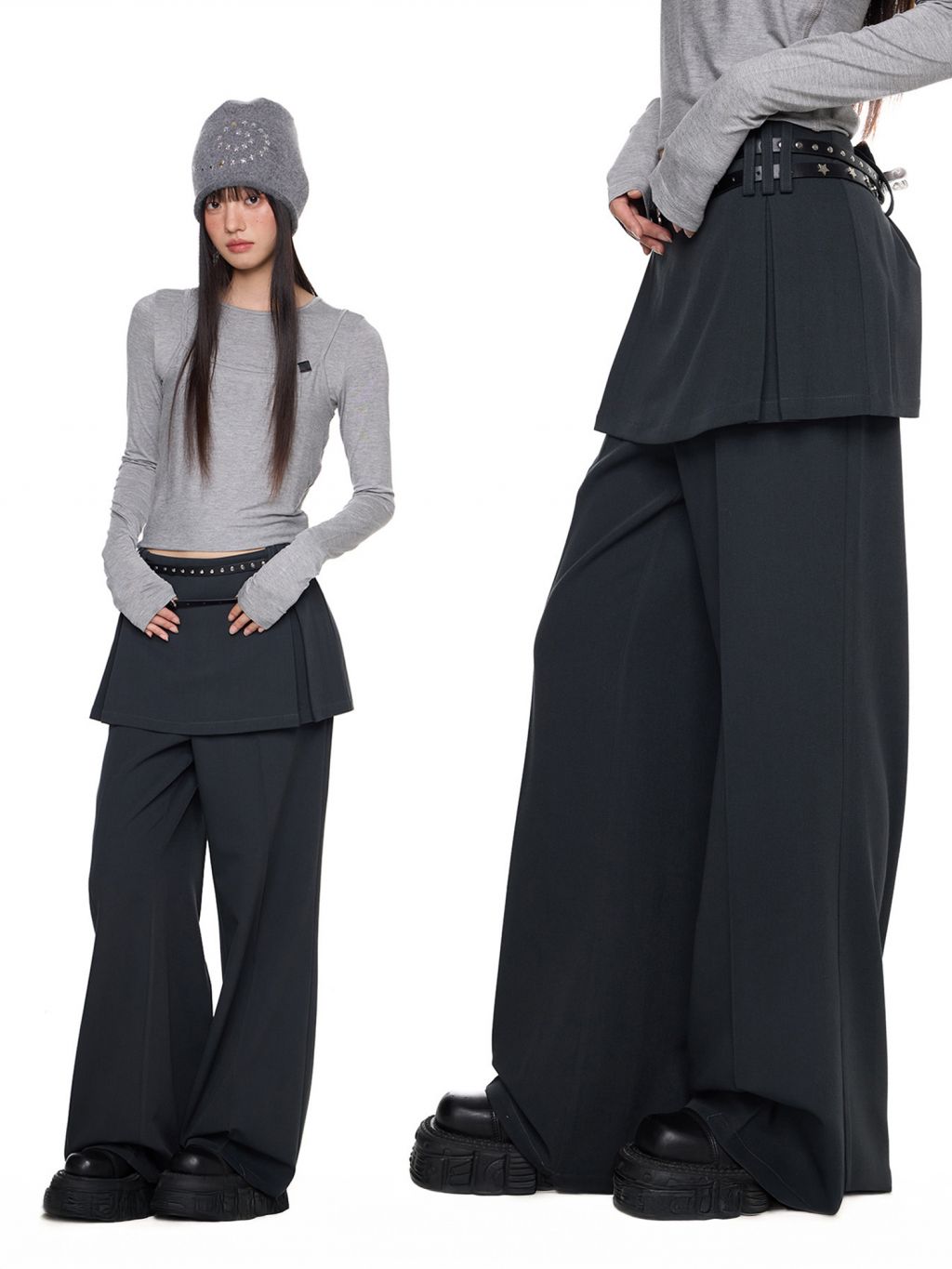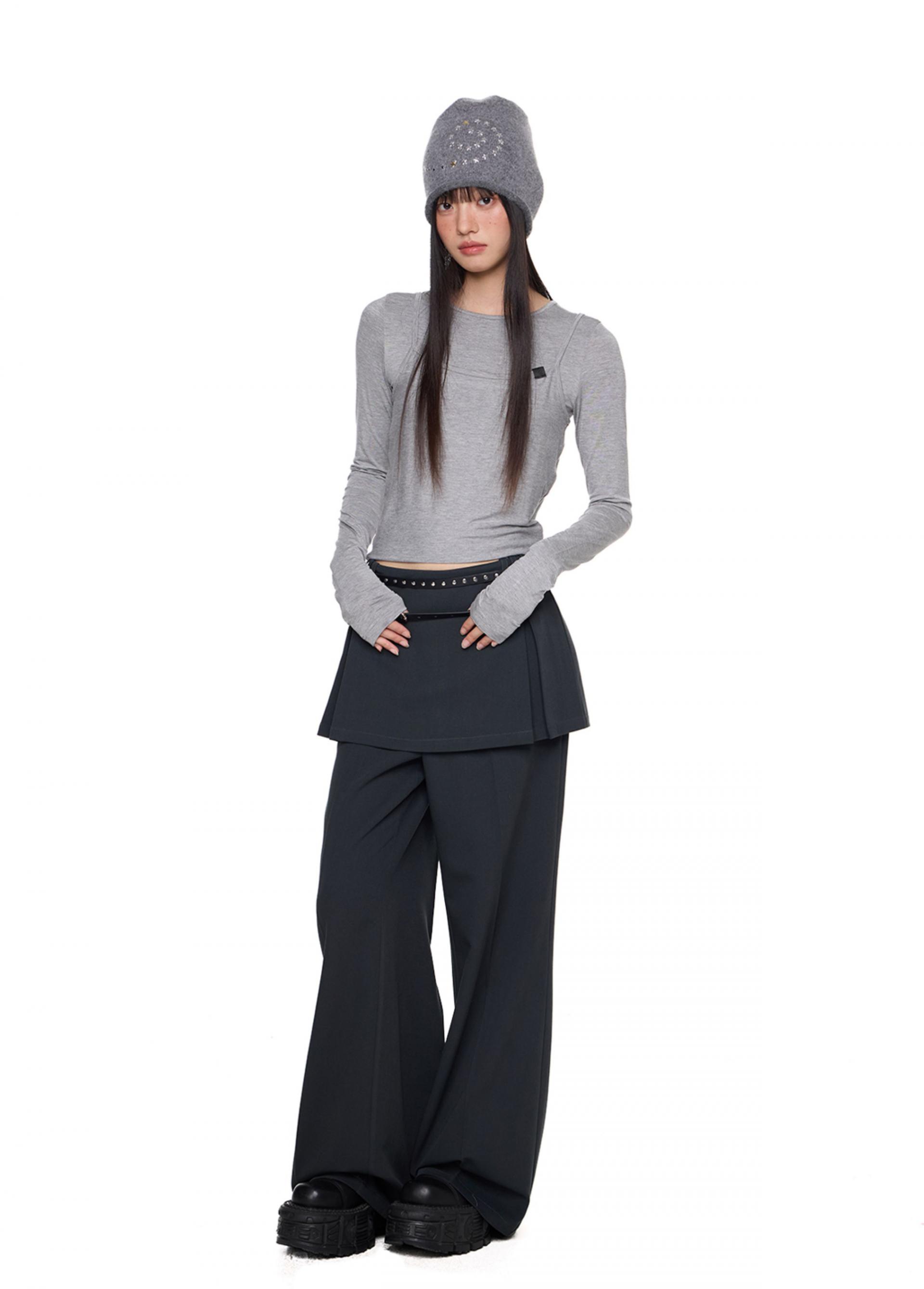 Fake Layered Skirt Pants