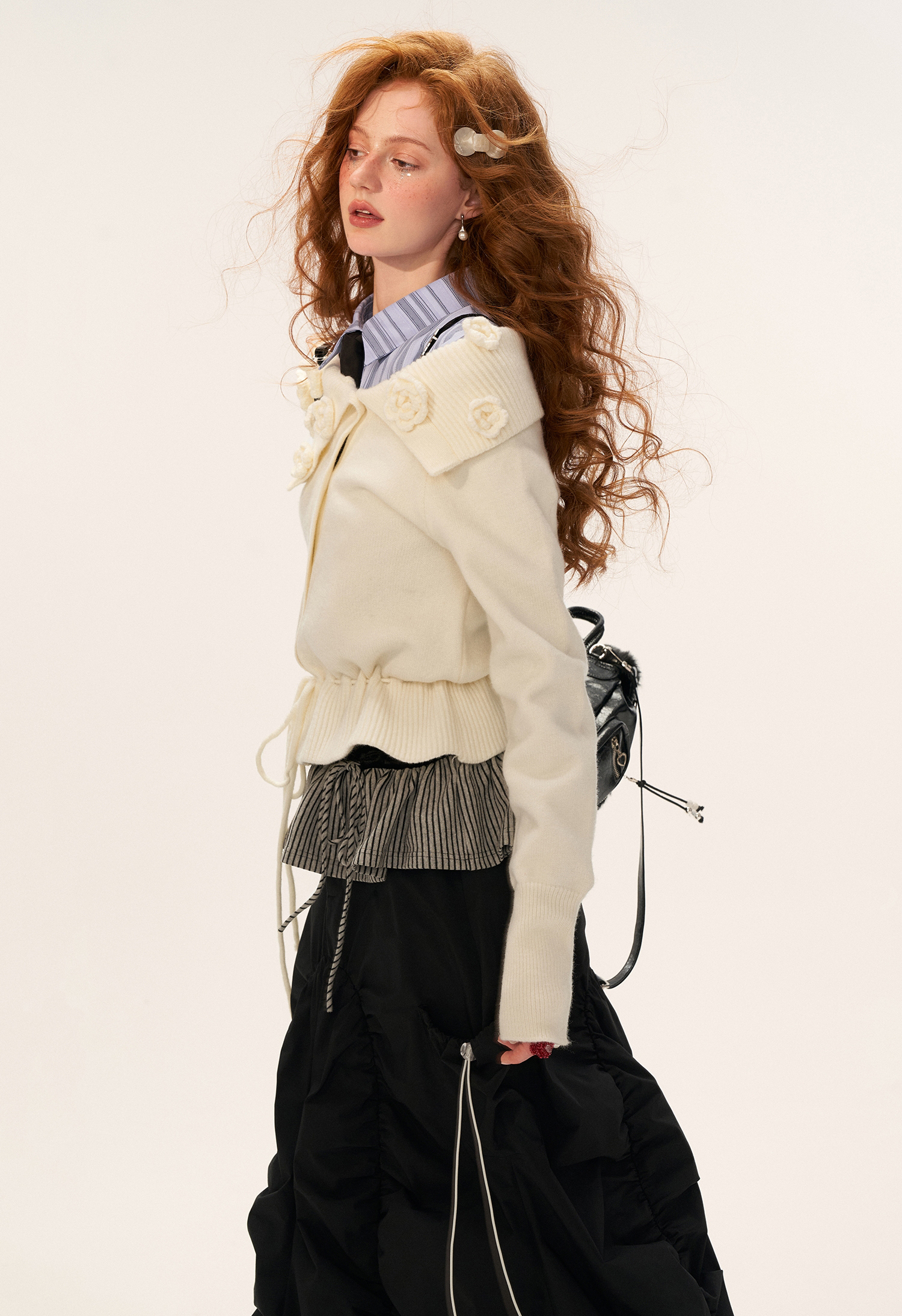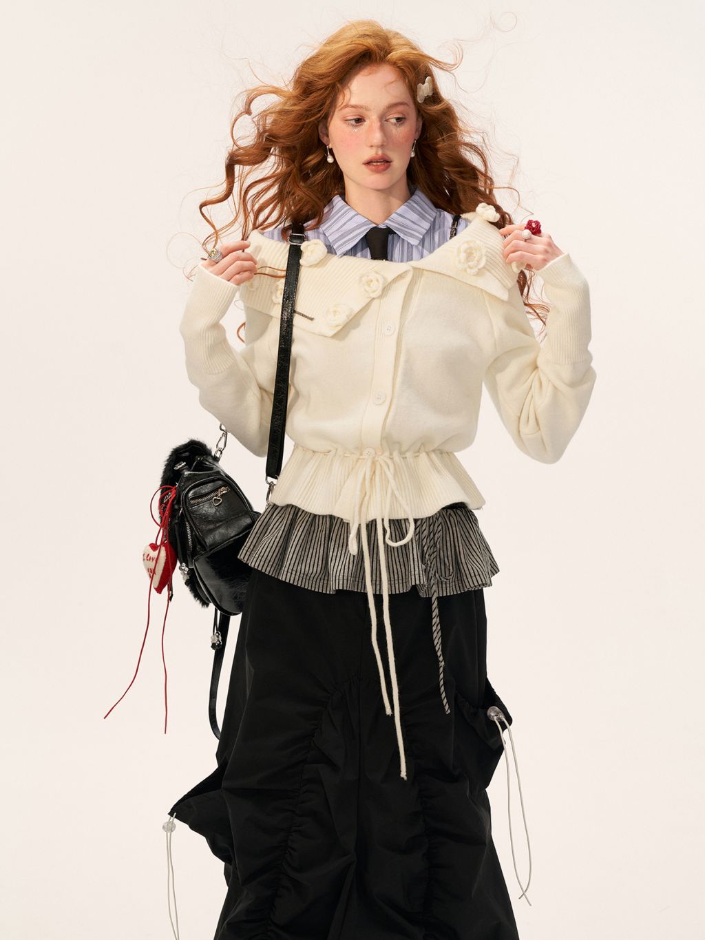 Rose Collar Drawstring Cardigan