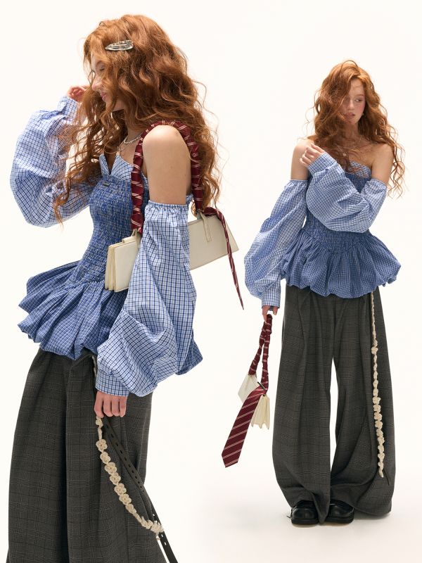 - 바스트와 소매에 아가일 체크 자수 포인트