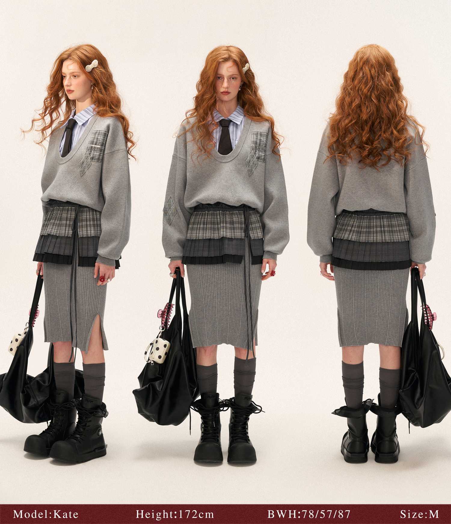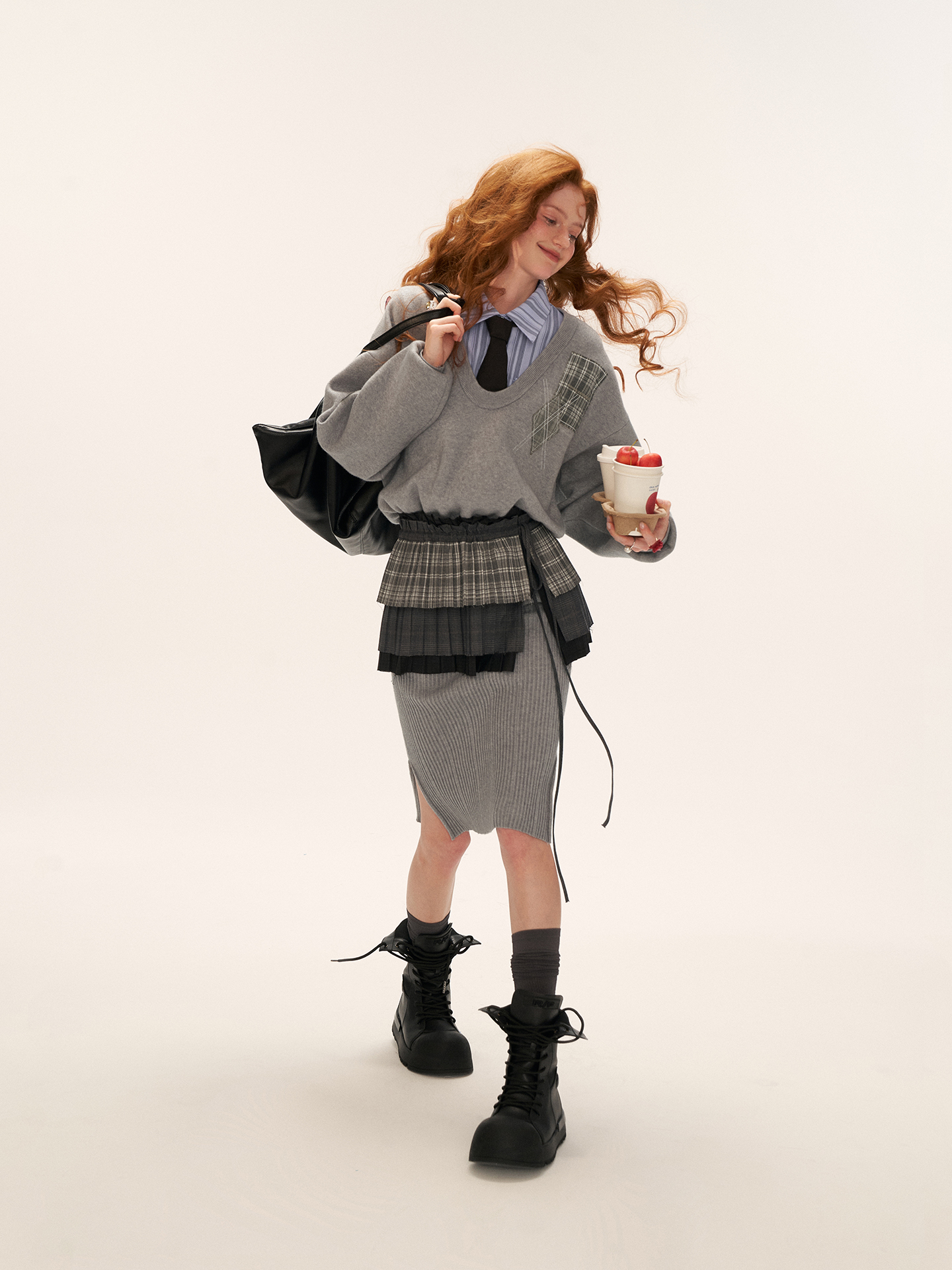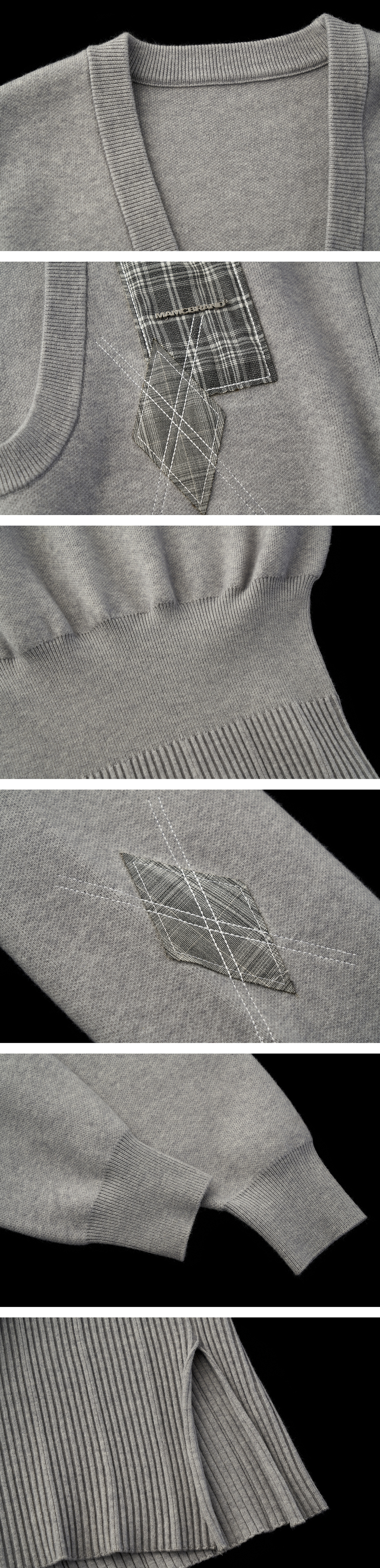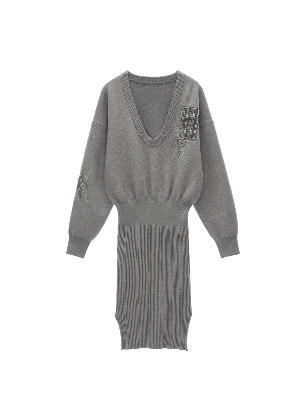 아가일 체크 포인트와 리브드 조직으로 클래식하면서도 슬림한 실루엣을 완성한 니트 원피스입니다.