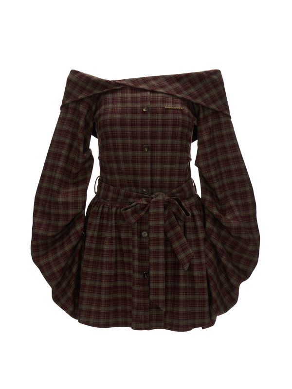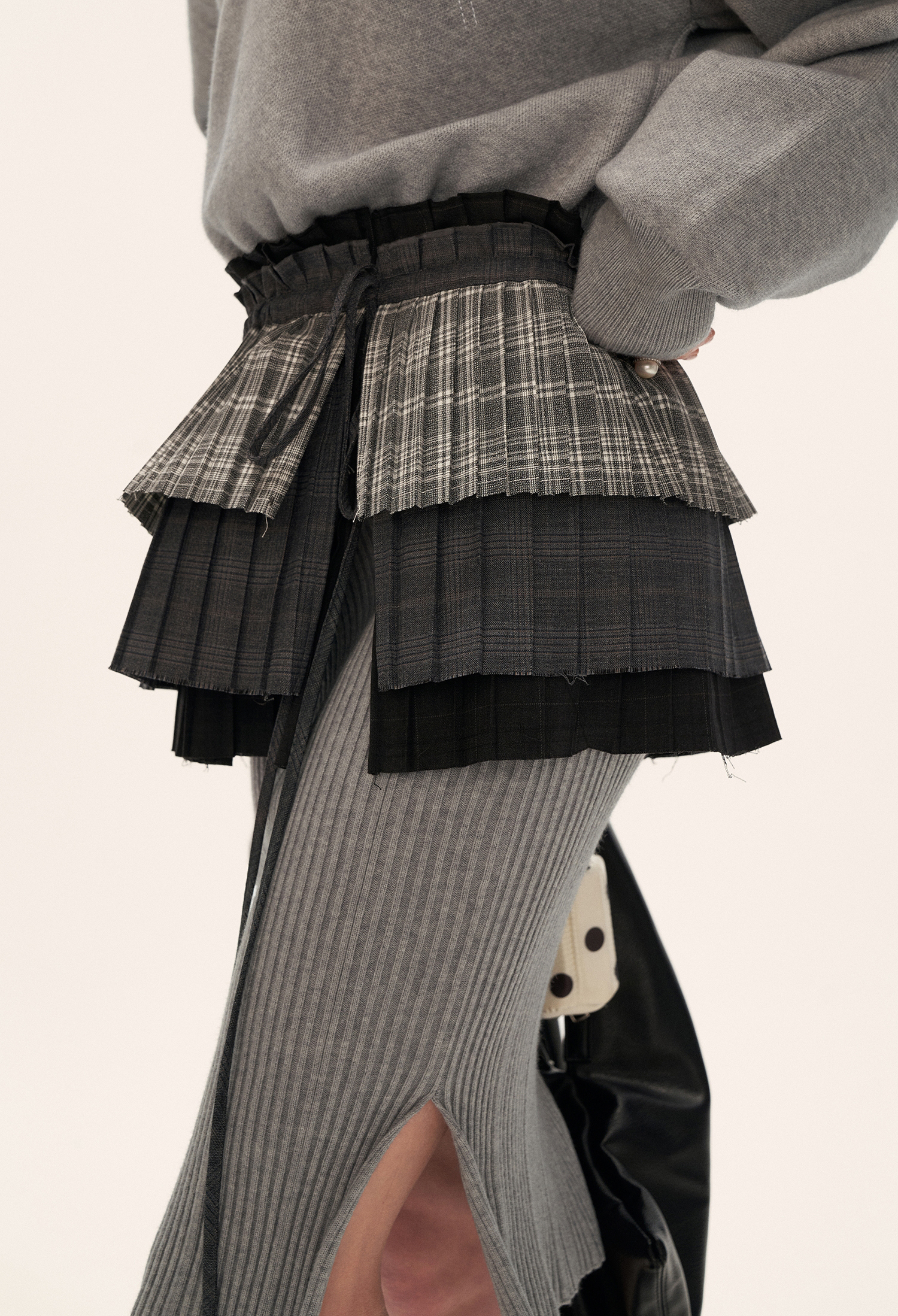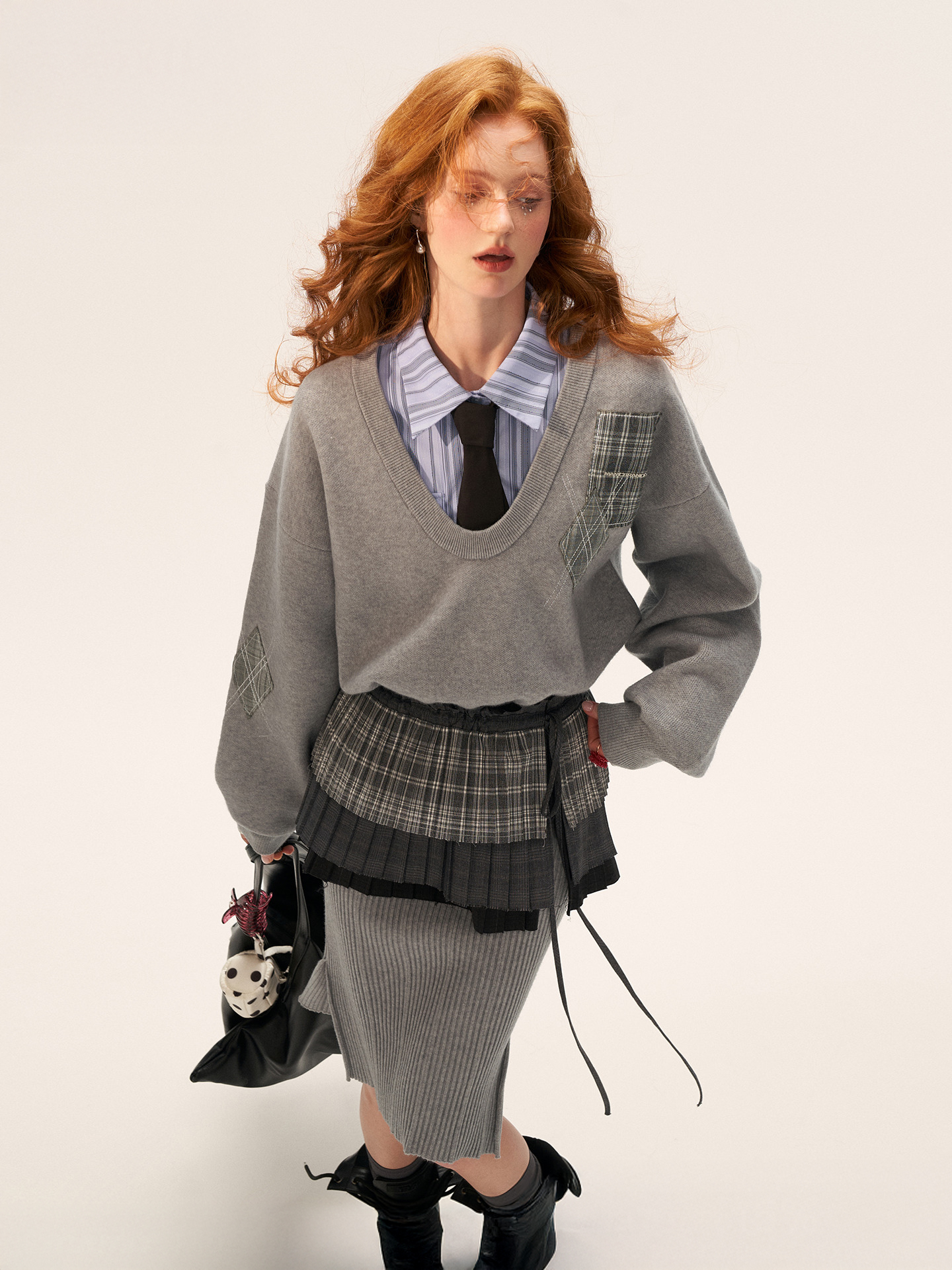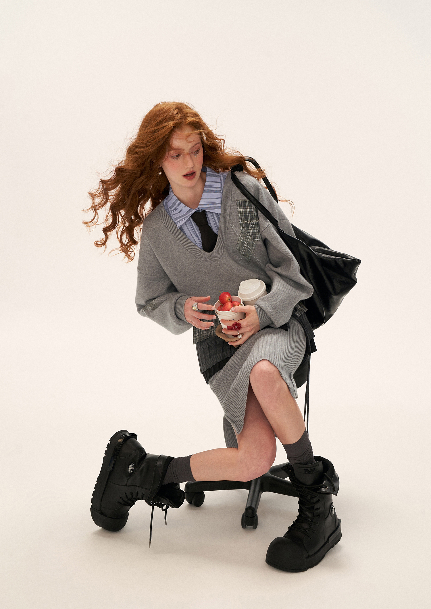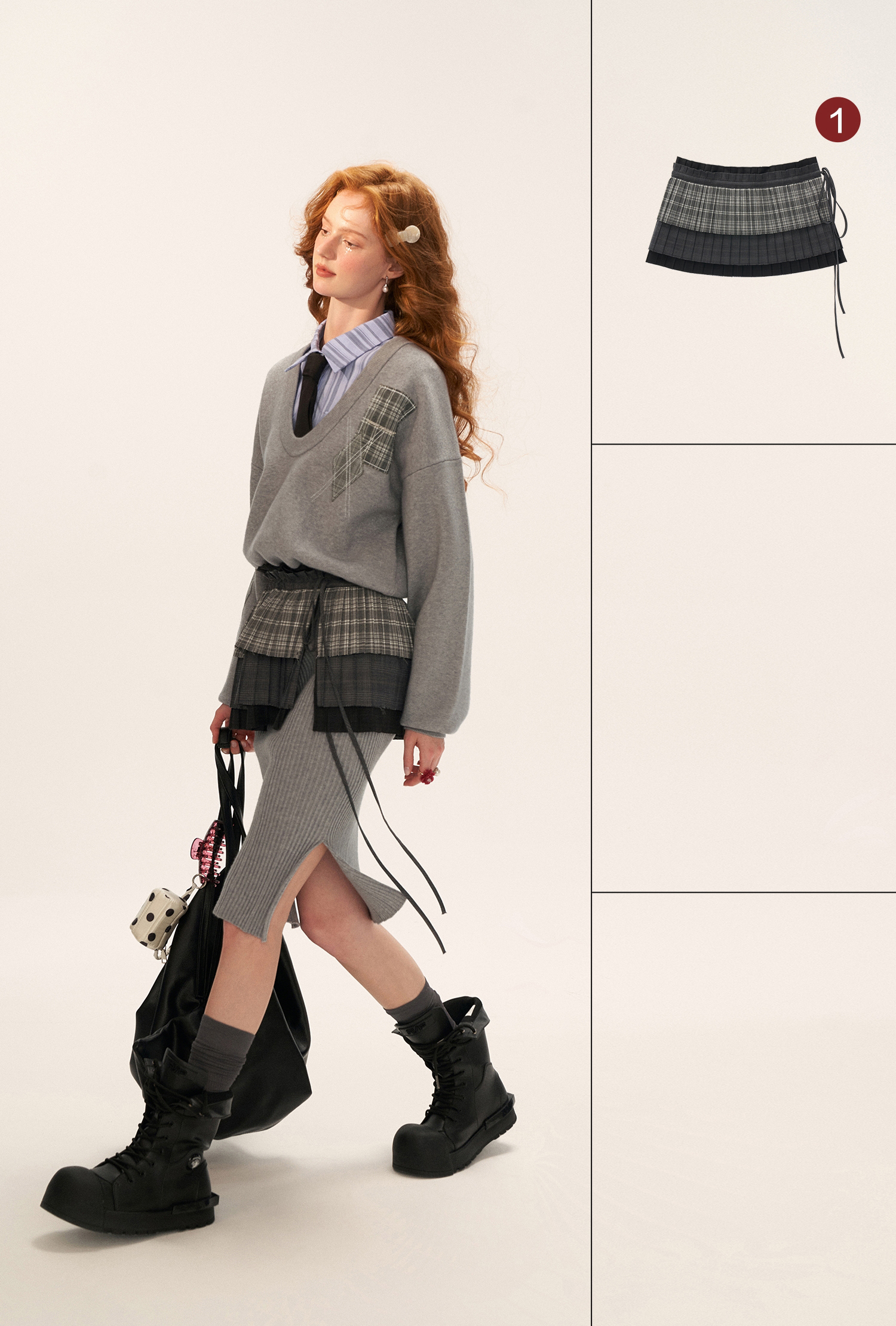 아가일 체크 포인트와 리브드 조직으로 클래식하면서도 슬림한 실루엣을 완성한 니트 원피스입니다.