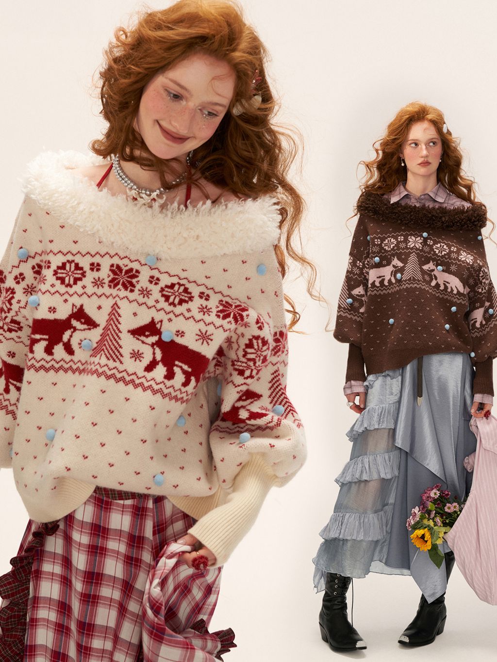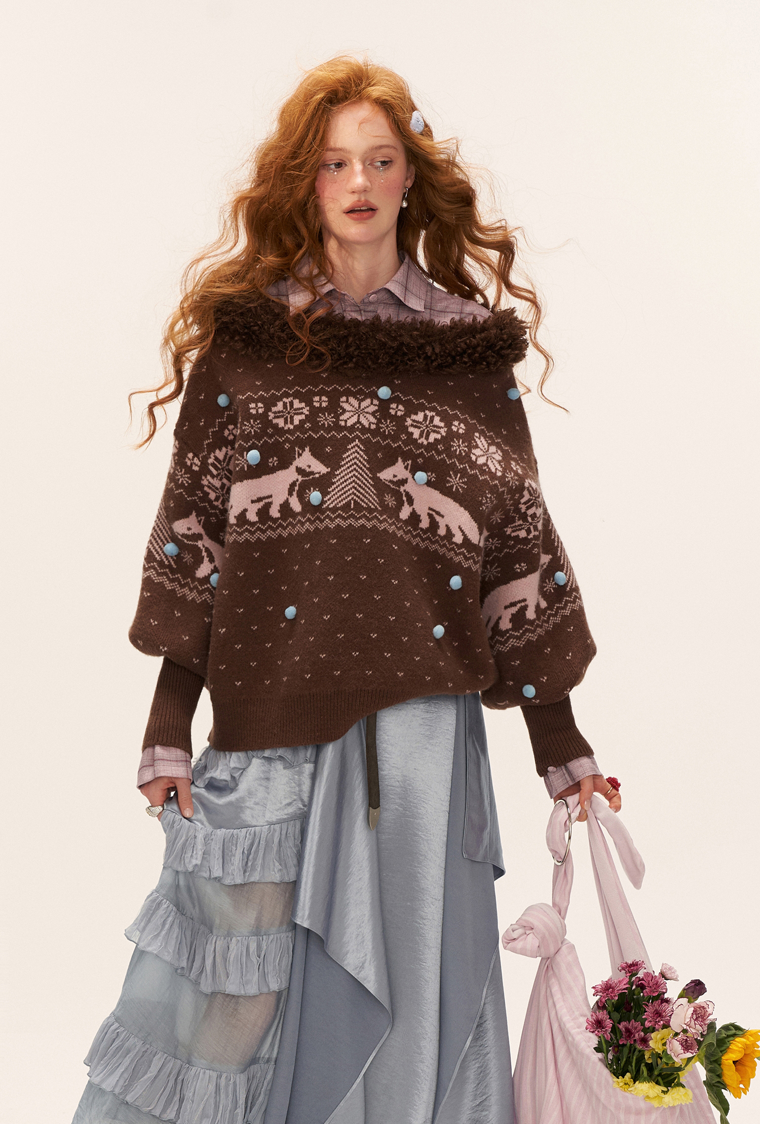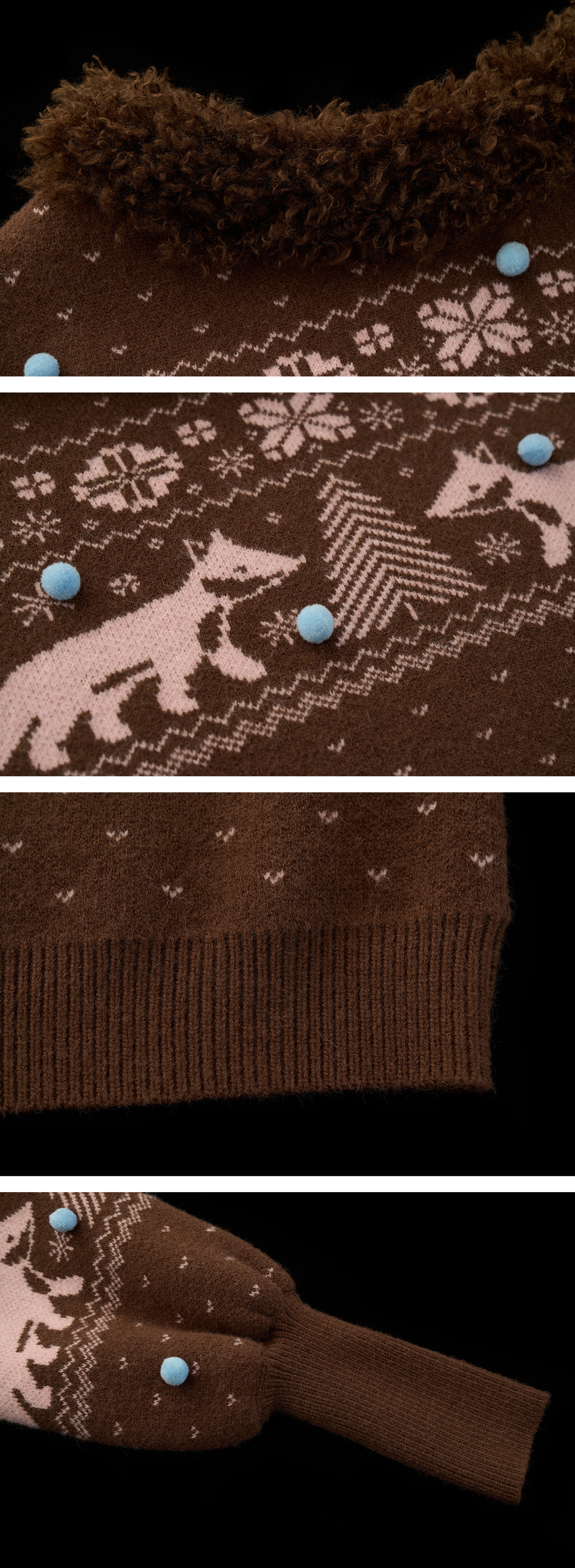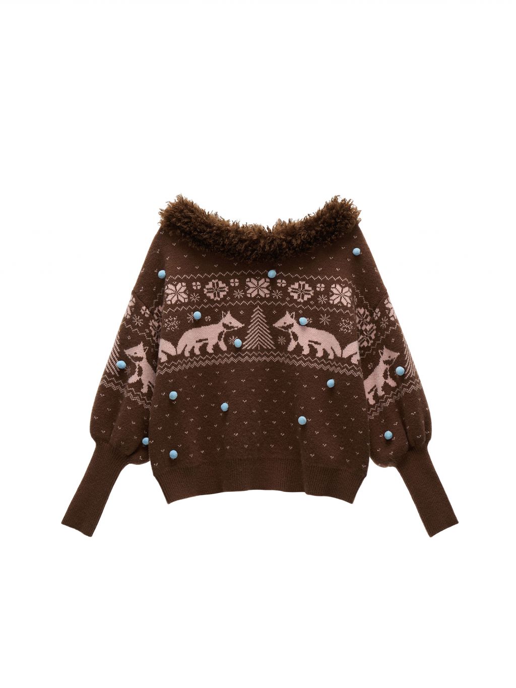 여우 패턴과 퍼 트리밍으로 겨울 감성을 가득 담은 페어아일 니트 풀오버입니다.