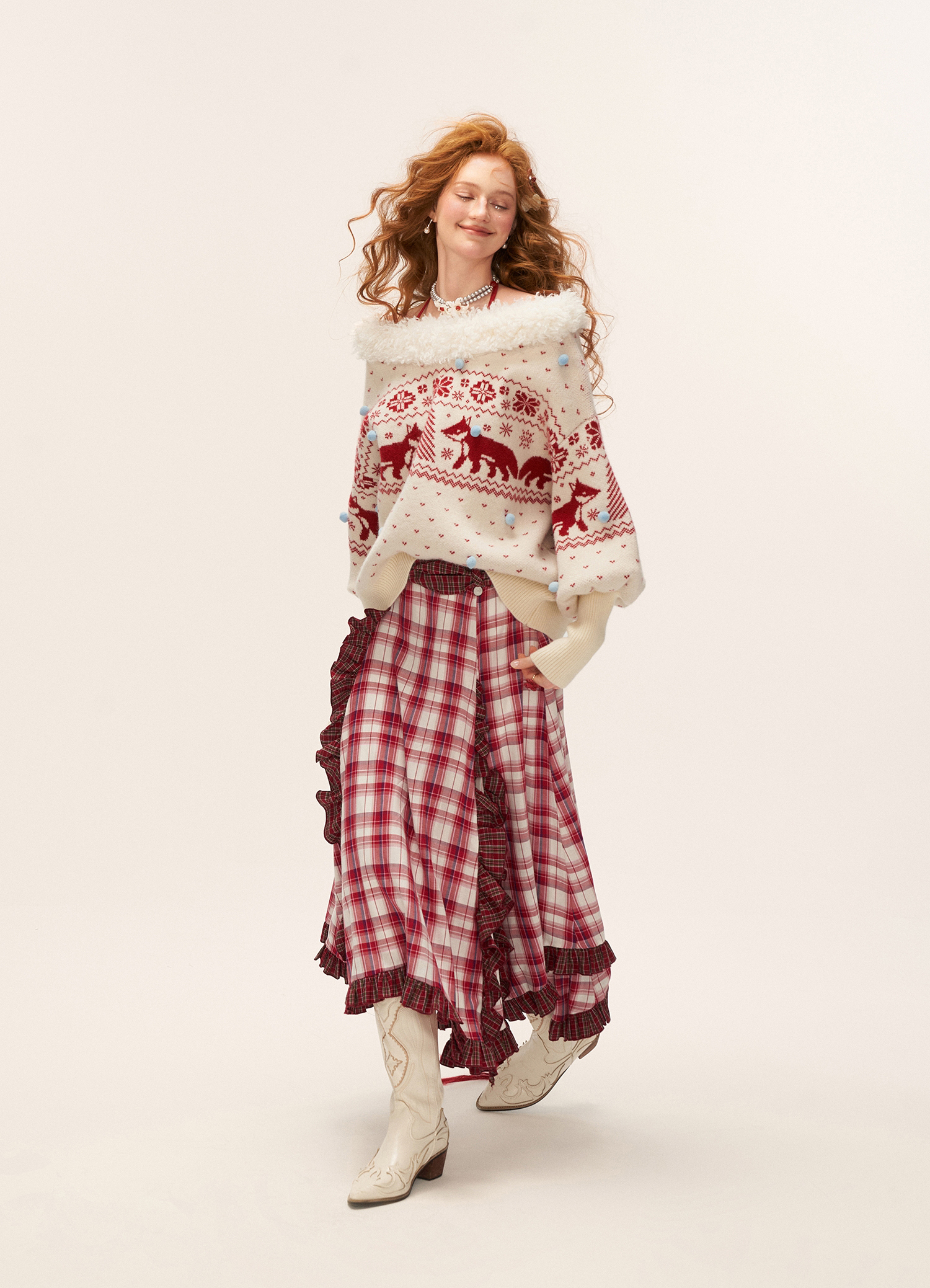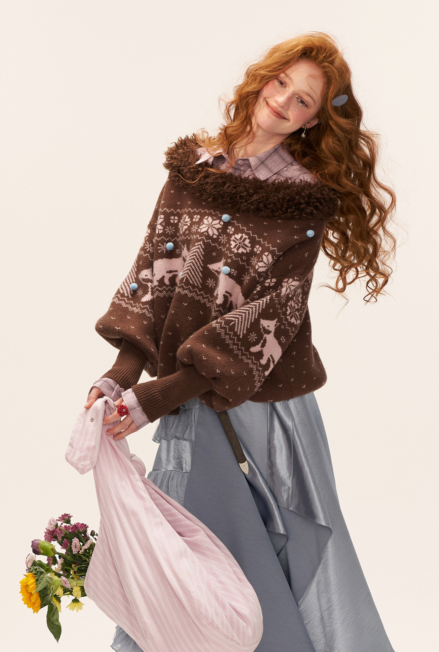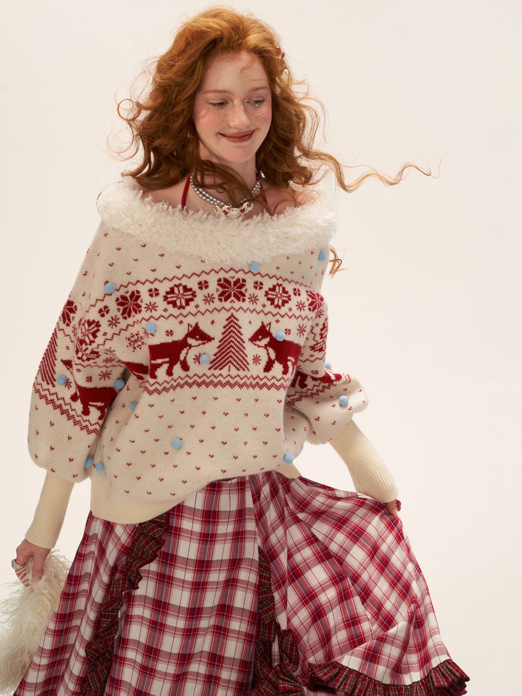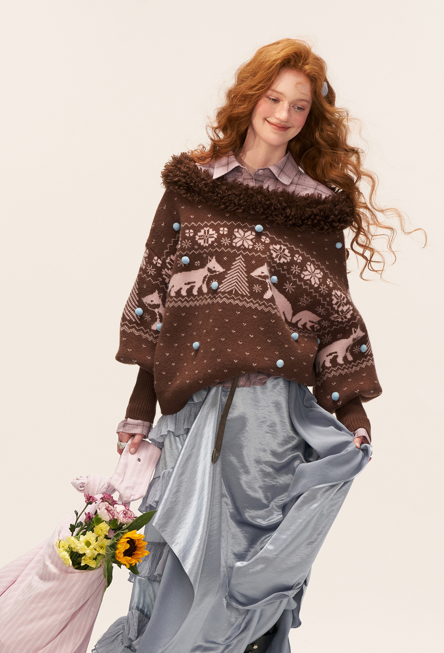 여우 패턴과 퍼 트리밍으로 겨울 감성을 가득 담은 페어아일 니트 풀오버입니다.