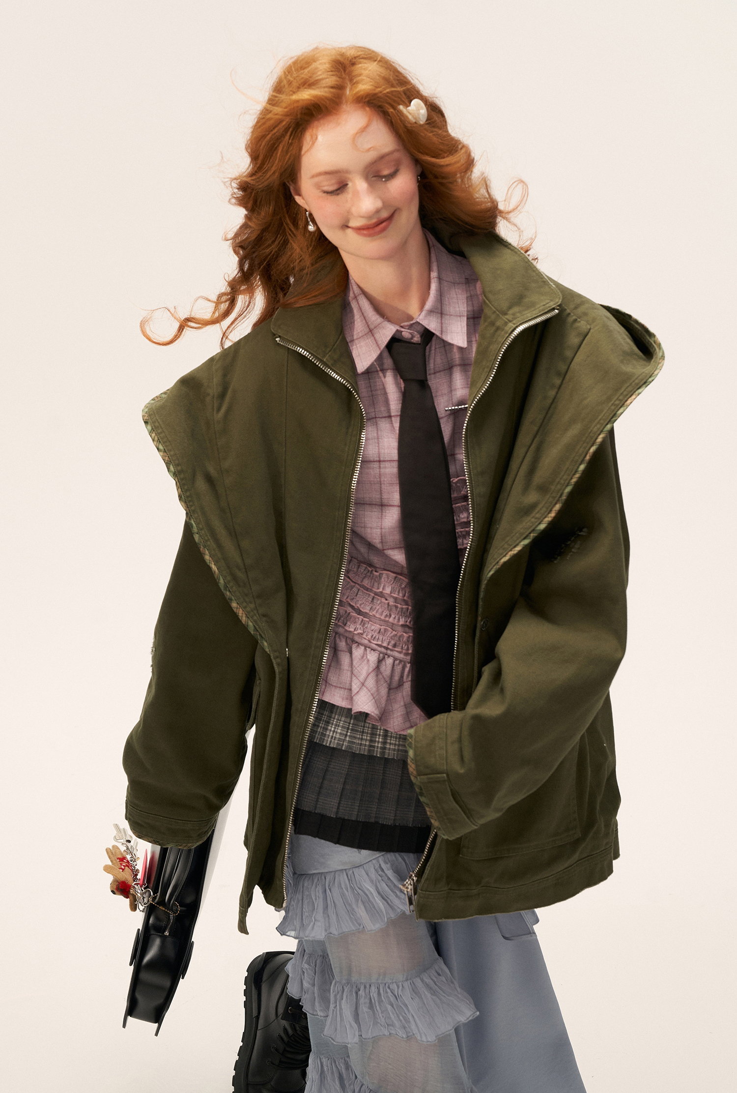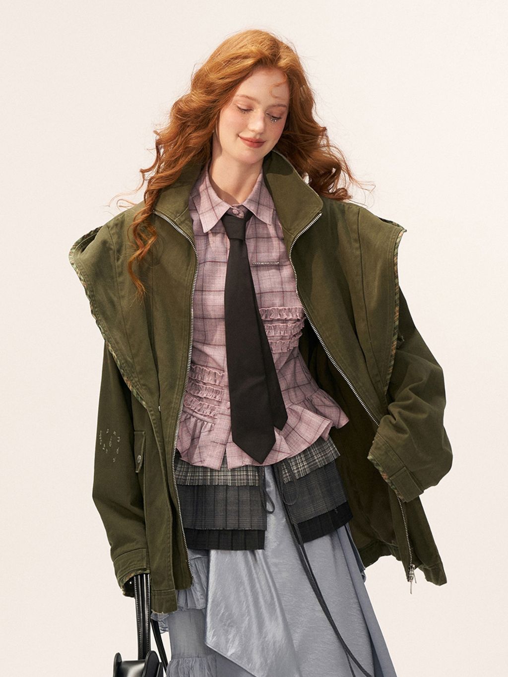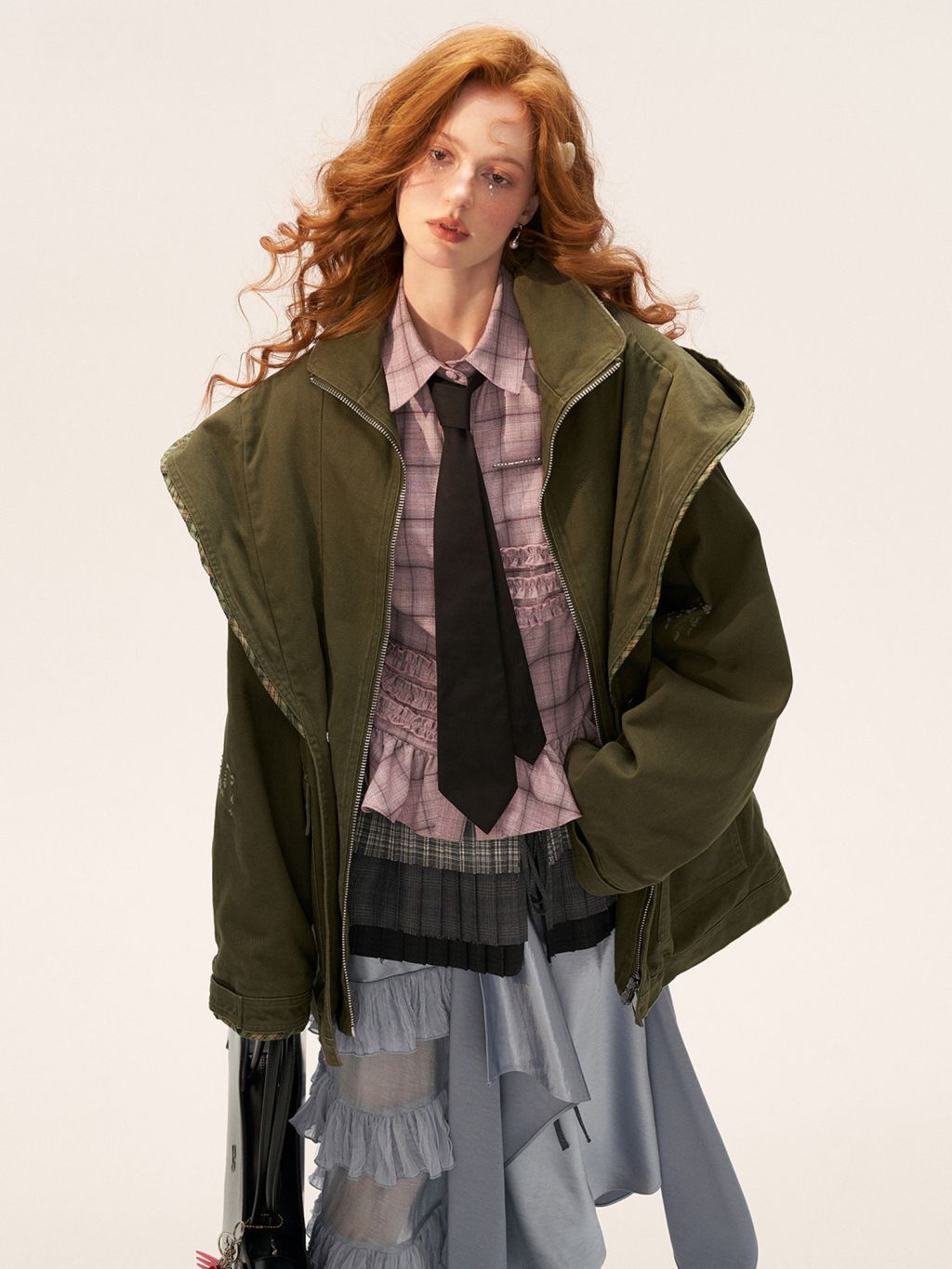 - 플랩 포켓과 지퍼 클로징으로 실용성 강화