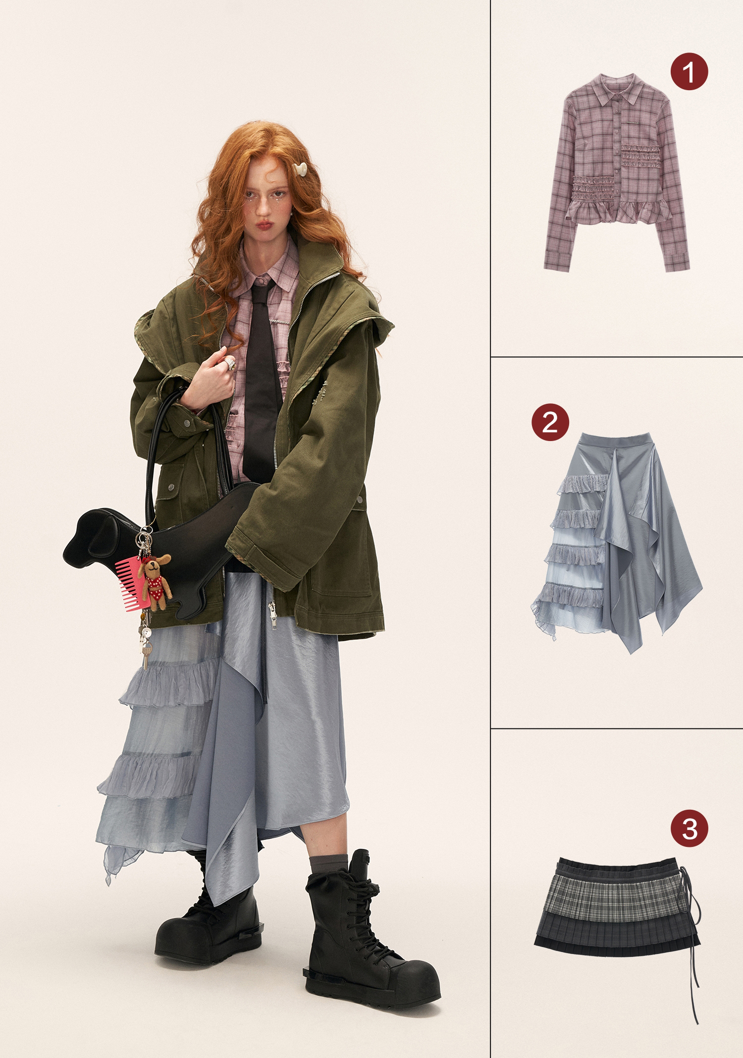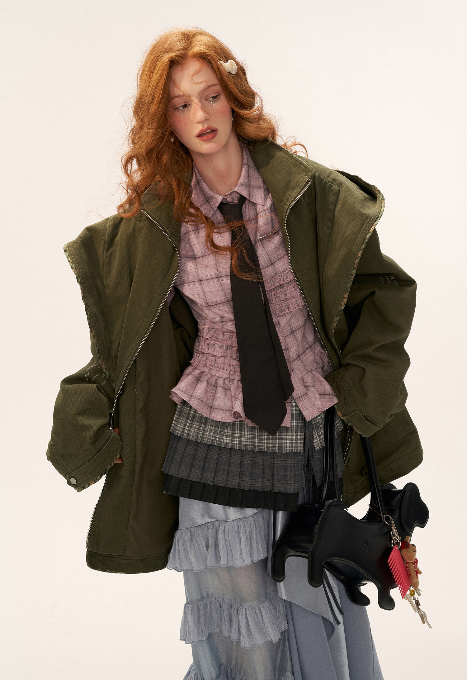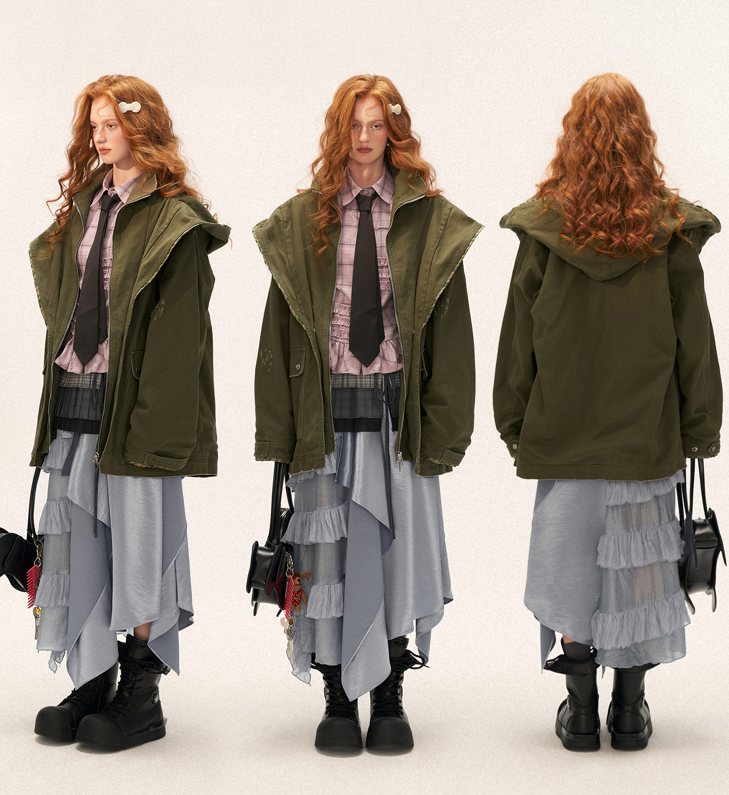 - 플랩 포켓과 지퍼 클로징으로 실용성 강화