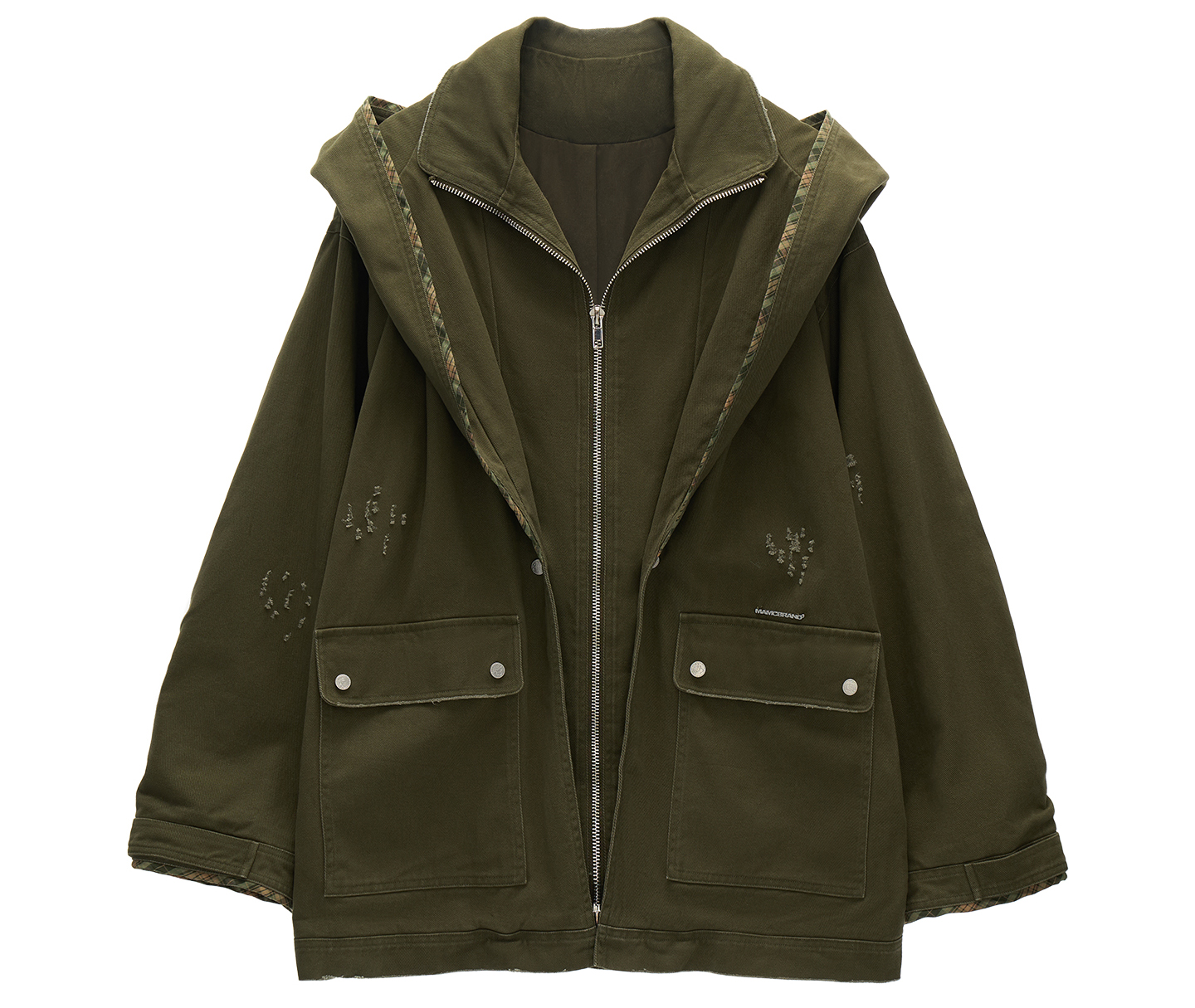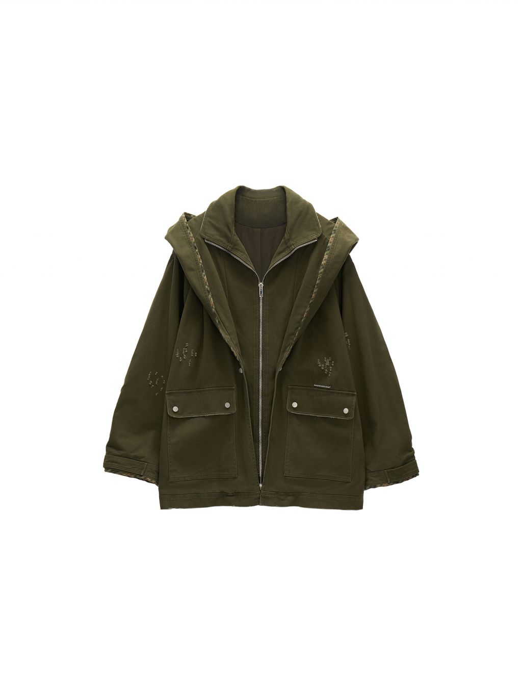 Distressed Military Hooded Jacket