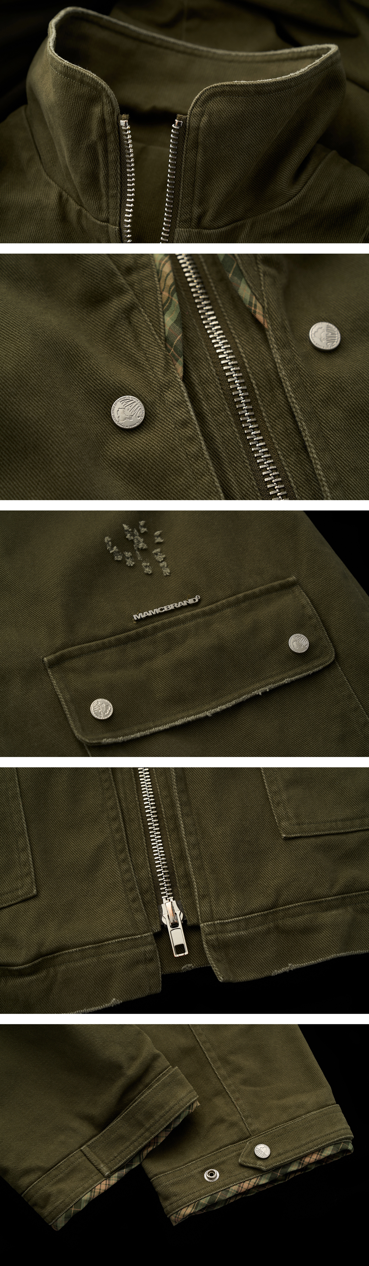 - 탄탄한 코튼 원단에 워싱 가공으로 내구성과 텍스처 강화
