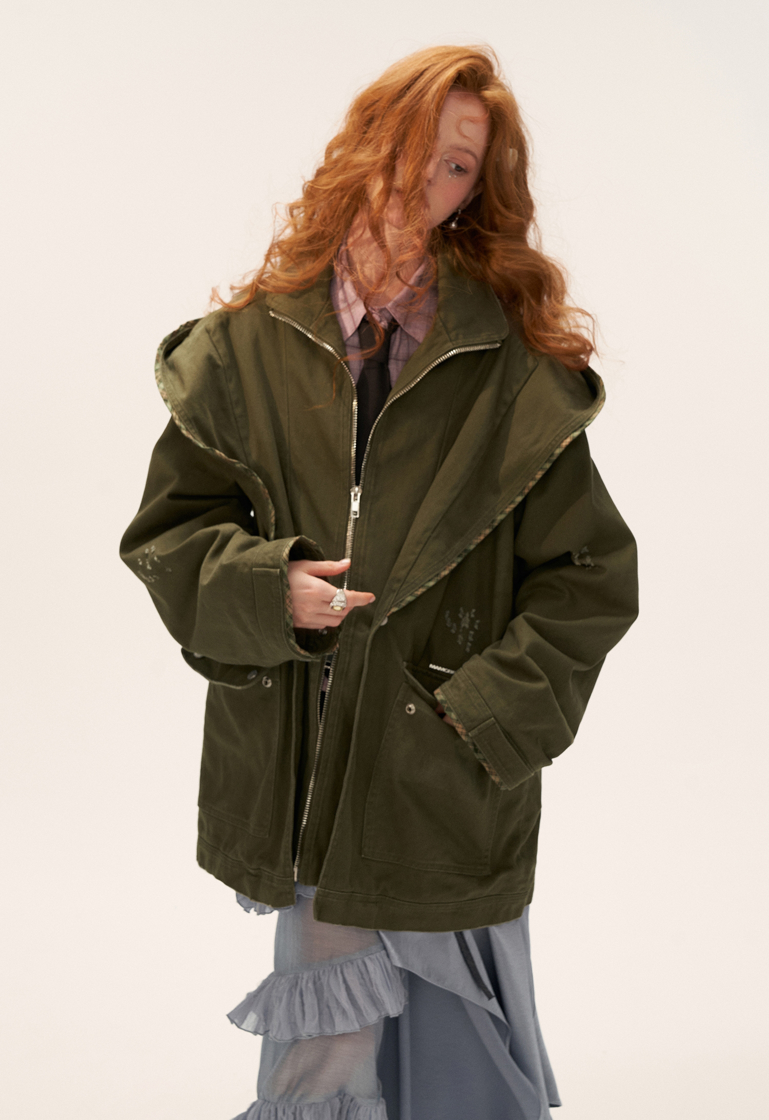 빈티지 워싱과 디스트로이드 디테일로 밀리터리 무드를 재해석한 후드 자켓입니다.