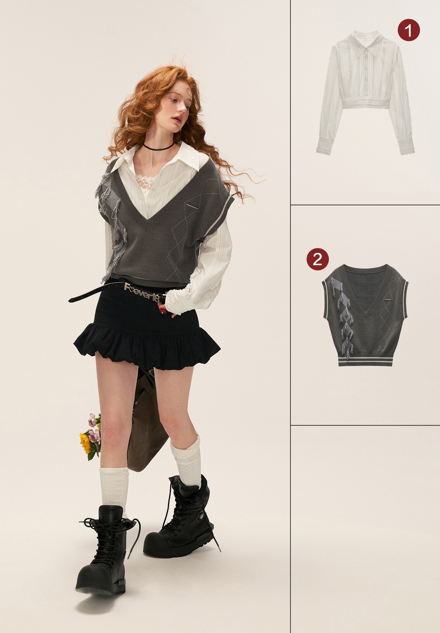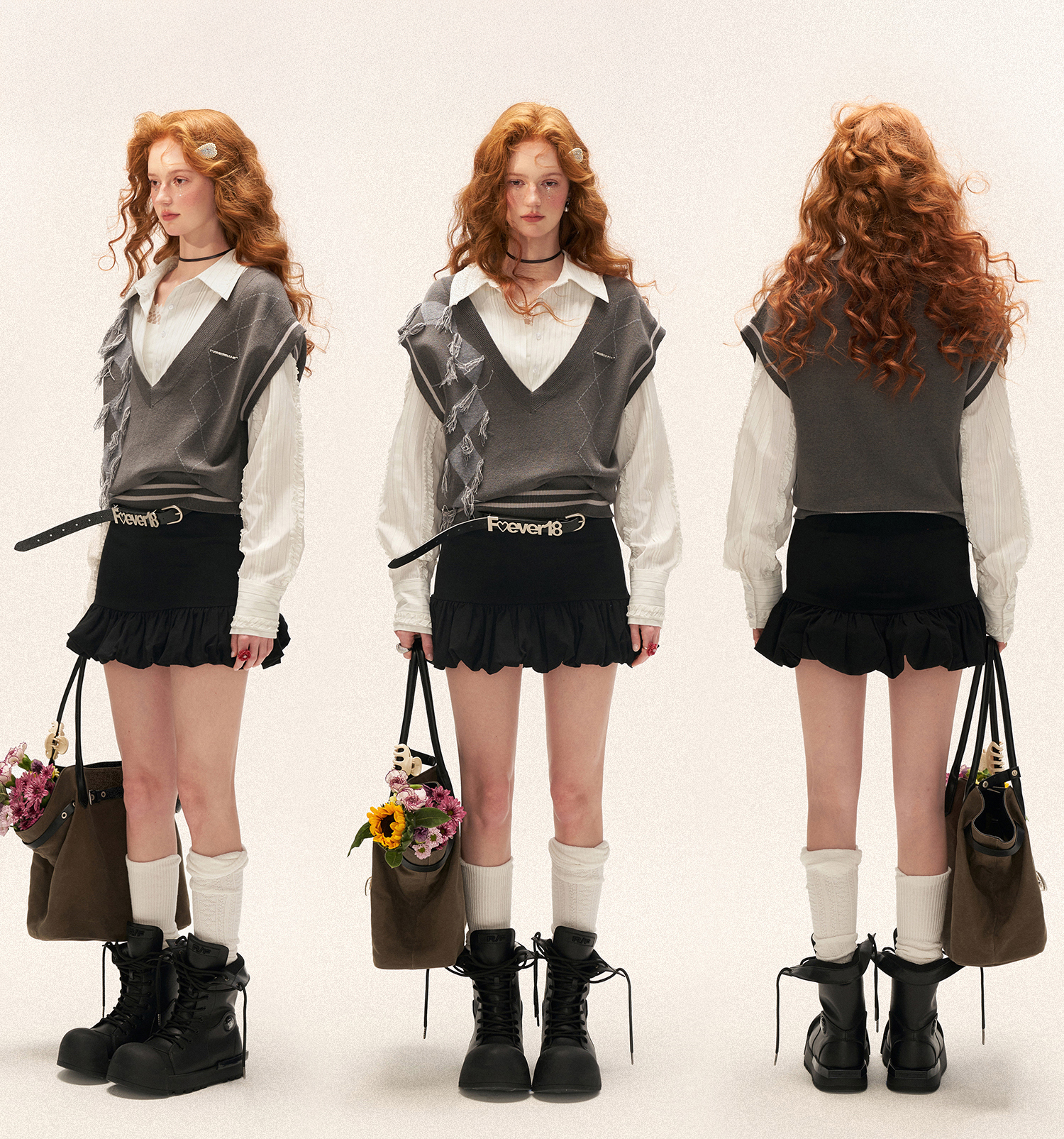 - 밑단 전체를 따라 흐르는 볼륨 러플 디테일