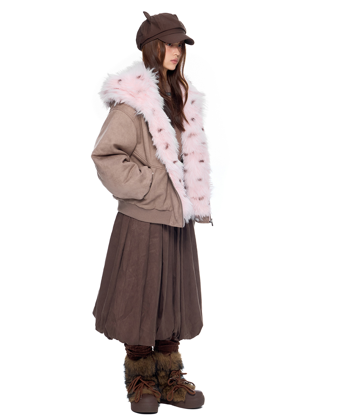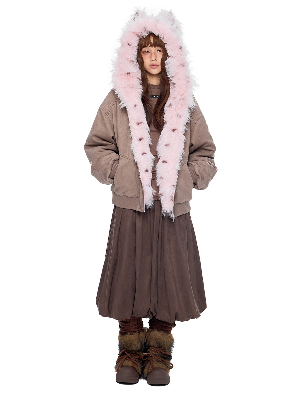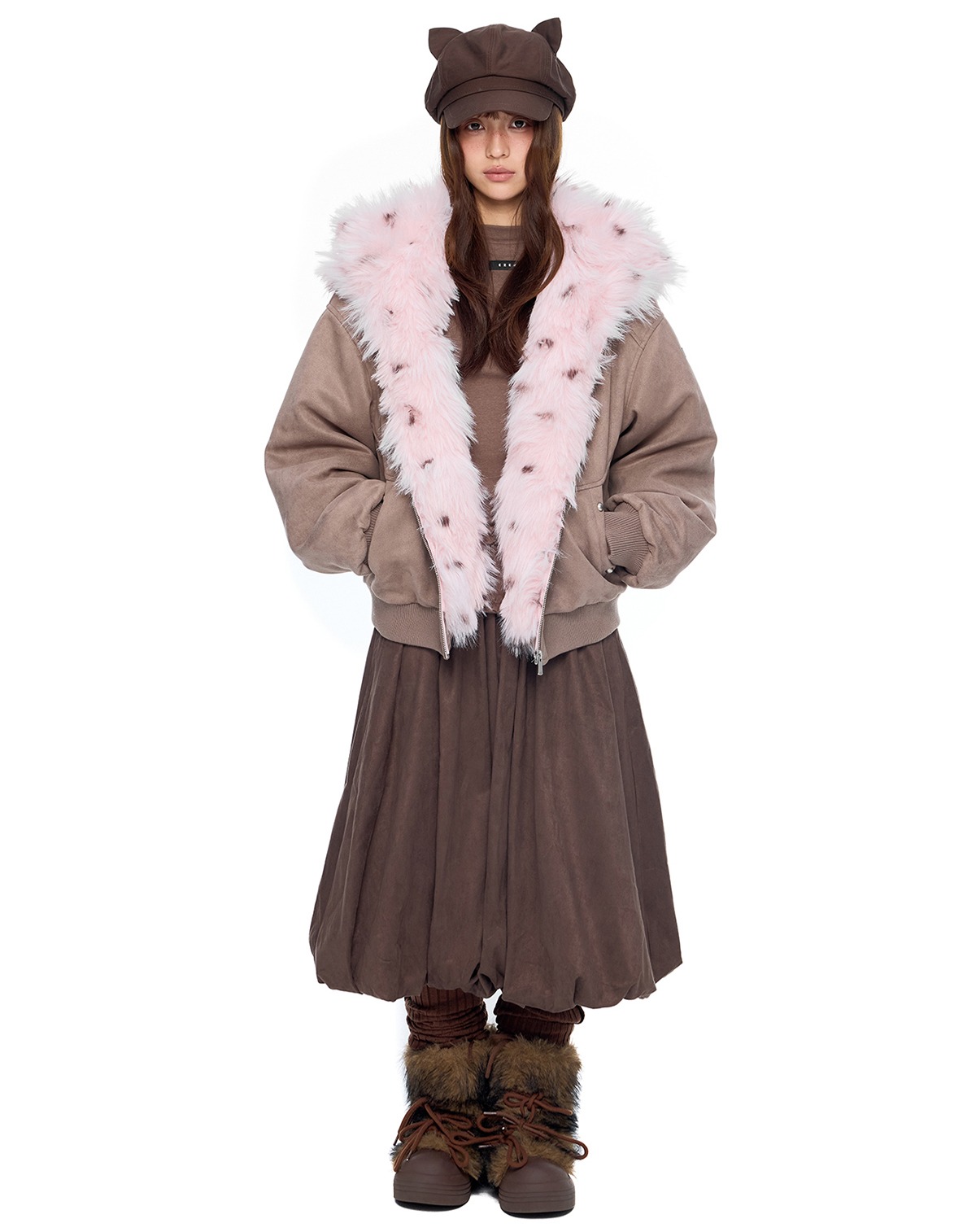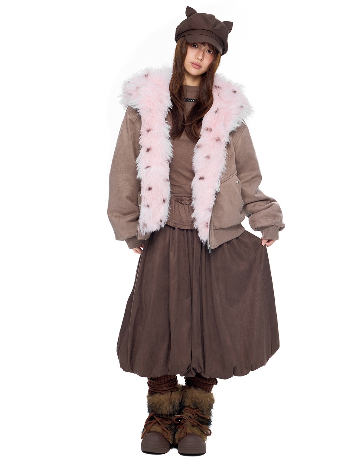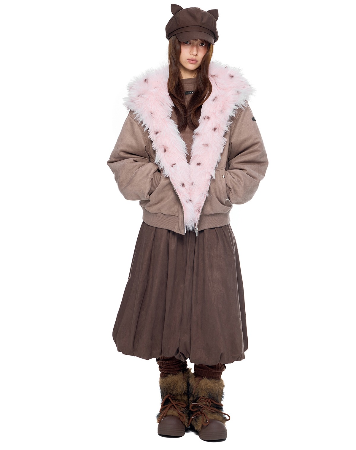 - 후드에 장식된 테디 이어 디테일로 완성된 키치한 실루엣