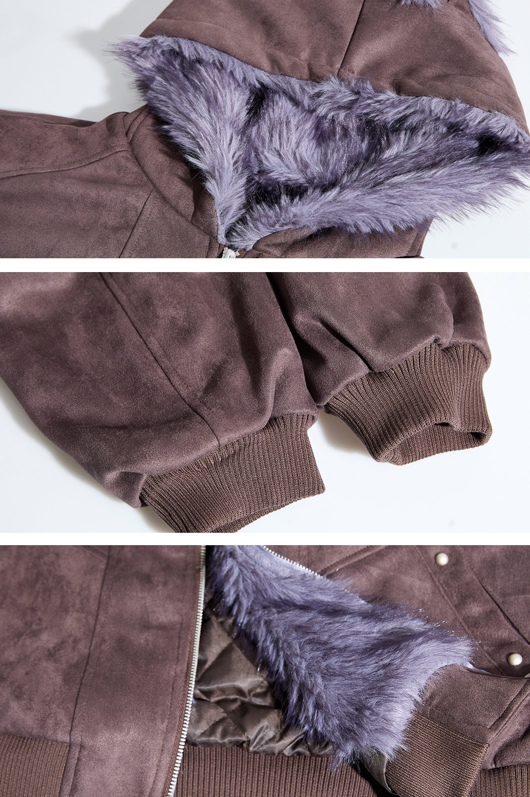- 안감 전체를 감싸는 소프트 퍼 트리밍으로 보온성 강화