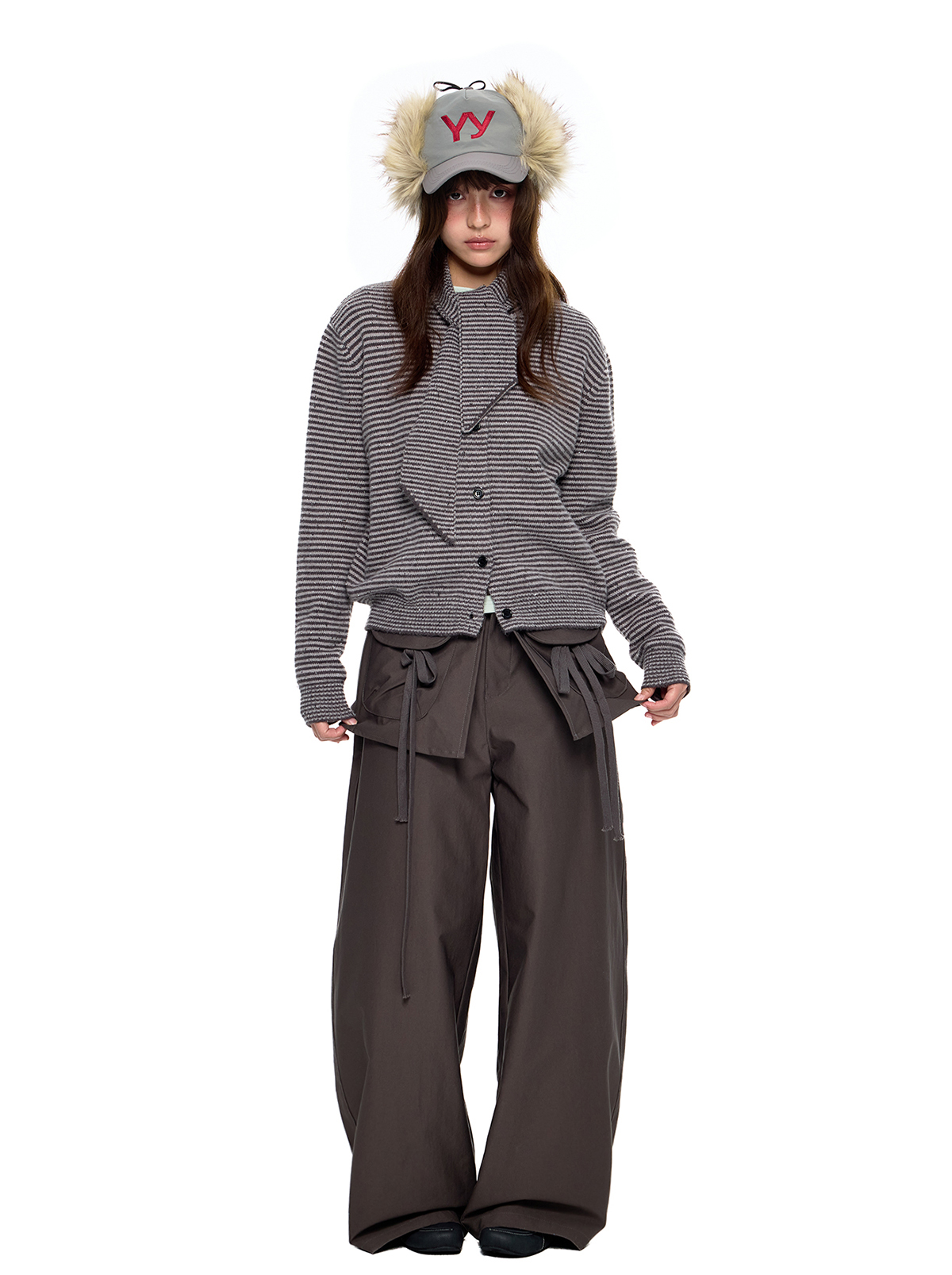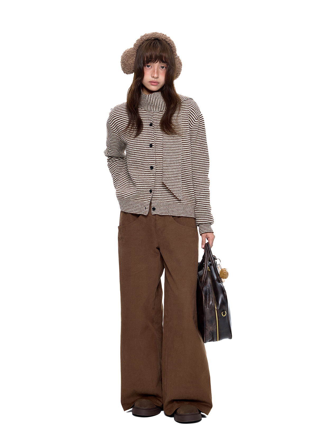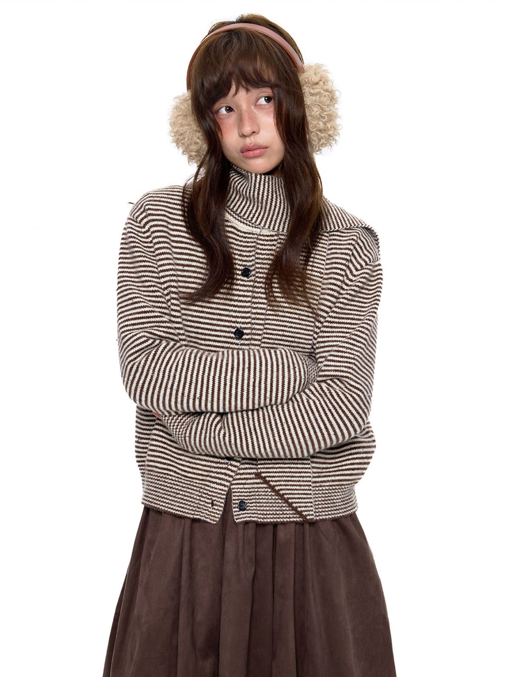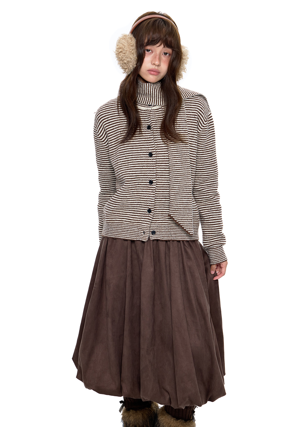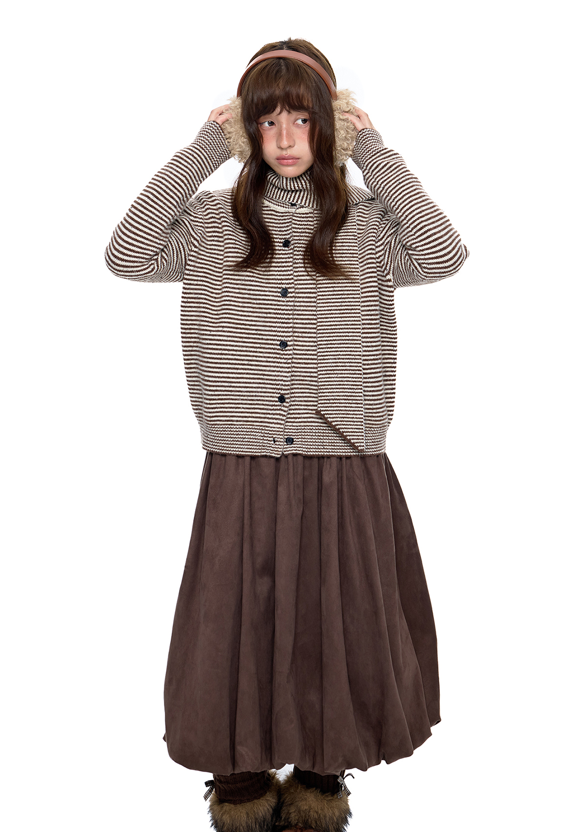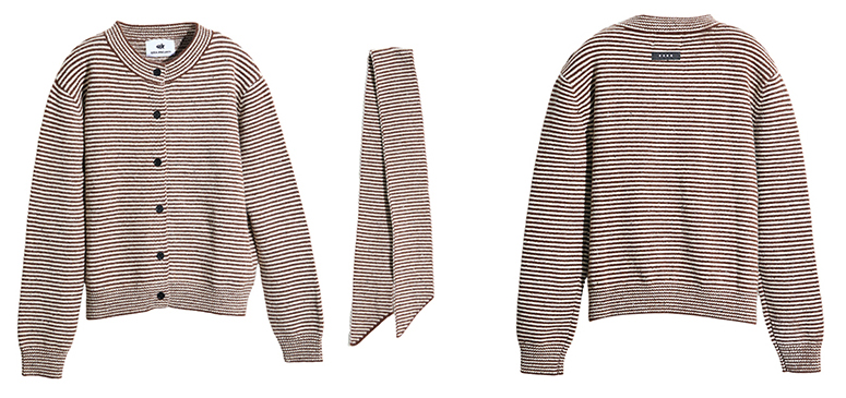 잔잔한 스트라이프 패턴과 부드러운 니트 텍스처로 클래식한 감성과 여유로운 실루엣을 동시에 담아낸 스카프 세트 가디건입니다.