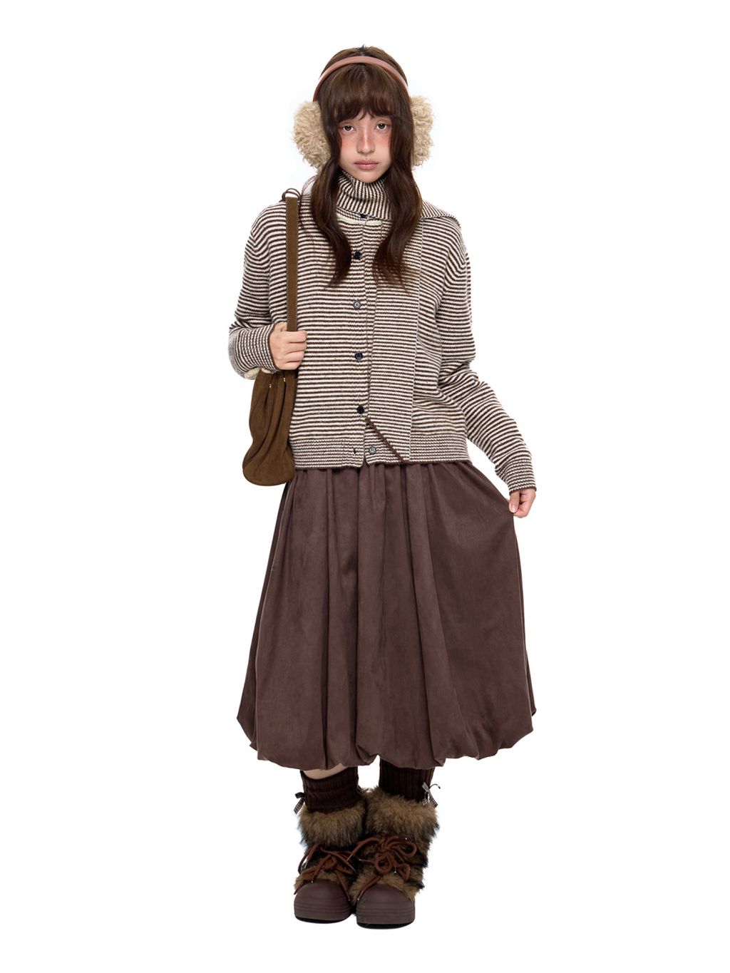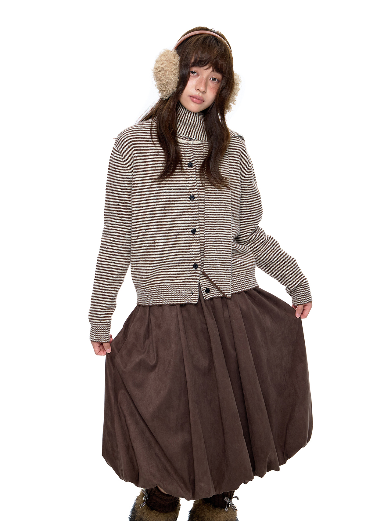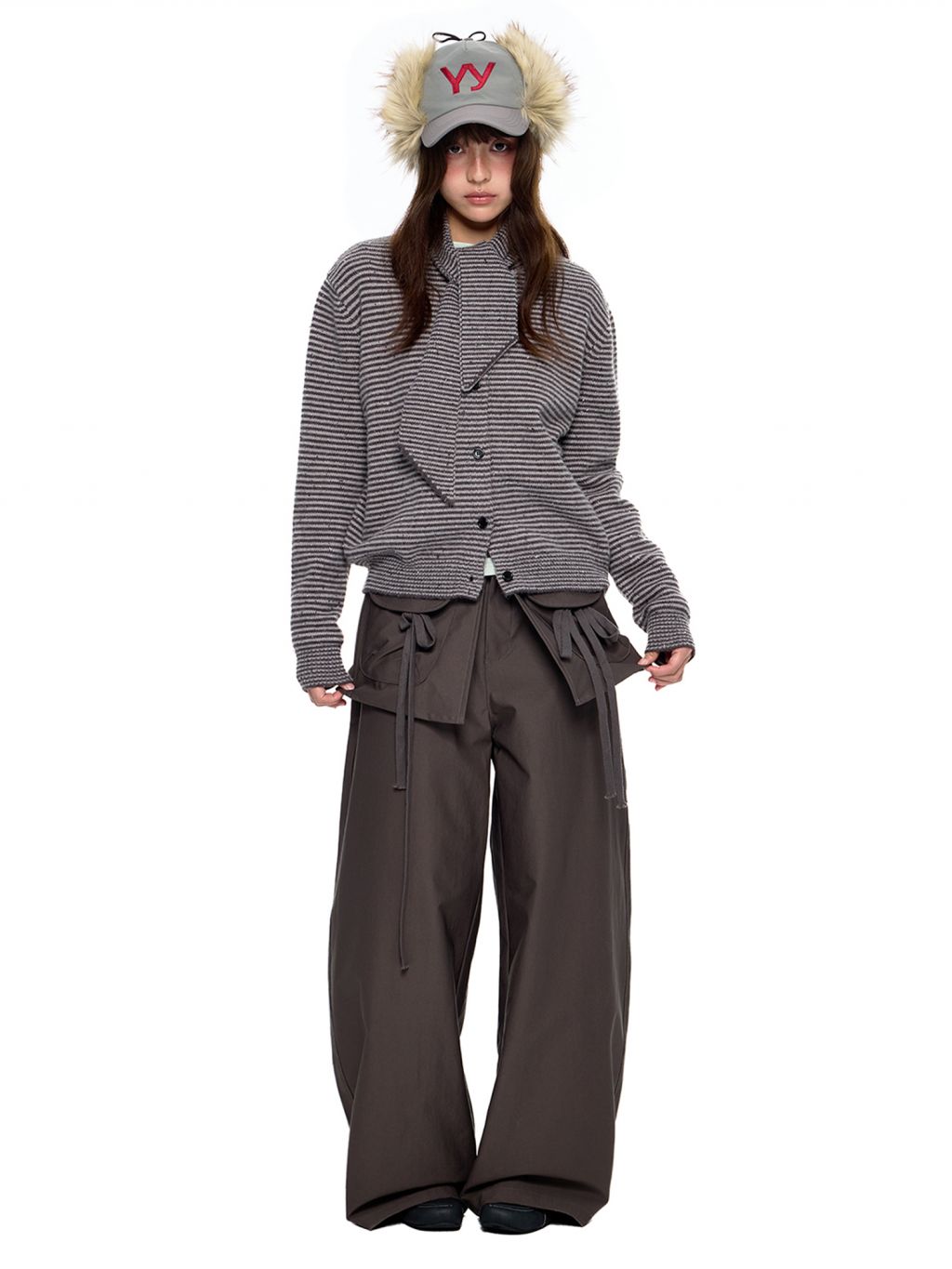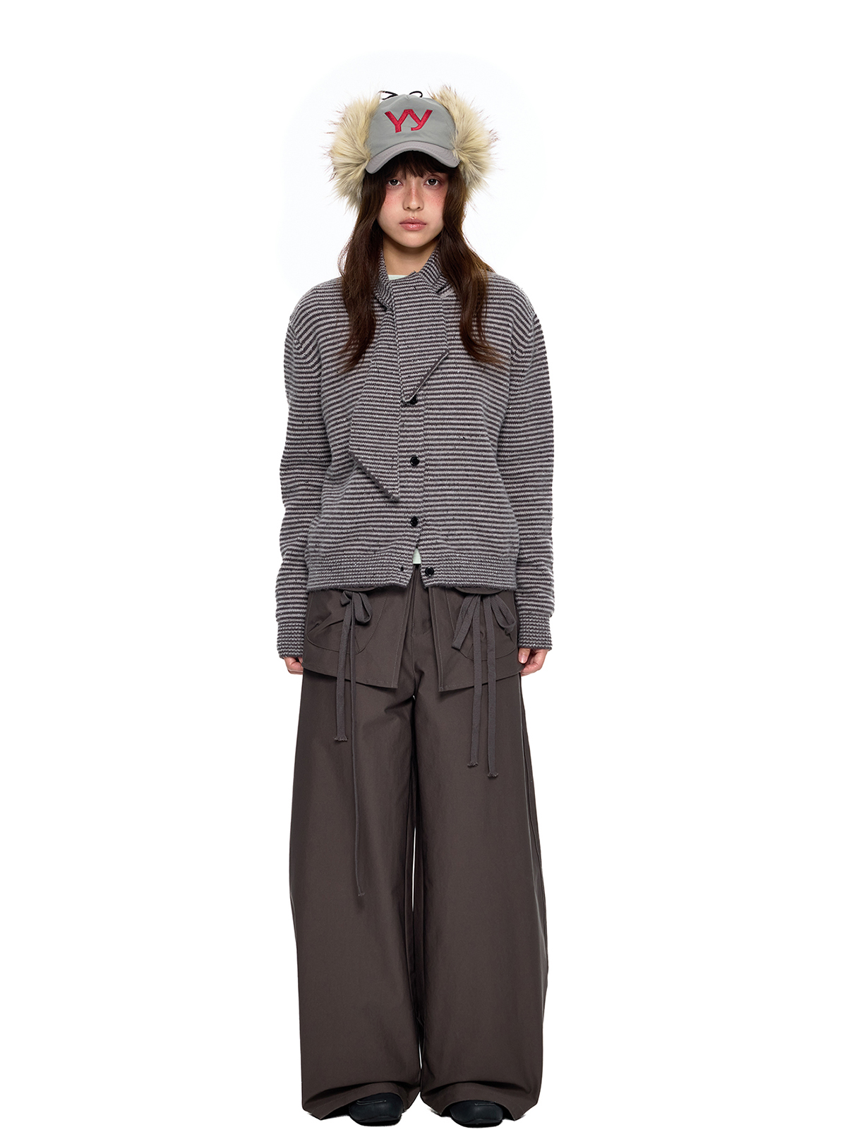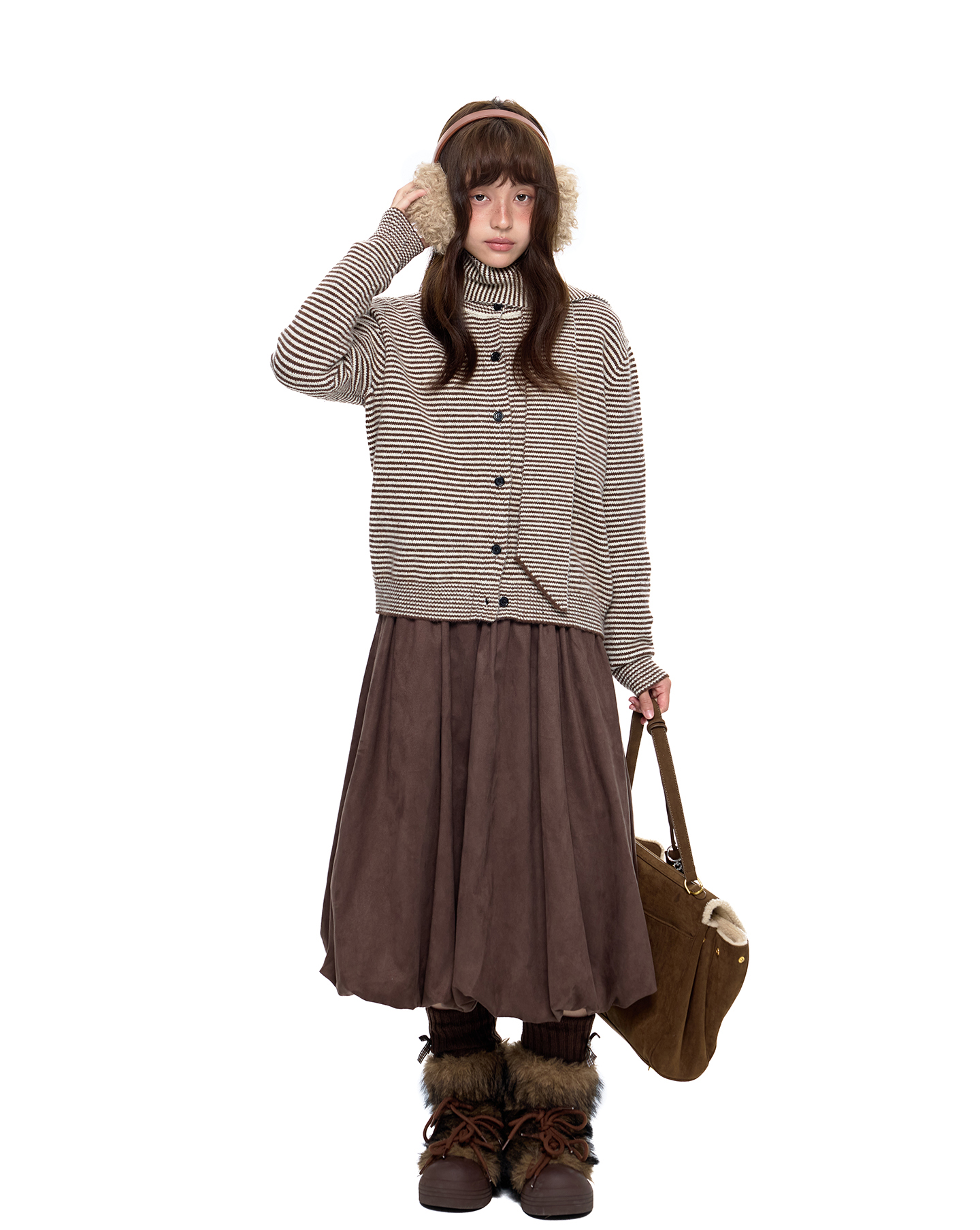 잔잔한 스트라이프 패턴과 부드러운 니트 텍스처로 클래식한 감성과 여유로운 실루엣을 동시에 담아낸 스카프 세트 가디건입니다.