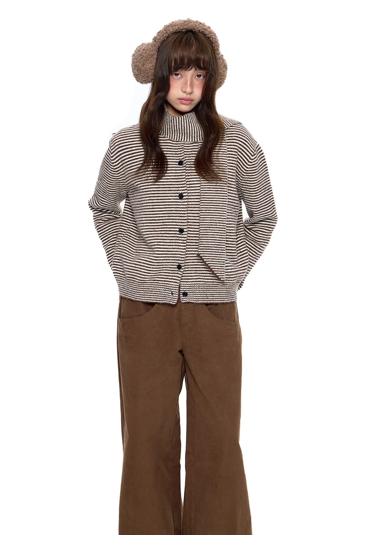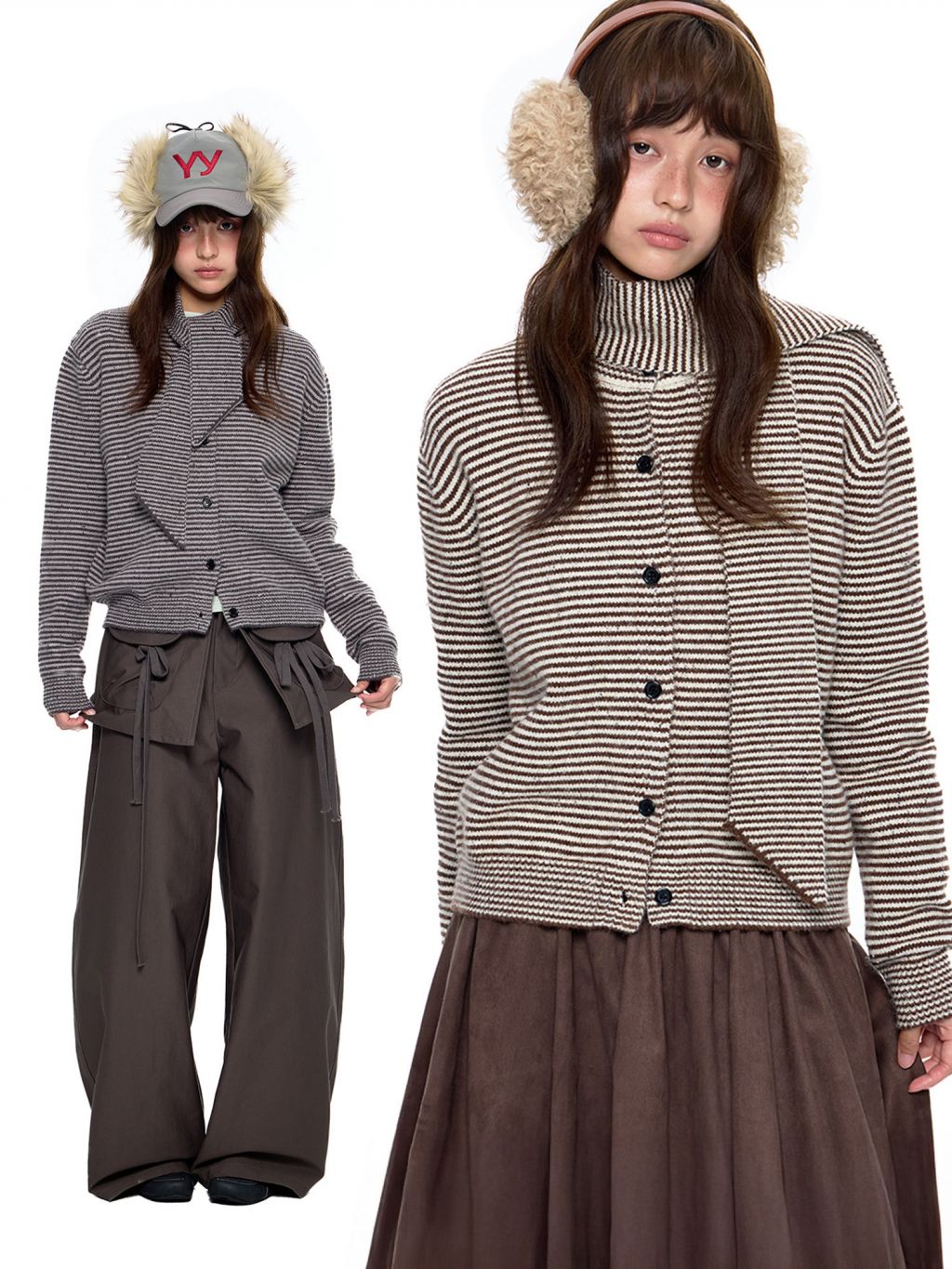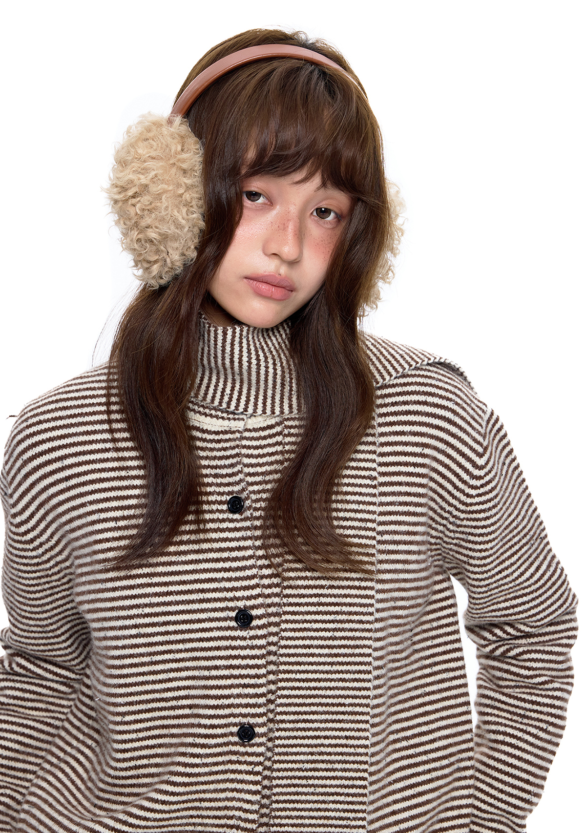 - 스트라이프 패턴 니트 소재로 포근하고 경쾌한 분위기 연출